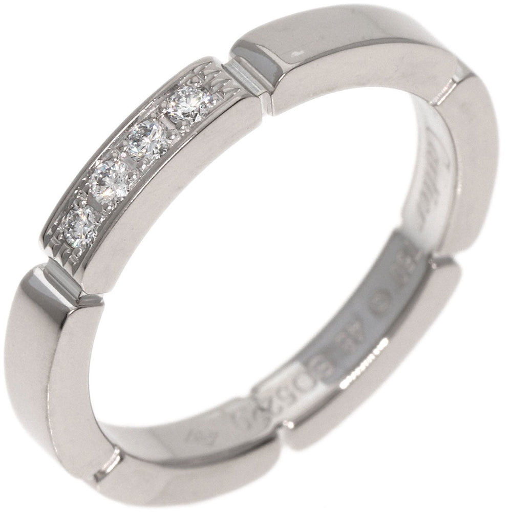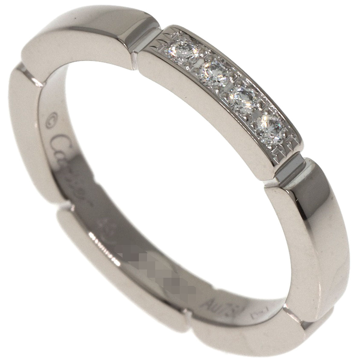 CARTIER Ring K18WG Silver Maillon PANTHERE 4P Diamond #48 Women Used Authentic