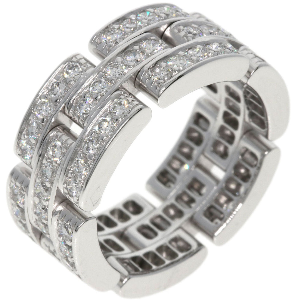 CARTIER Ring K18WG Silver Maillon PANTHERE Full Diamond #51 Women Used Authentic