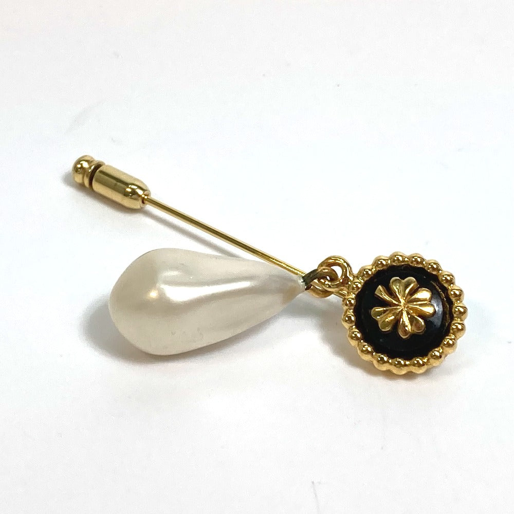 CHANEL Brooch Gold Plated, Faux Pearl gold Brooch Women Used Authentic