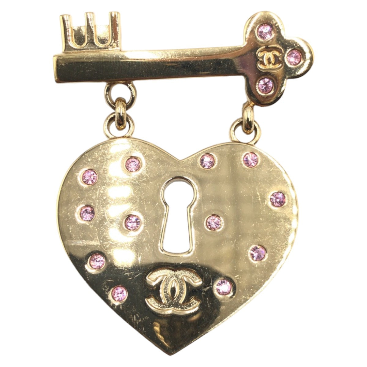 CHANEL Brooch metal gold P23C CC COCO Mark Heart Rhinestone Women Used Authentic