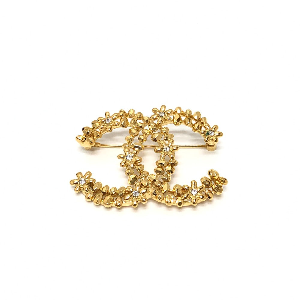 CHANEL Brooch metal Gold / Pink corsage COCO Mark 031P Clover Women Used Authentic
