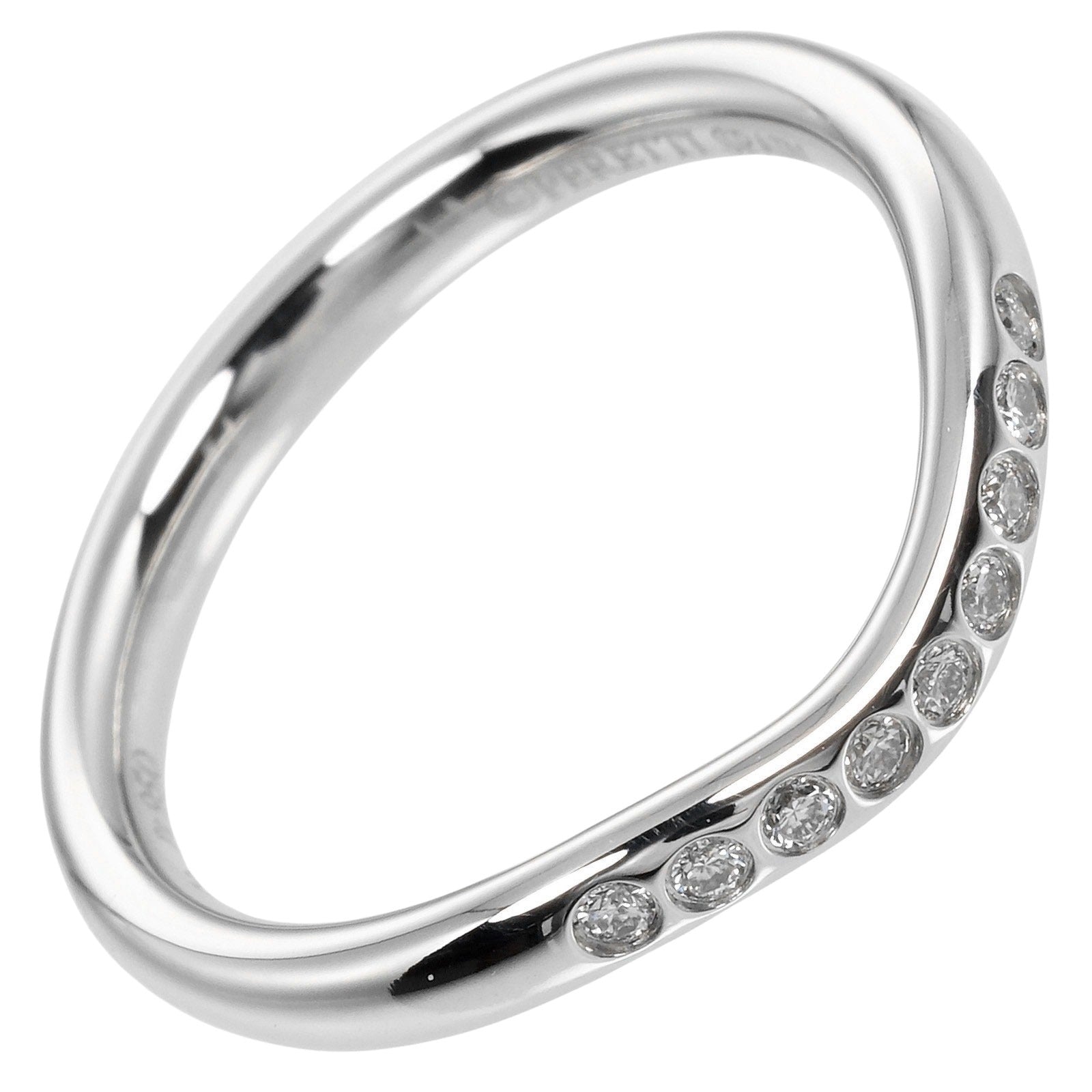 TIFFANY&Co. Ring Pt950Platinum, 6P Diamond Silver Open heart Women Used Authentic