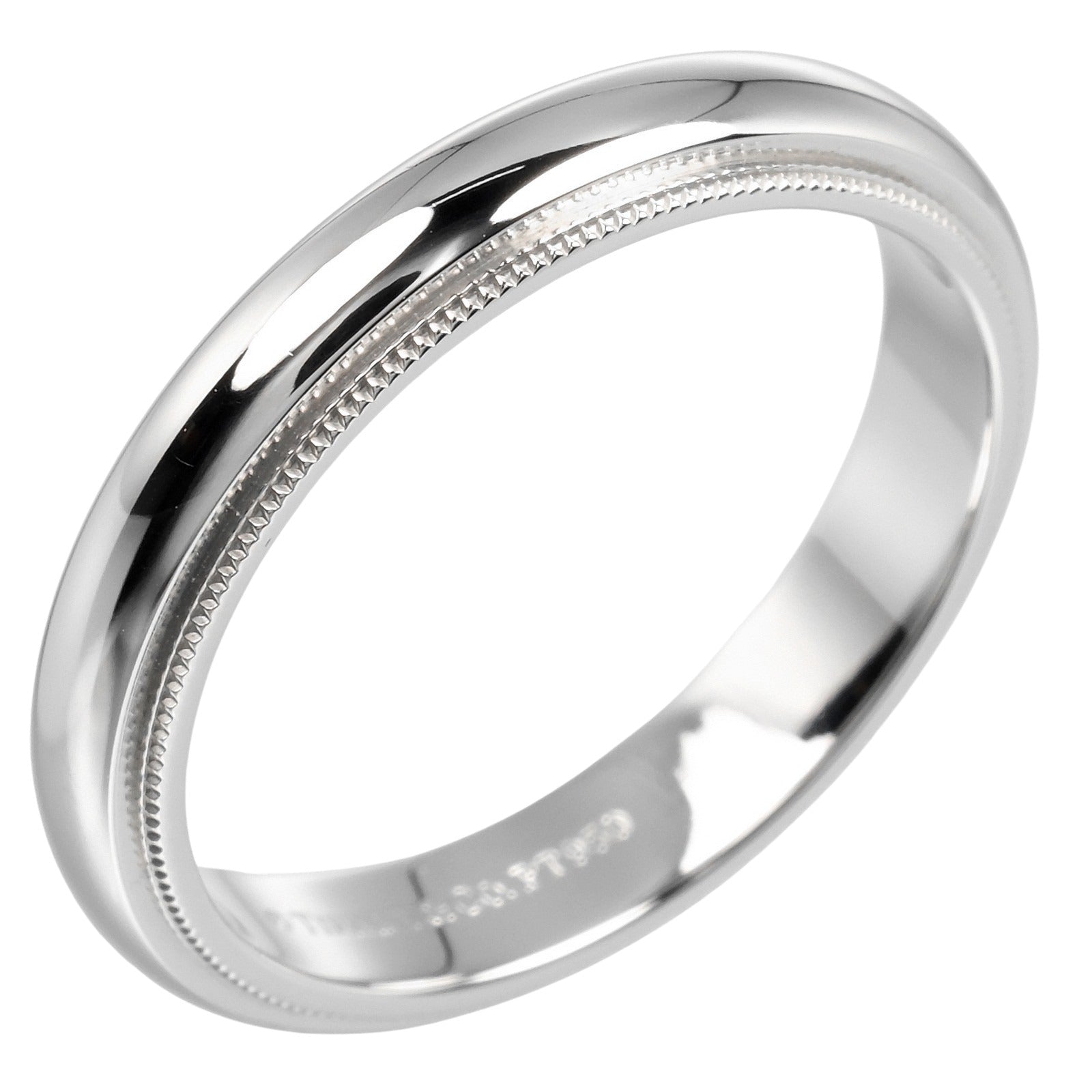 TIFFANY&Co. Ring Pt950Platinum Silver 0.1" model Two-Gathered Milgrain Band Women Used Authentic