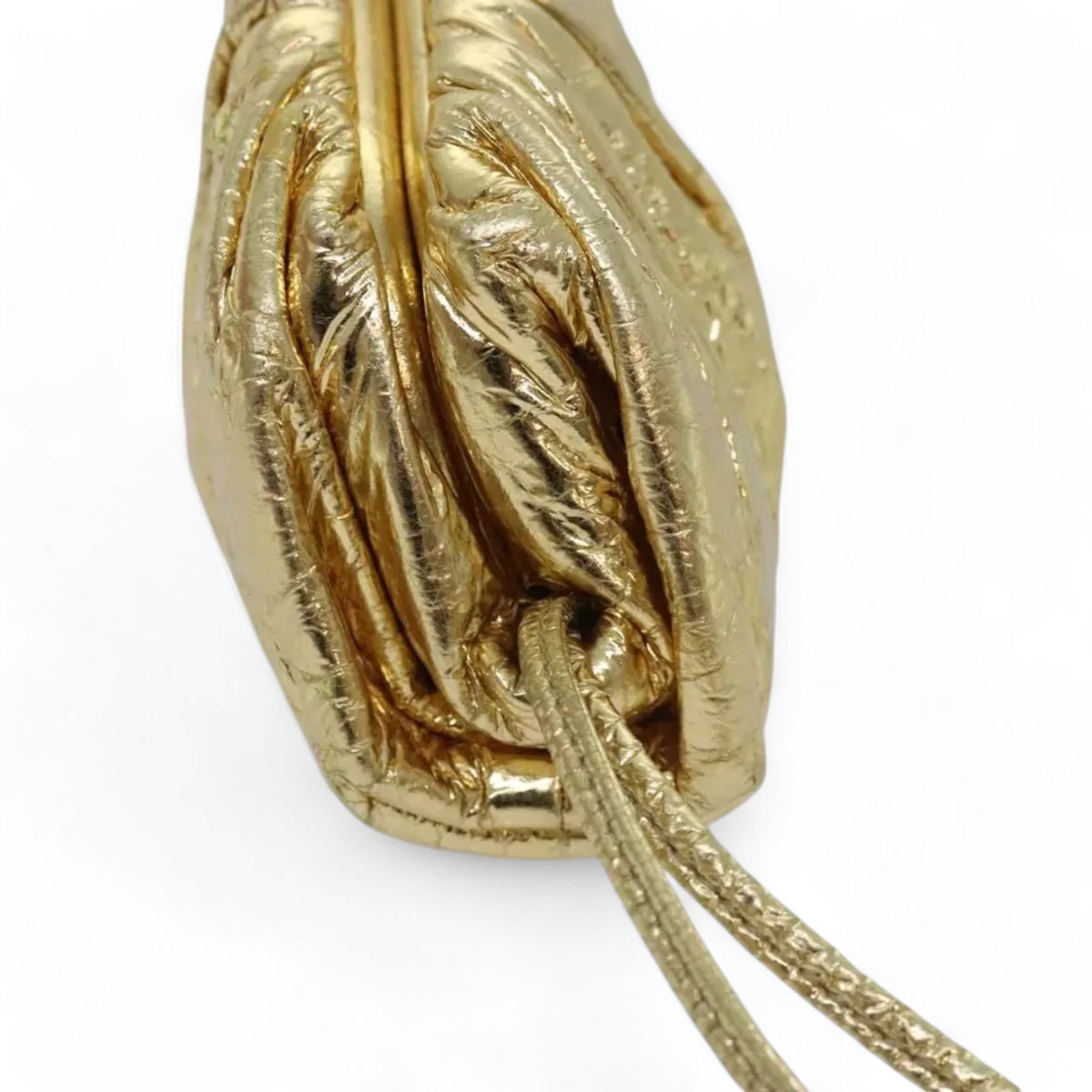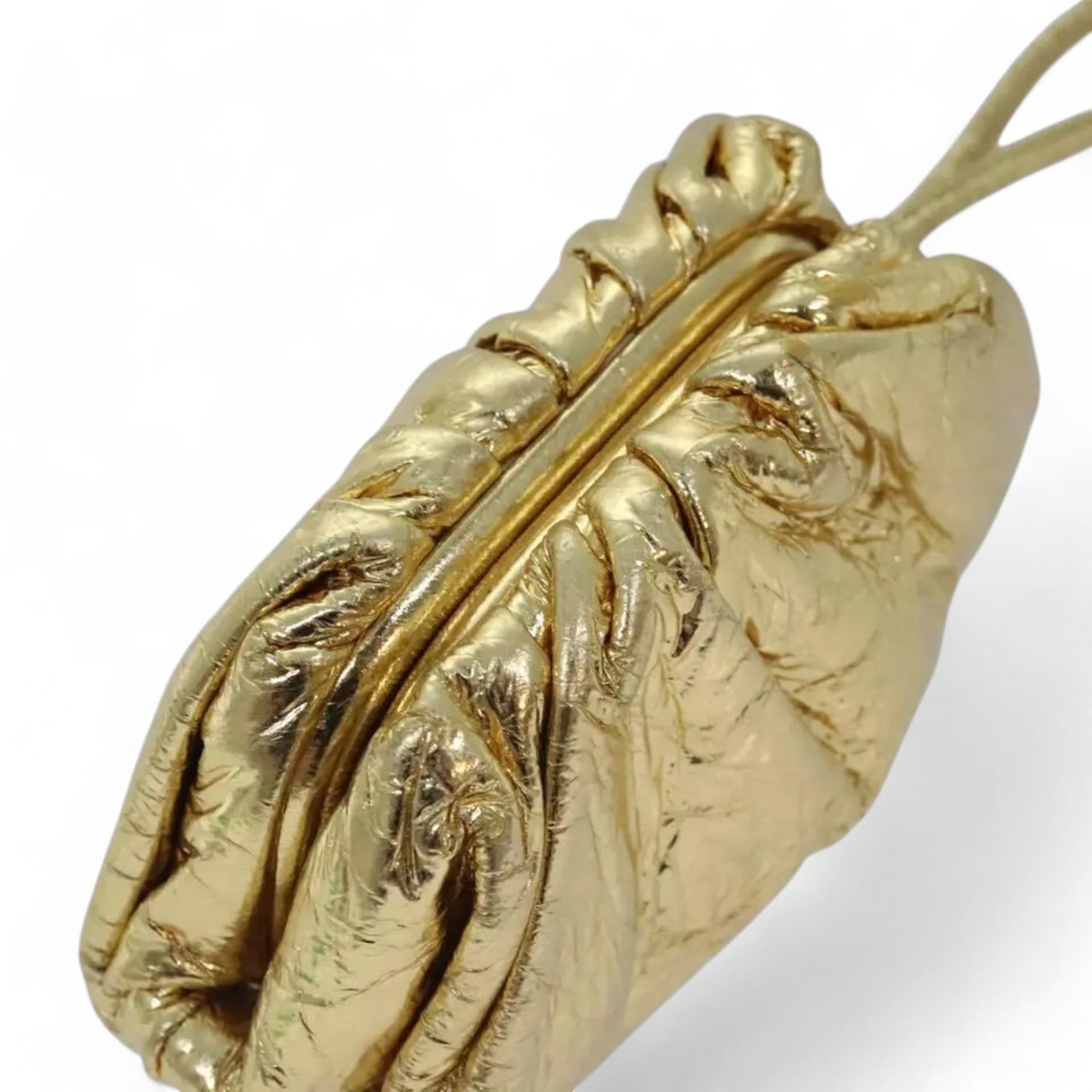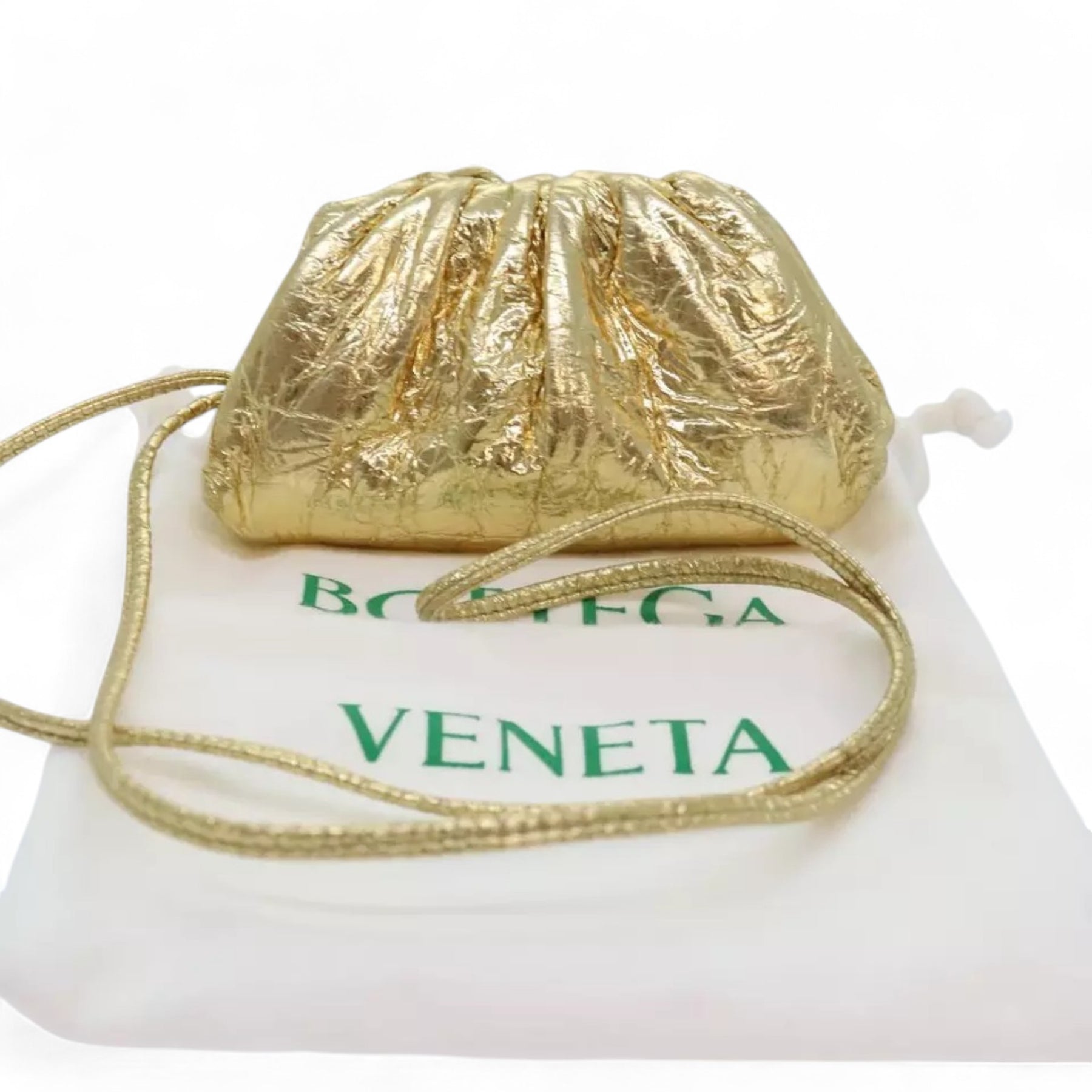 Bottega Veneta Pouch Leather Gold Women's Bag with Strap and Dust Bag