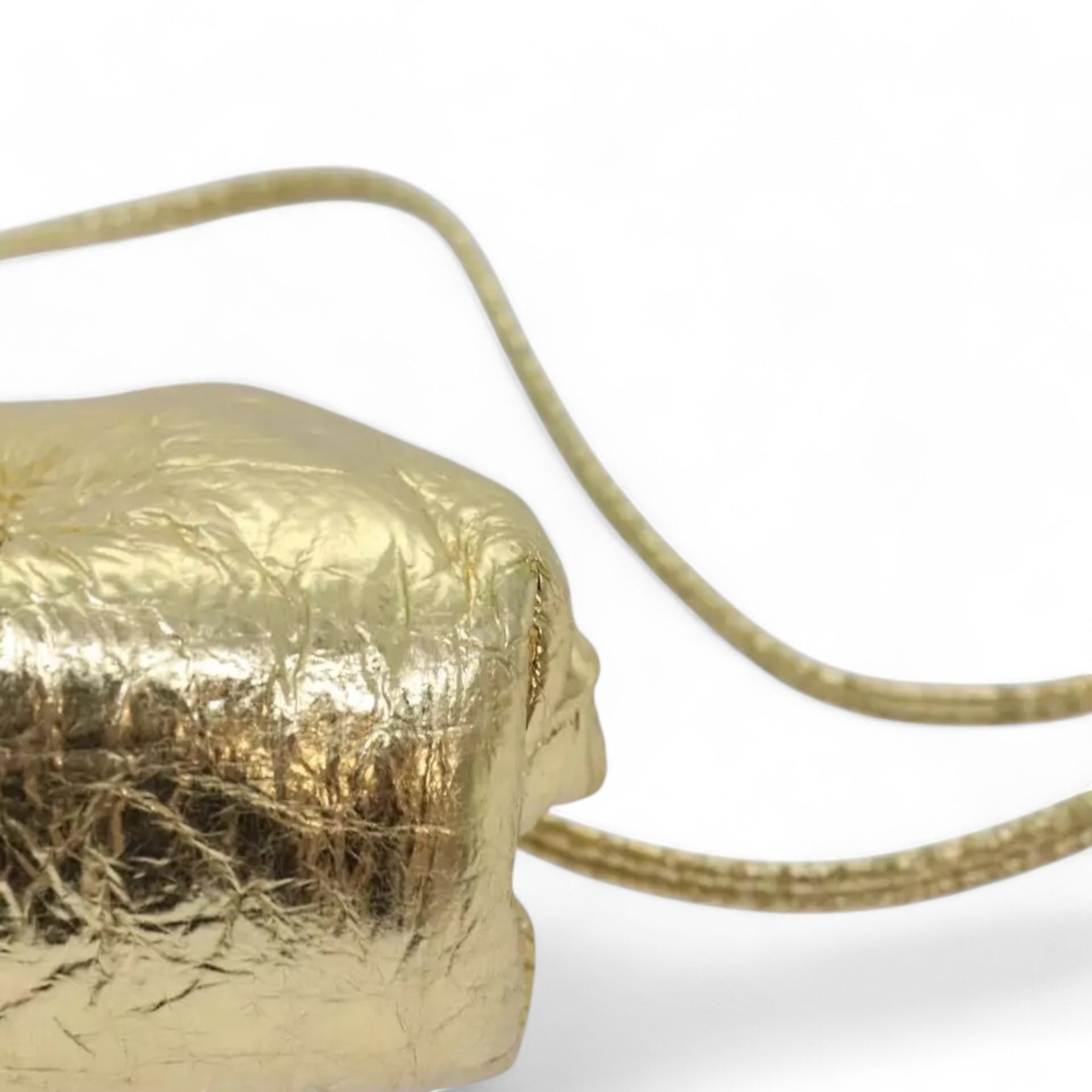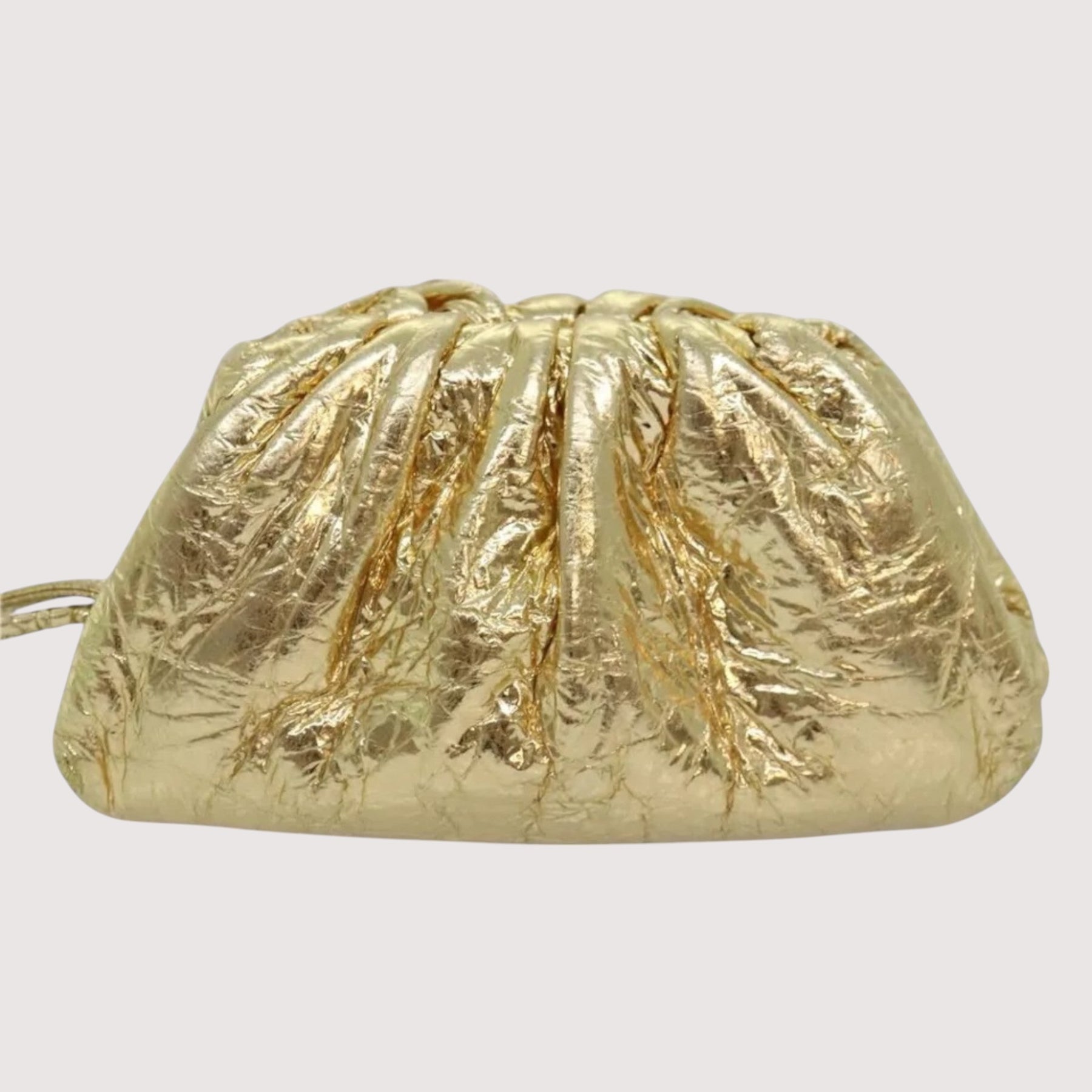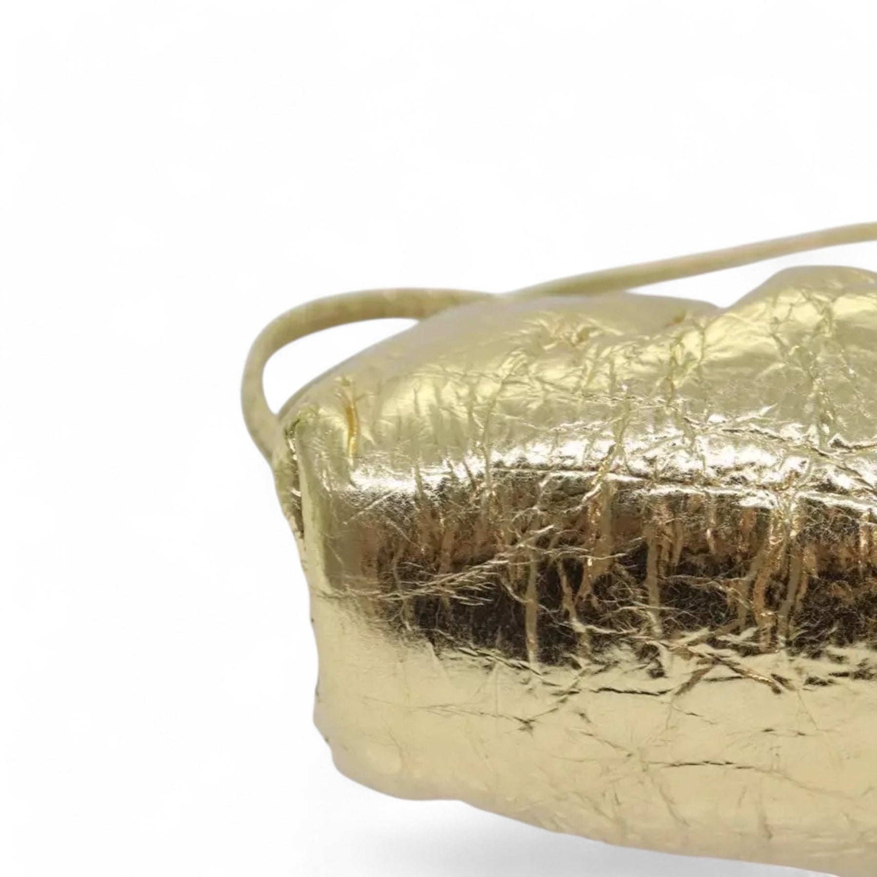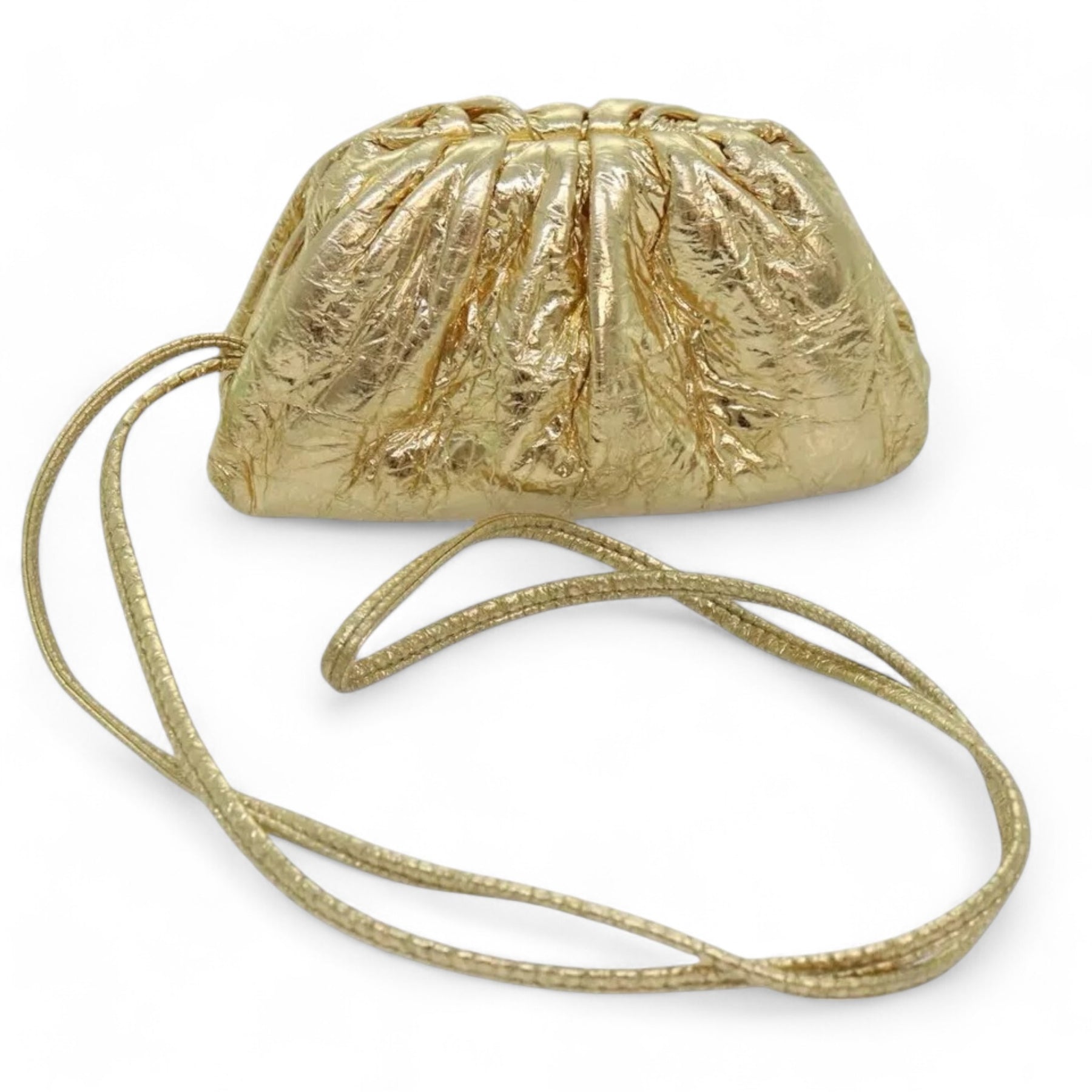 Bottega Veneta Pouch Leather Gold Women's Bag with Strap and Dust Bag