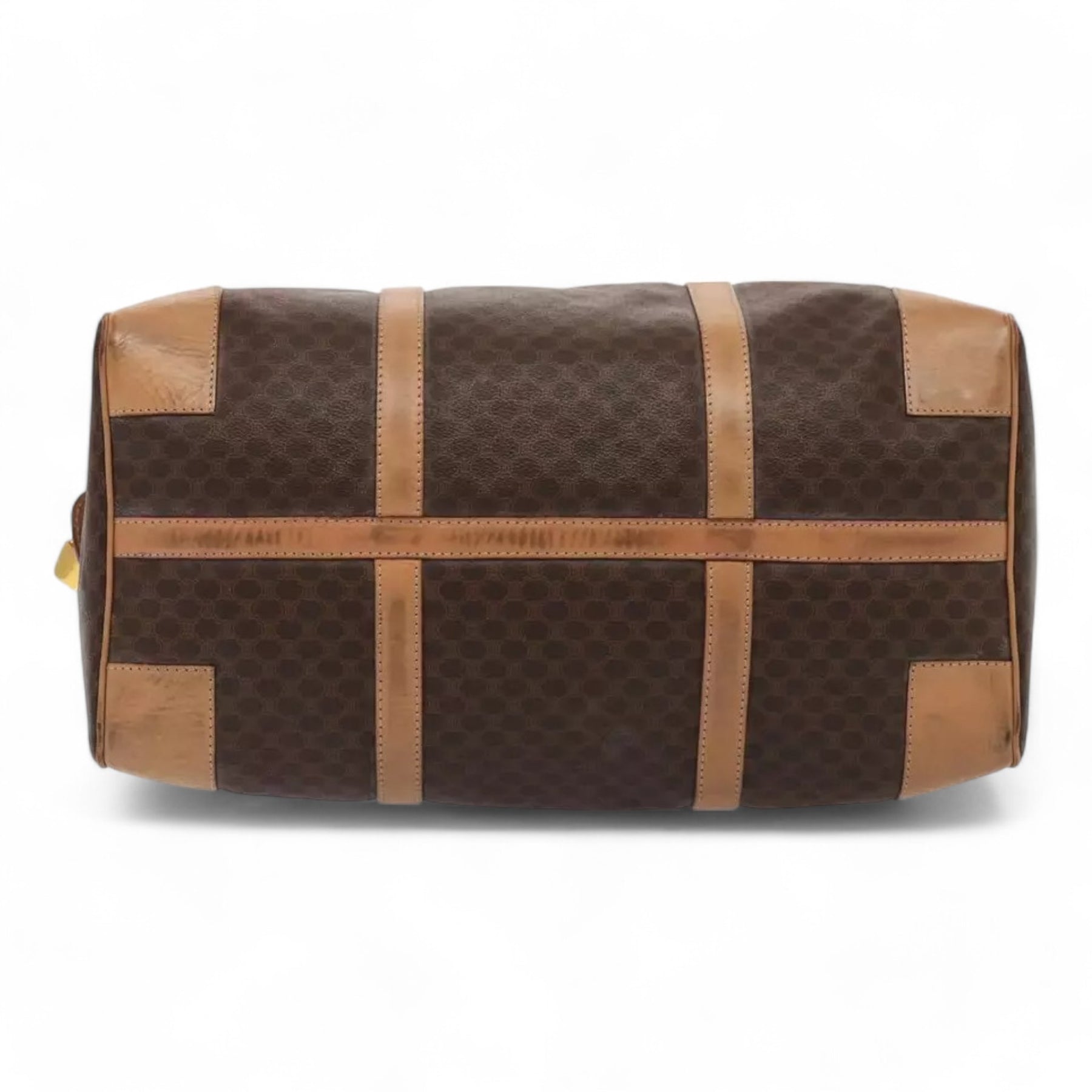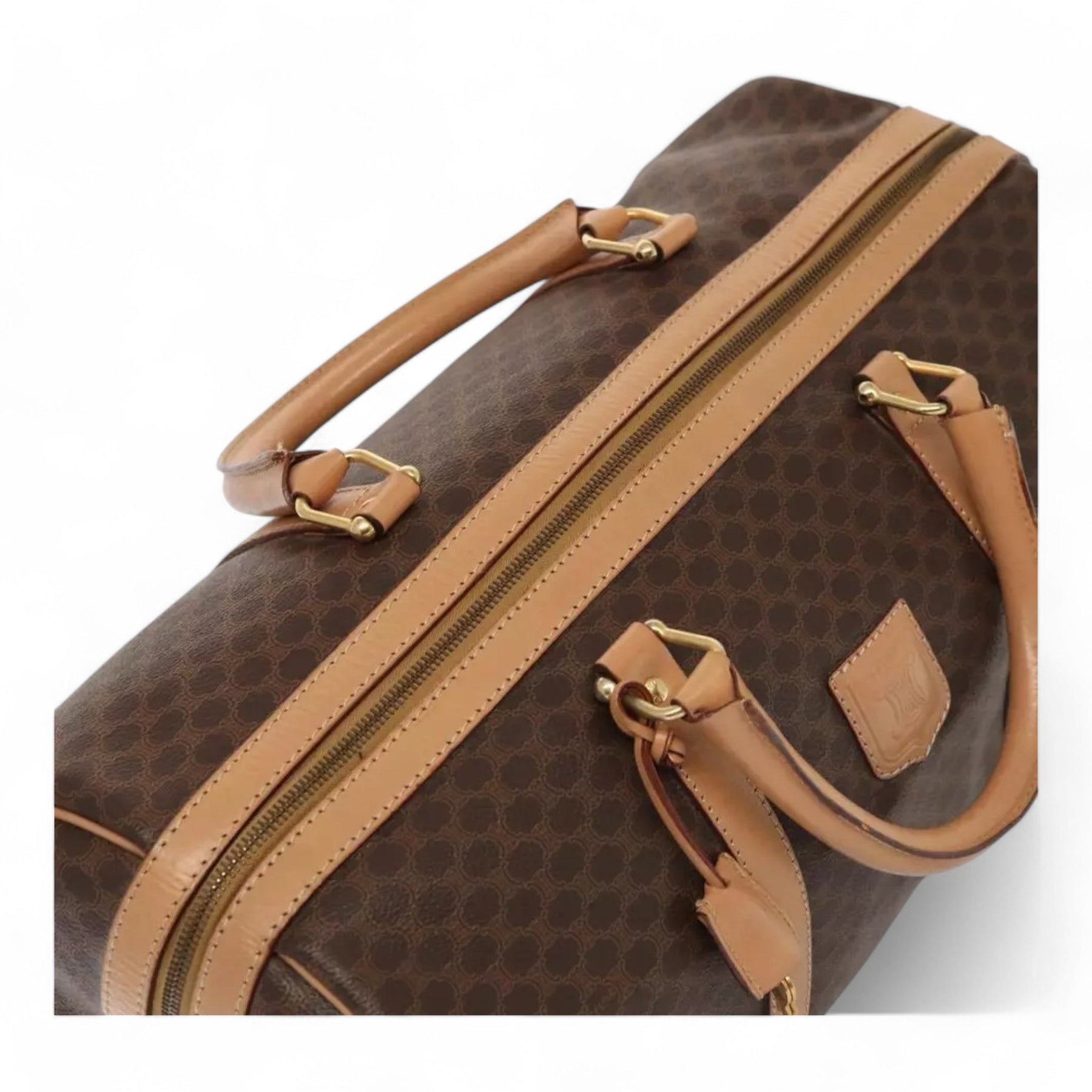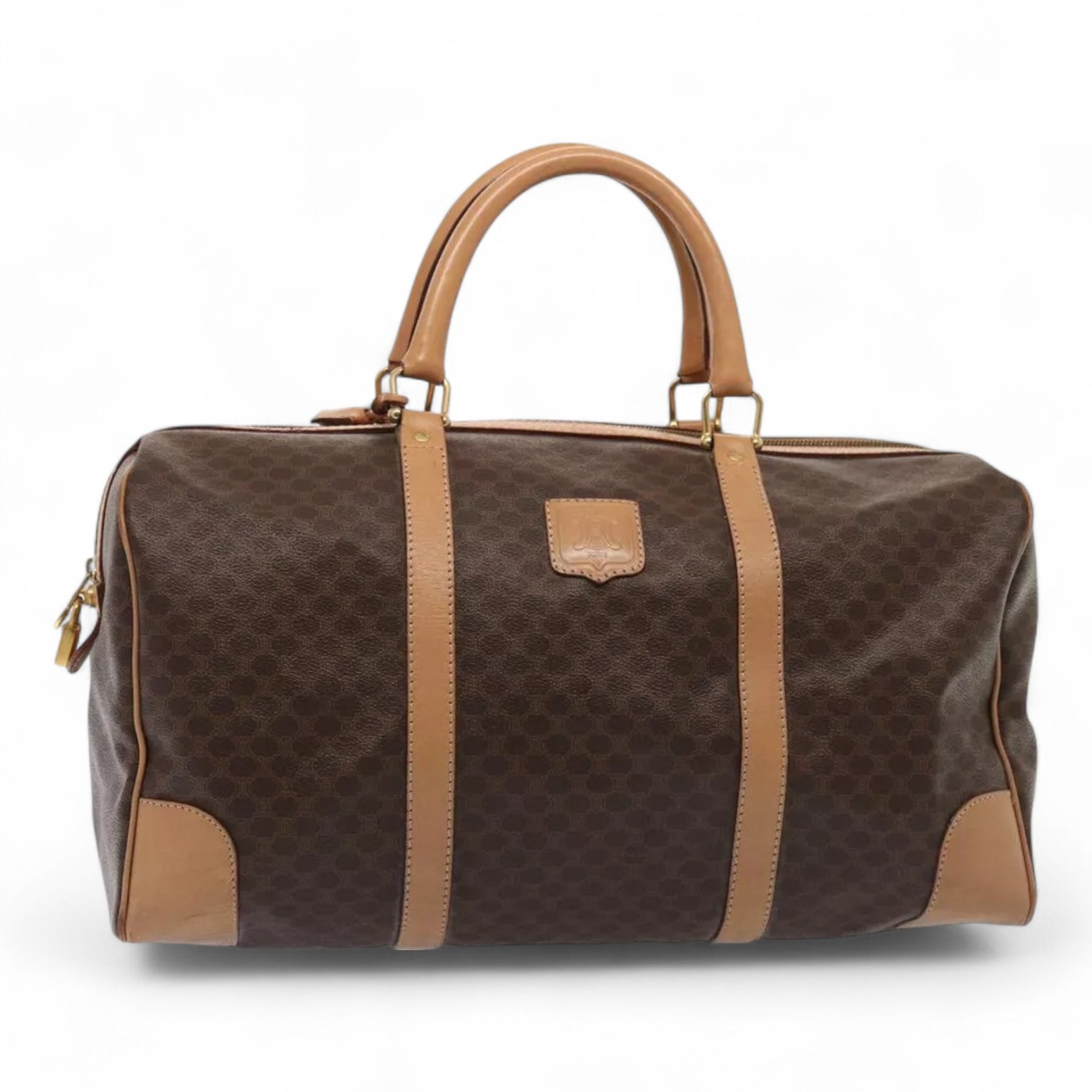 CELINE Macadam Canvas Duffel Bag PVC Leather Brown Unisex Lock and Keys