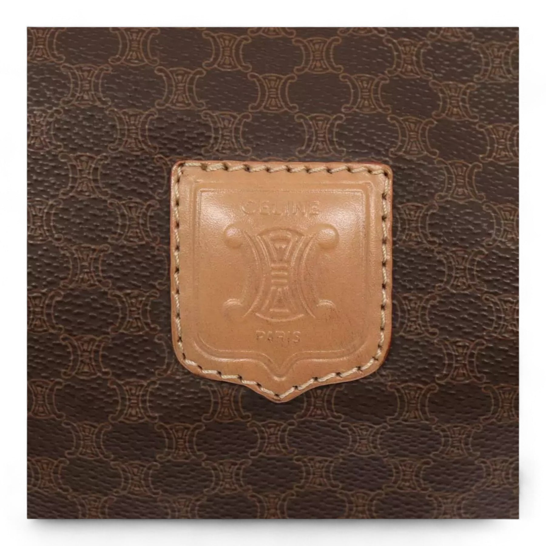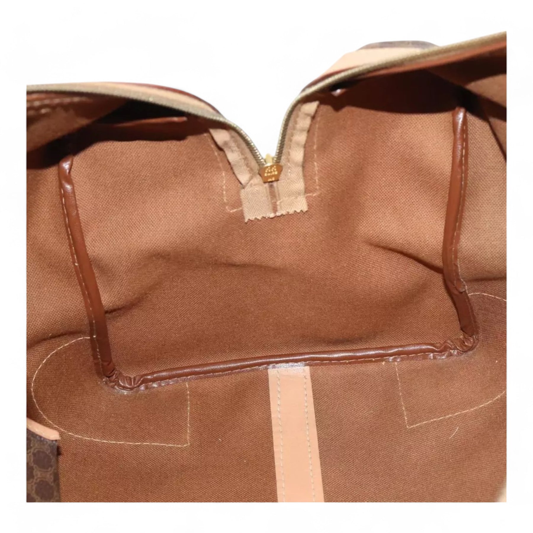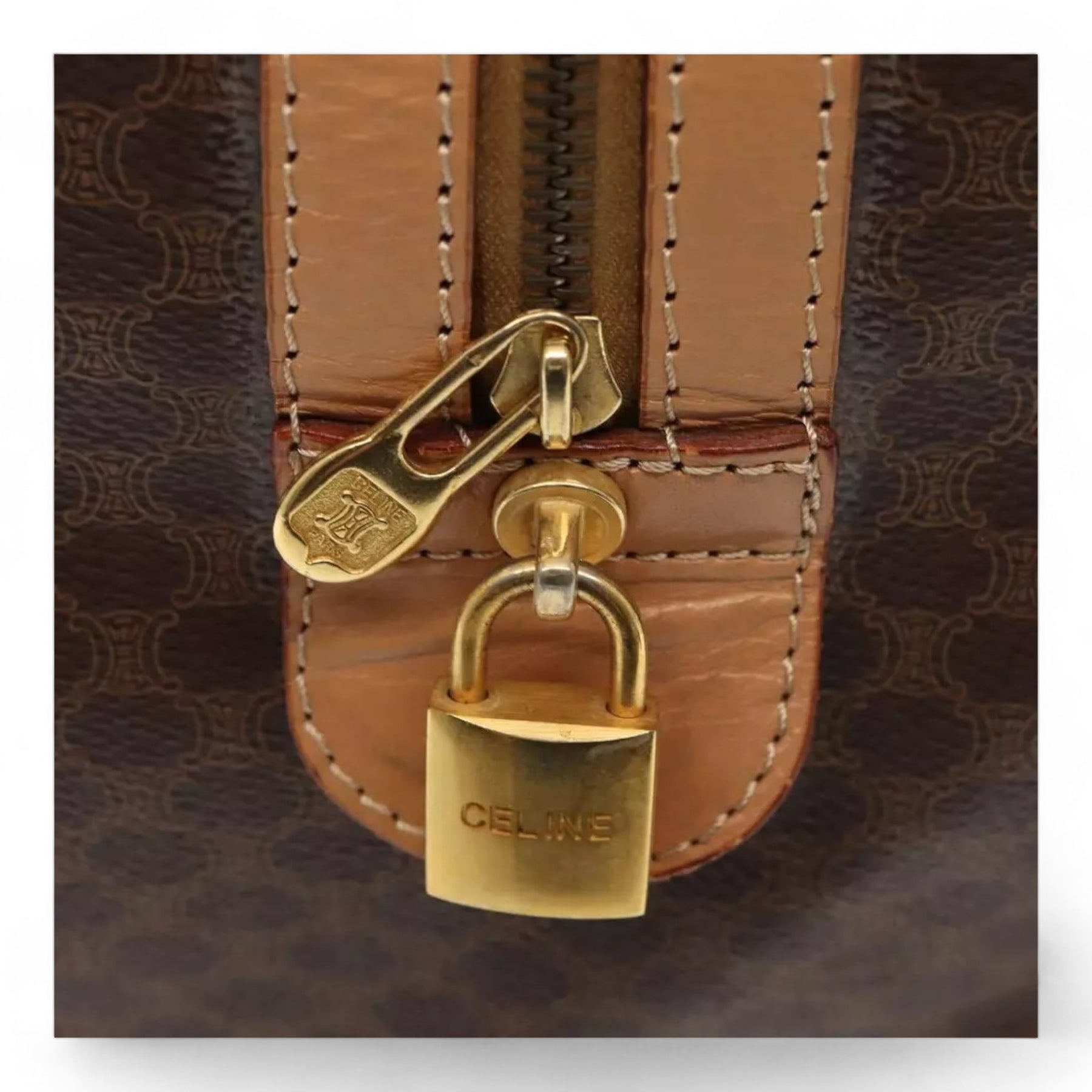 CELINE Macadam Canvas Duffel Bag PVC Leather Brown Unisex Lock and Keys