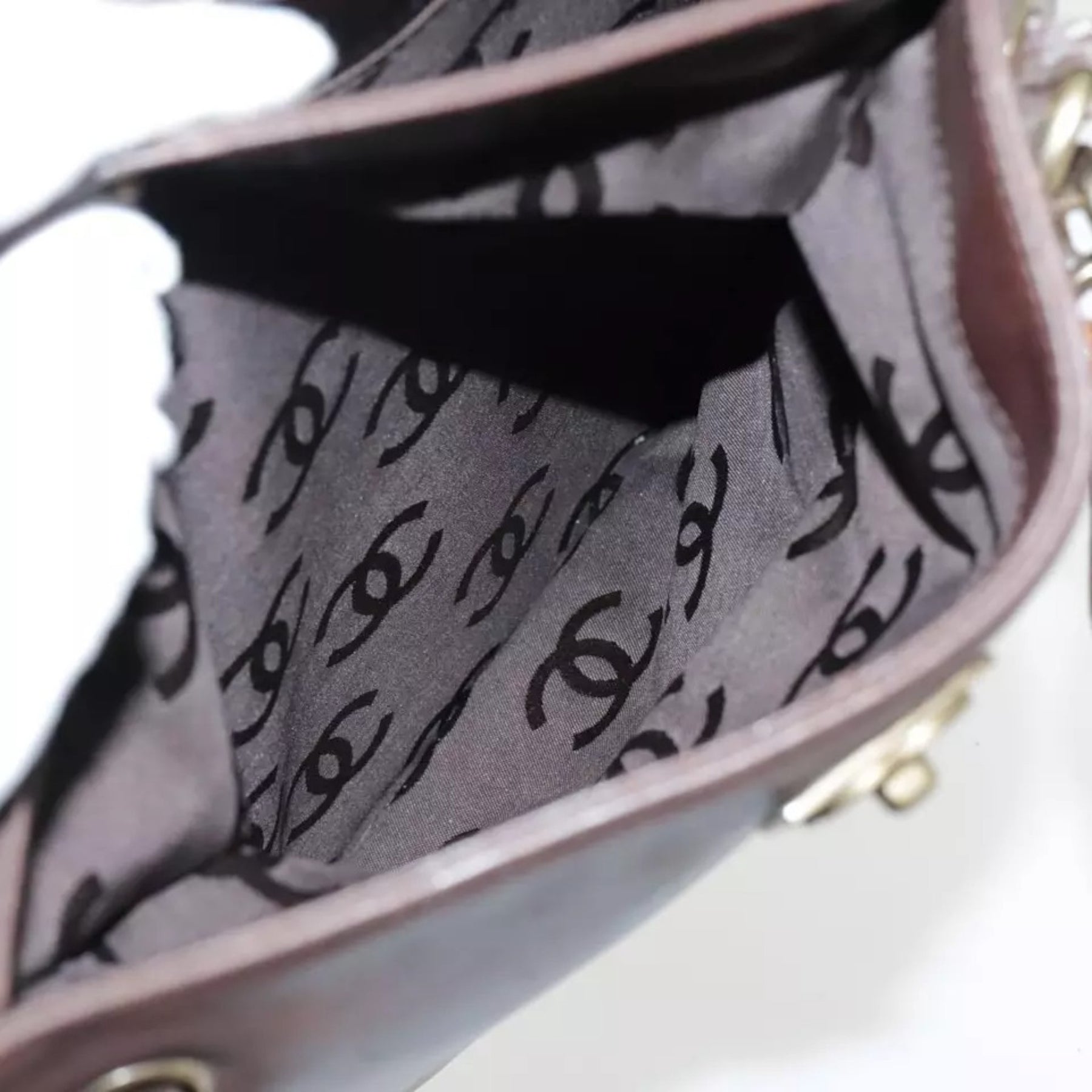 CHANEL Chain Tote Bag Leather Brown CC Women's Vintage Shoulder Bag