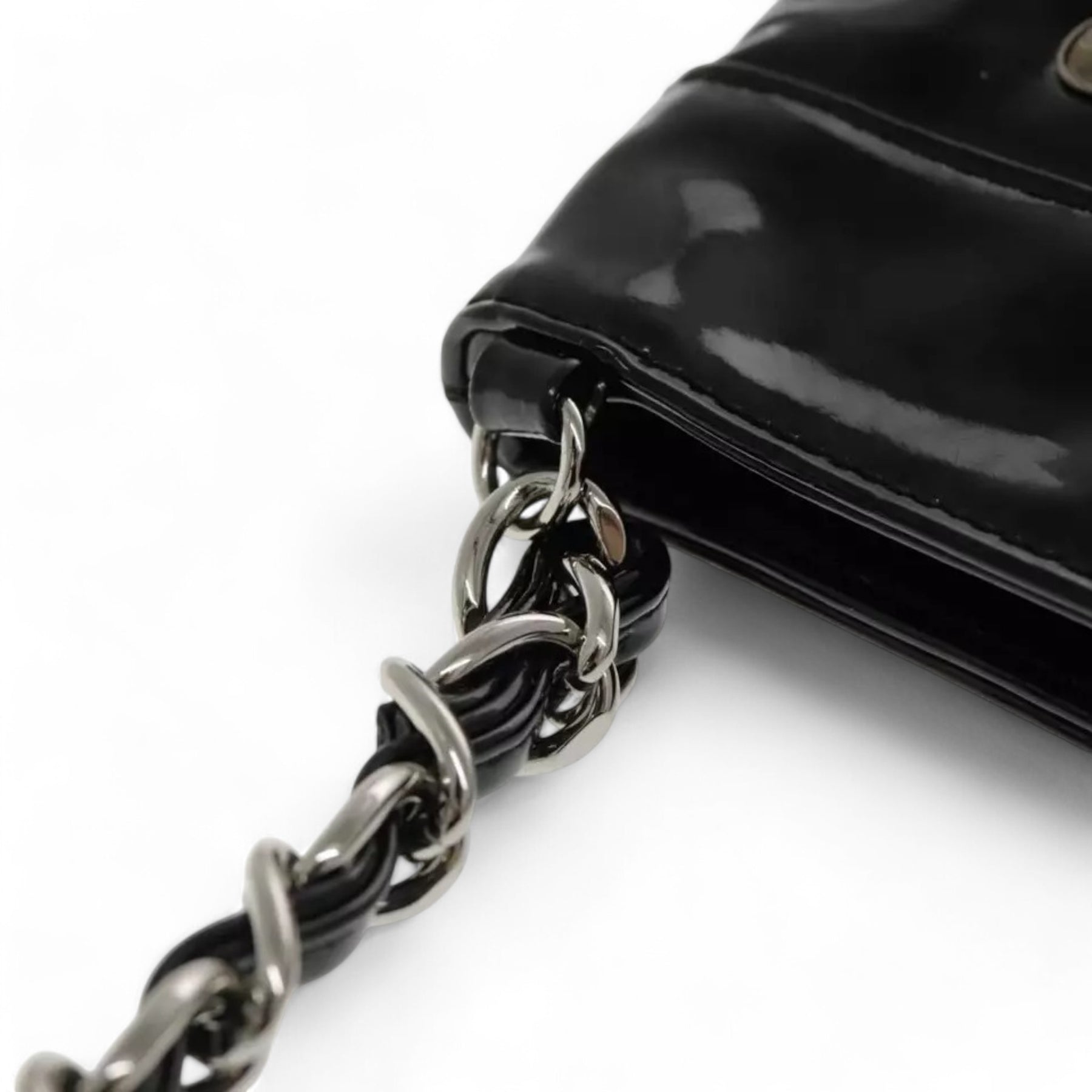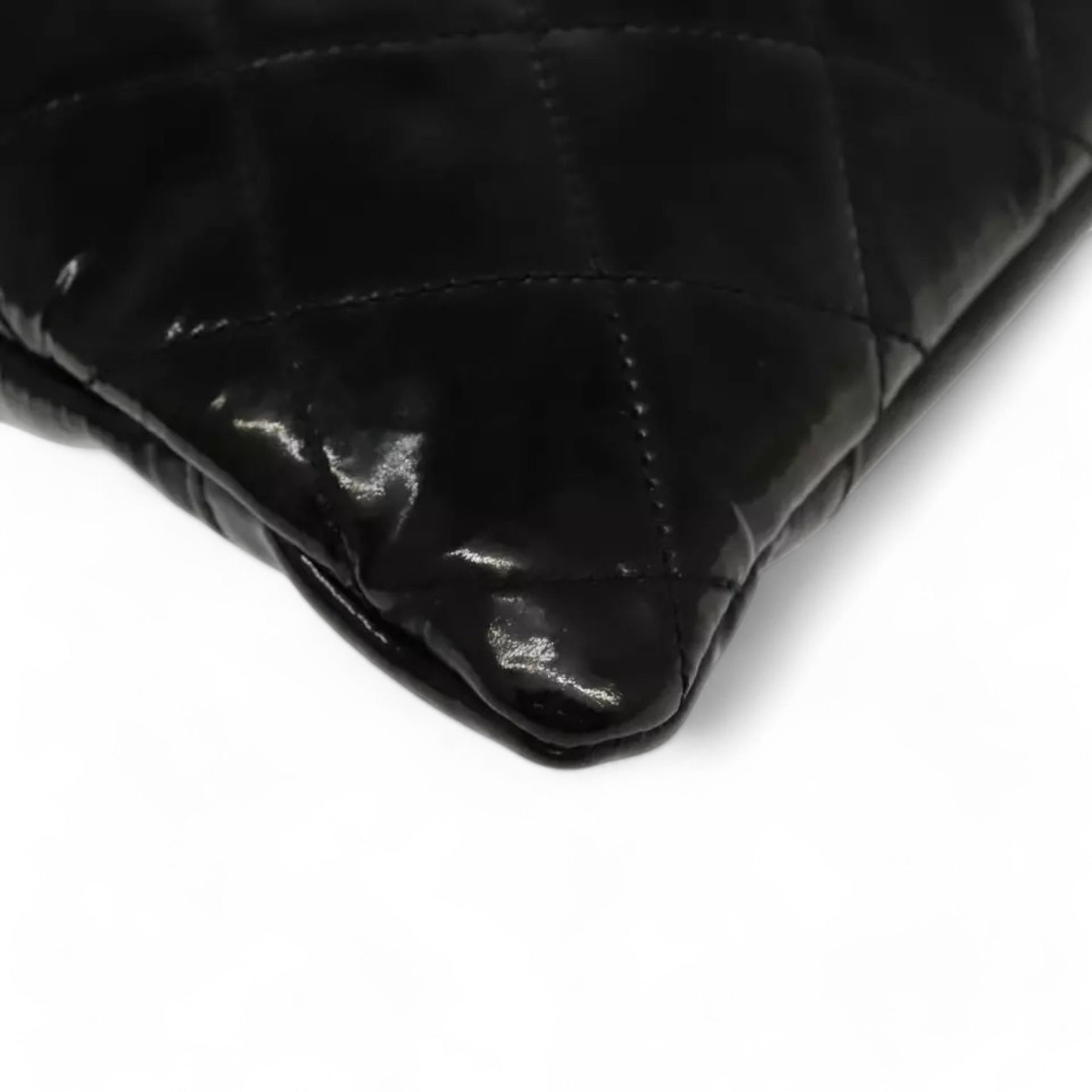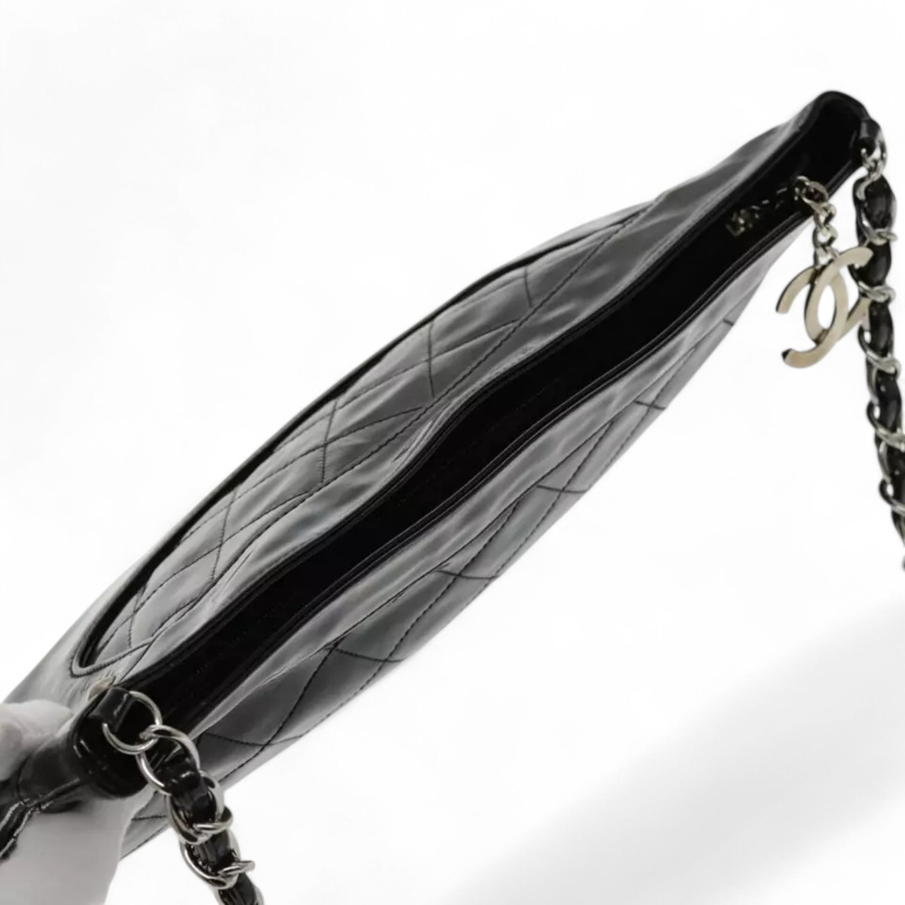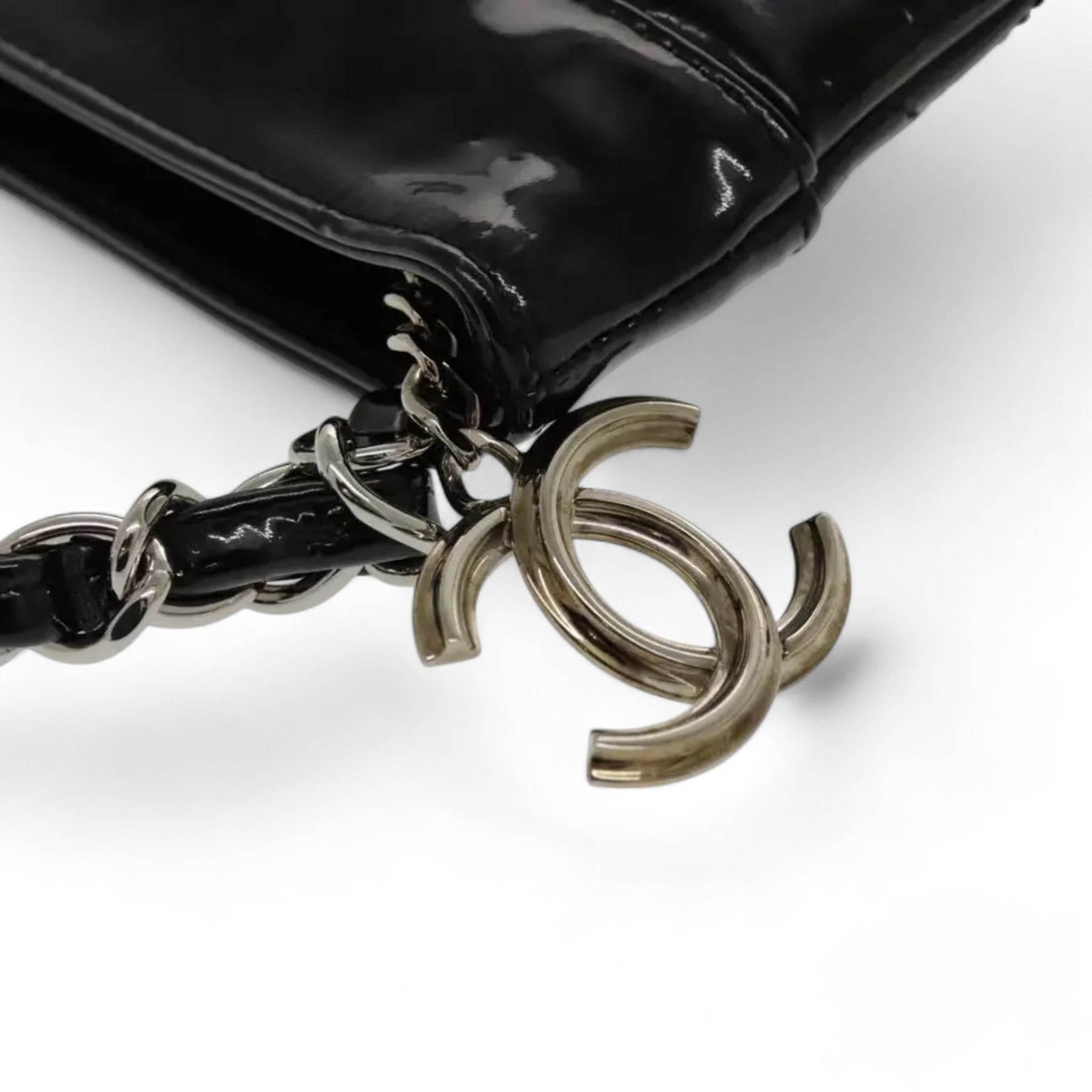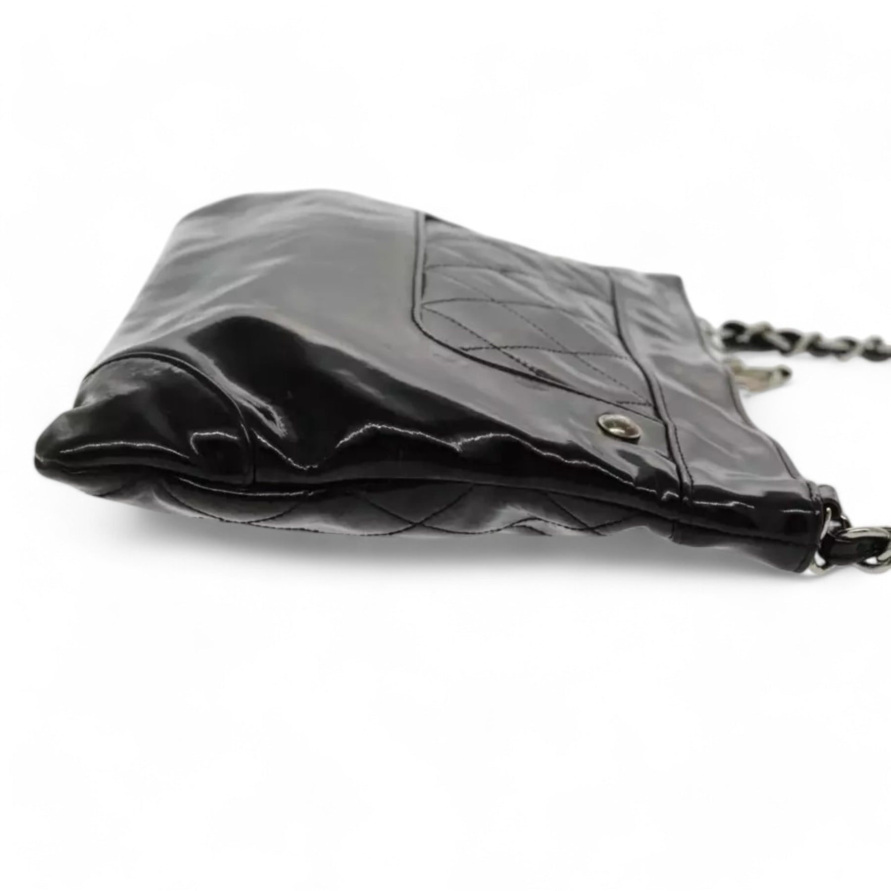 CHANEL Matelasse Chain Shoulder Bag Patent Leather Black Silver CC