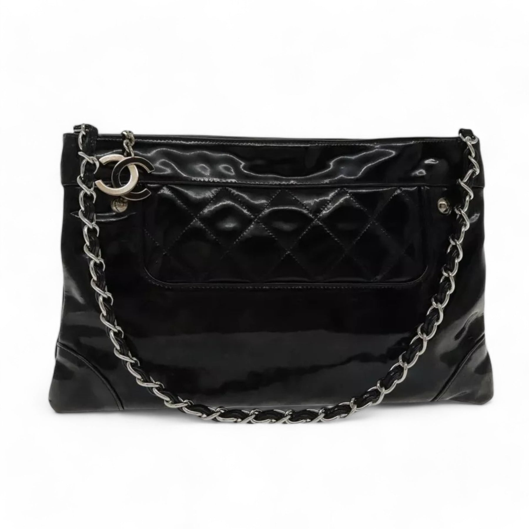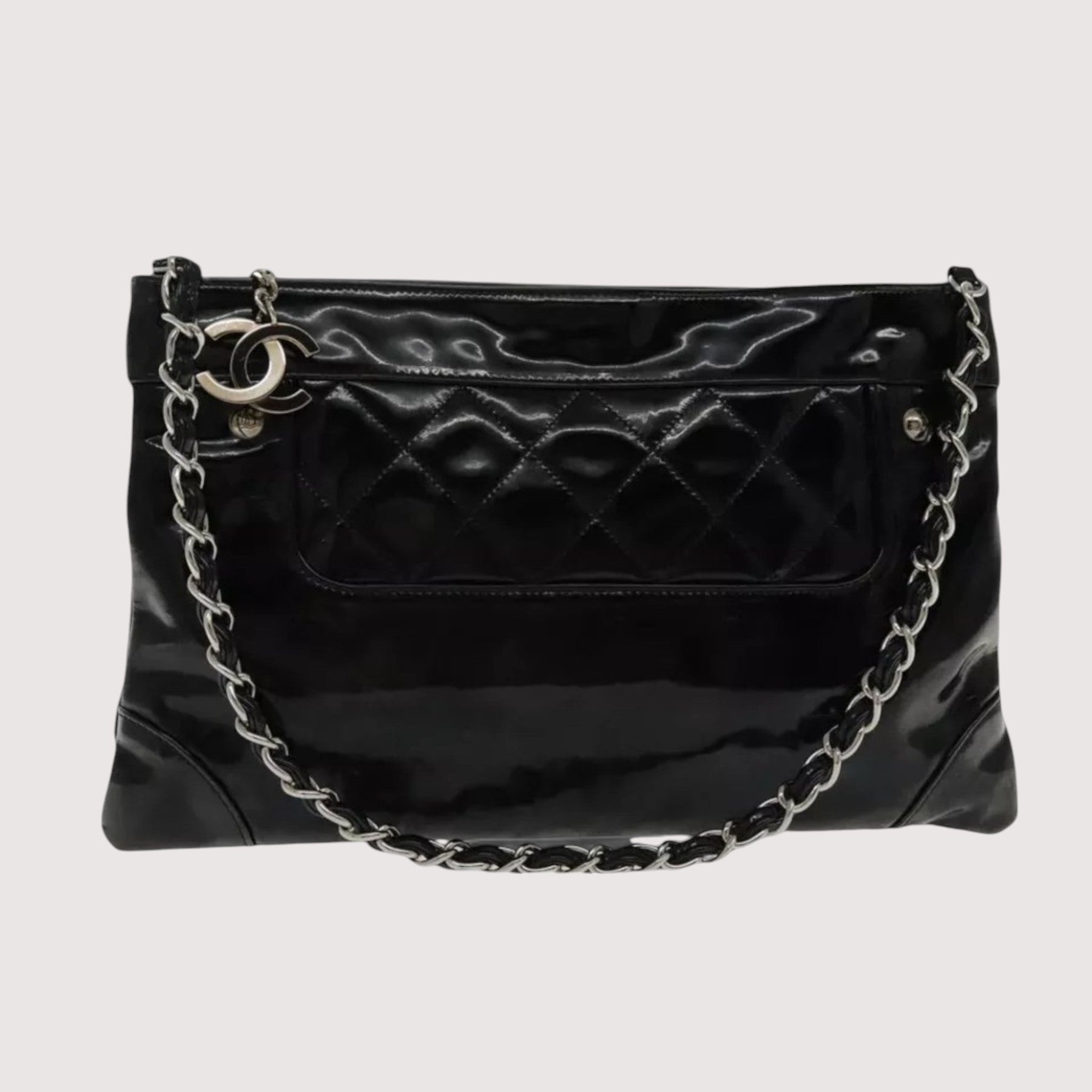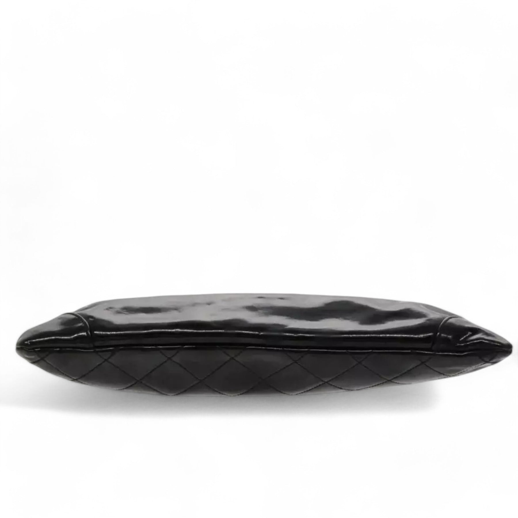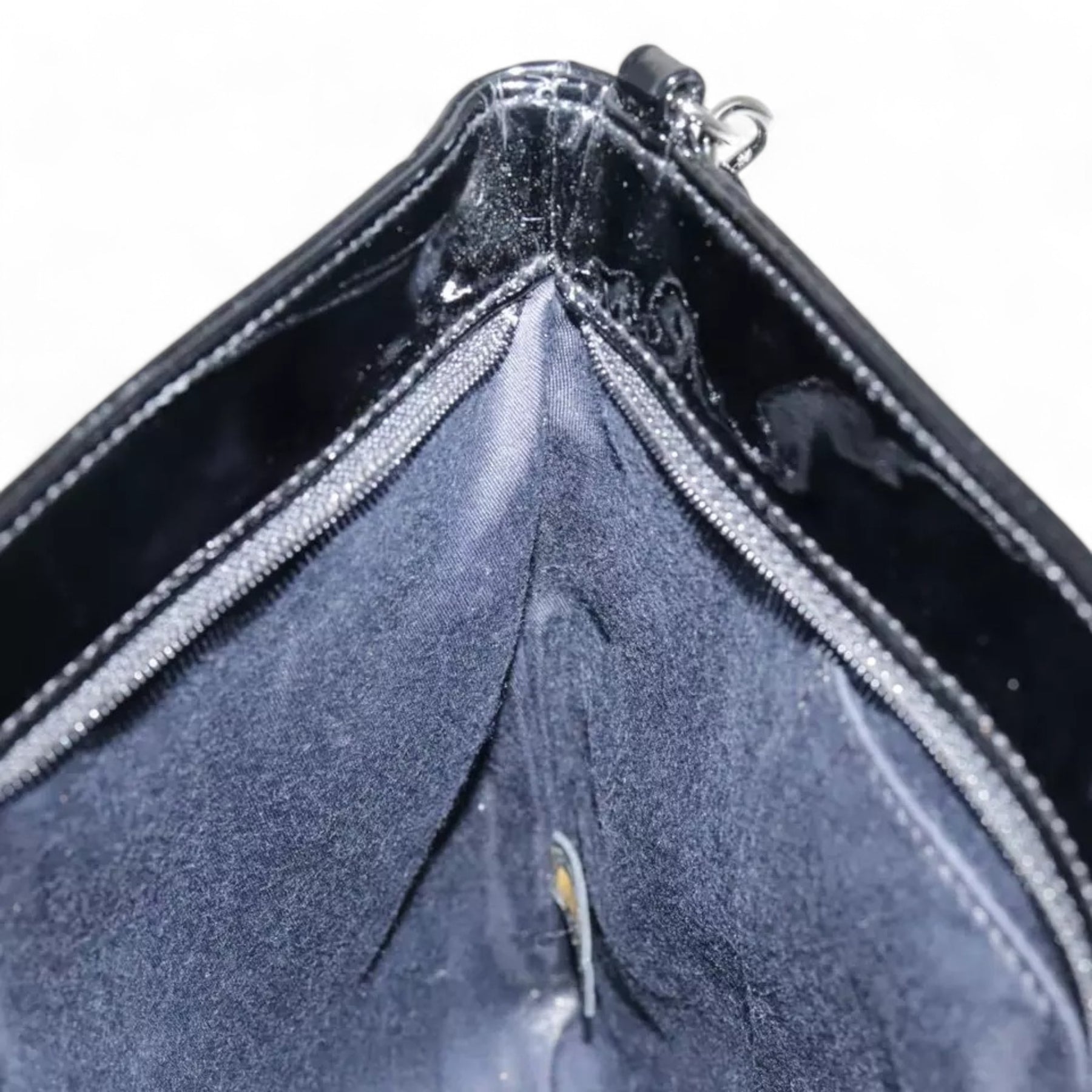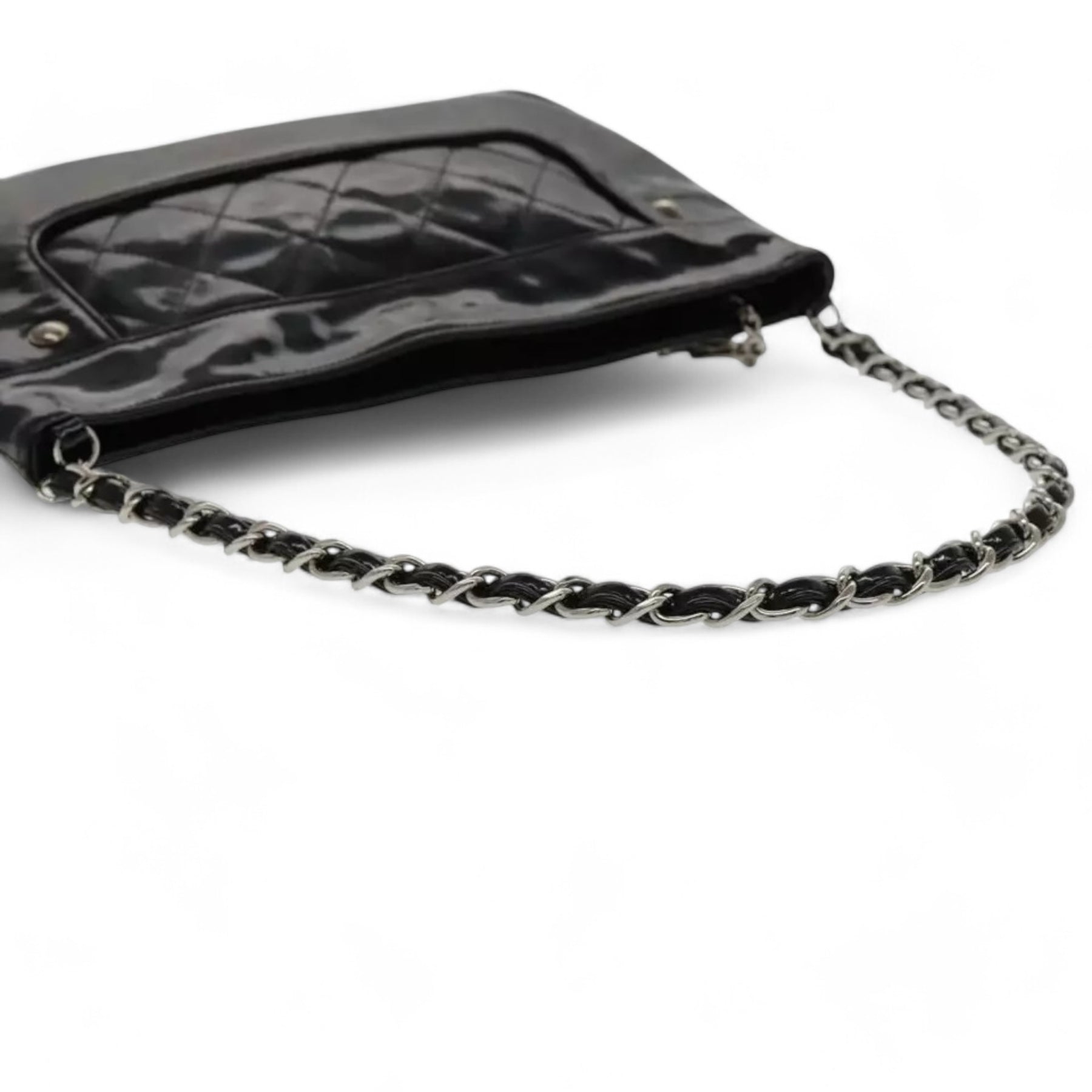 CHANEL Matelasse Chain Shoulder Bag Patent Leather Black Silver CC