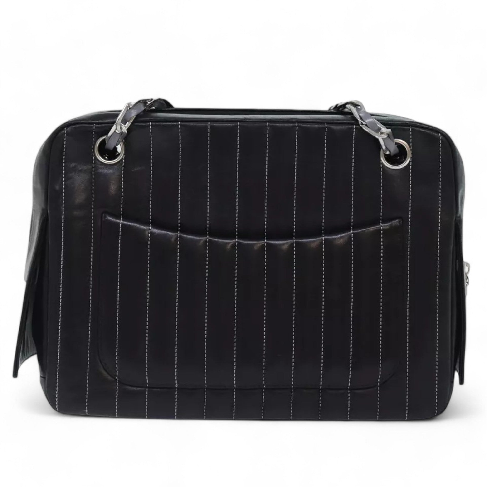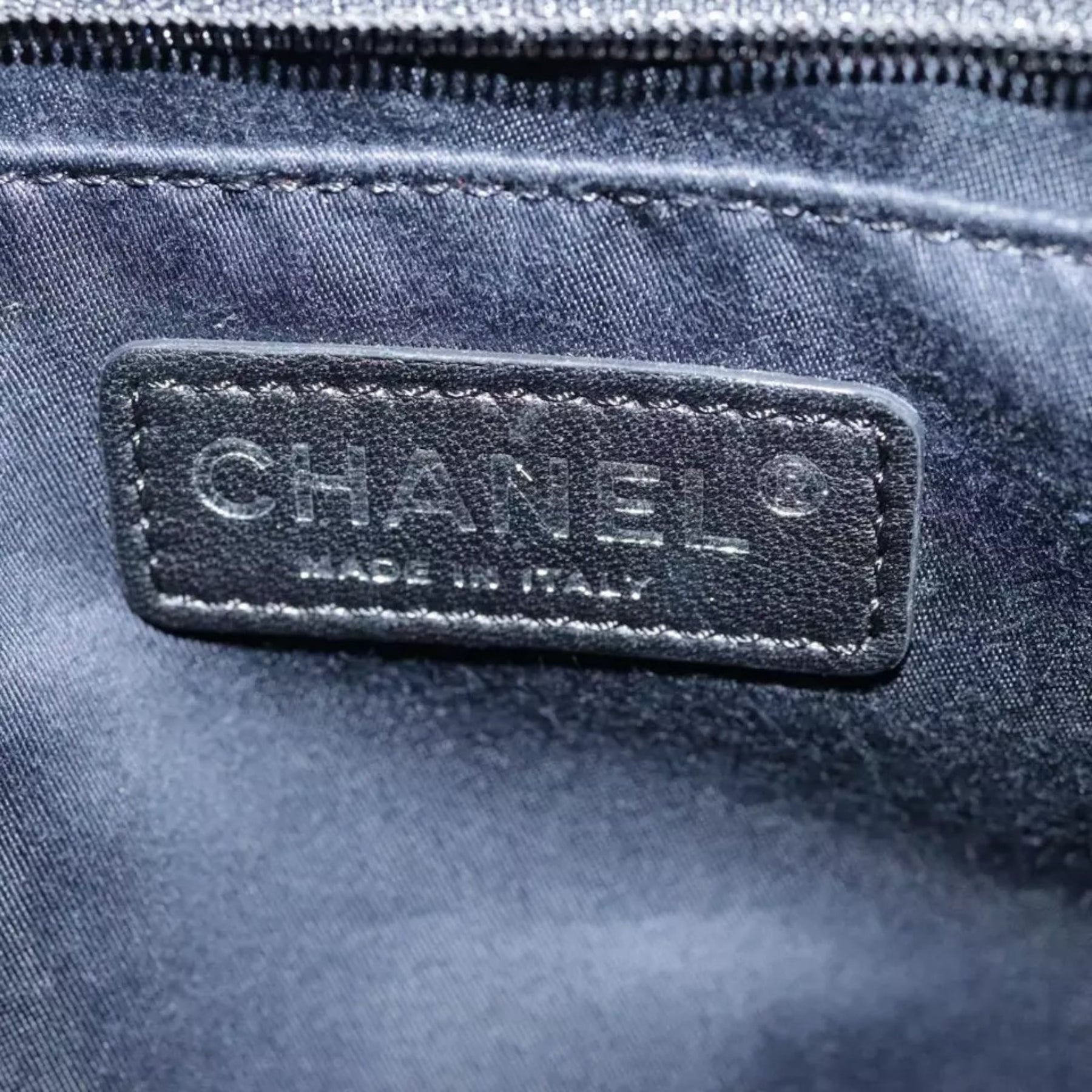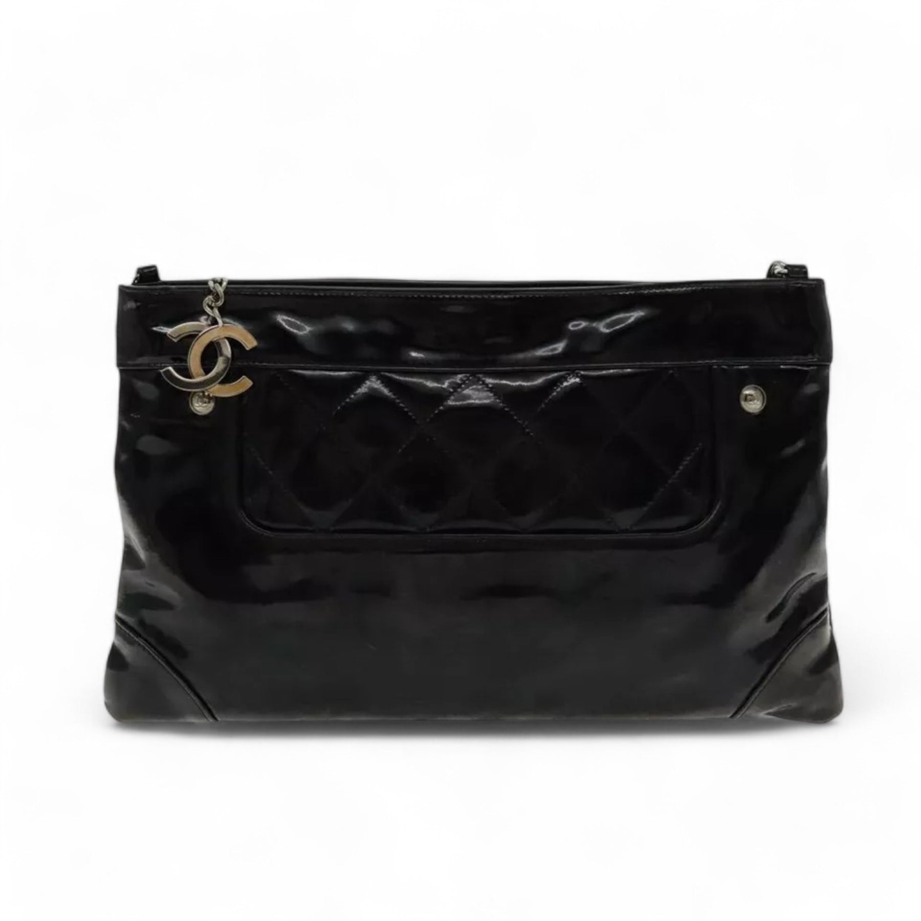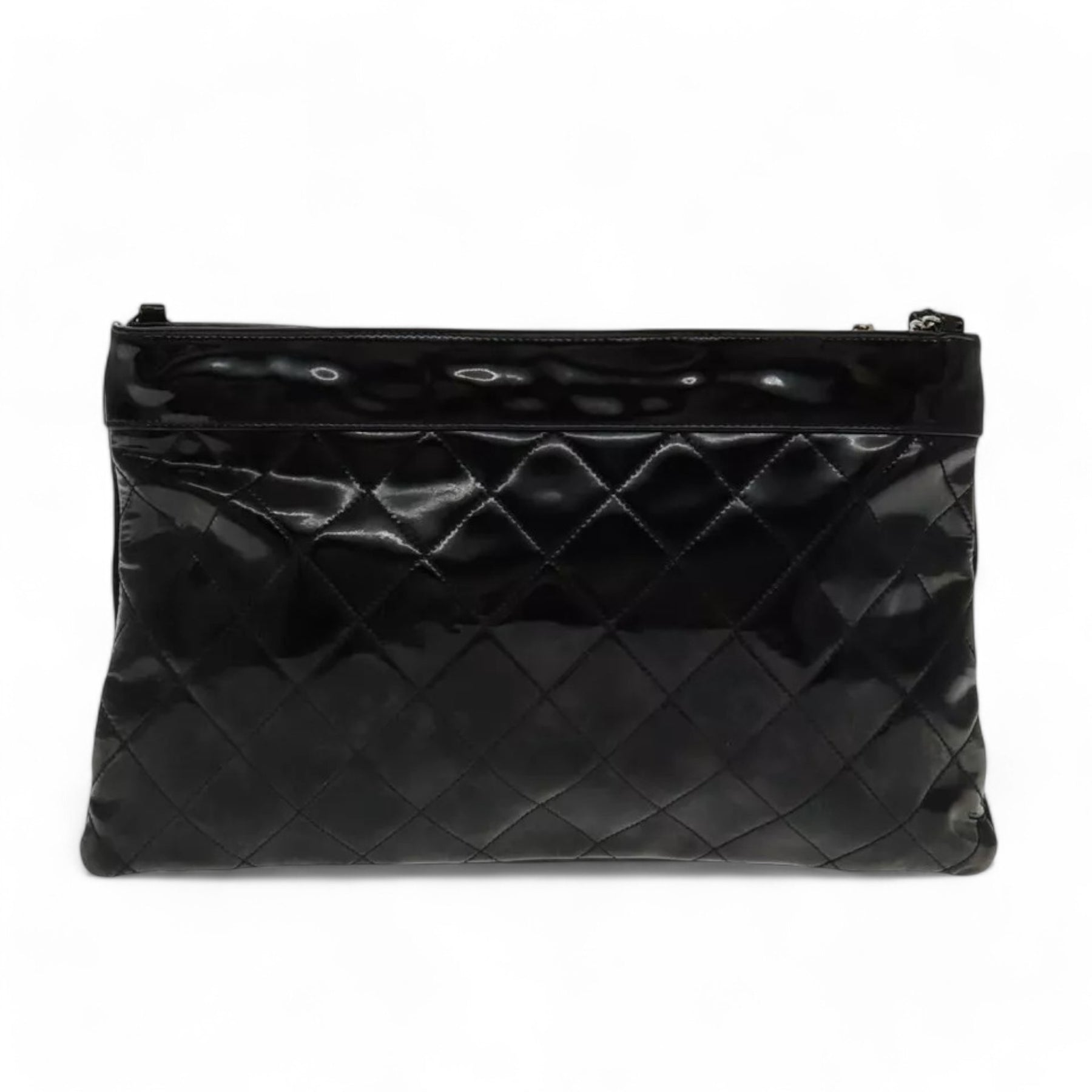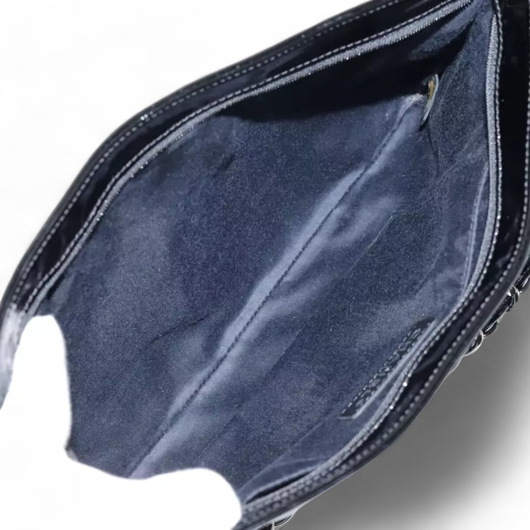 CHANEL Matelasse Chain Shoulder Bag Patent Leather Black Silver CC