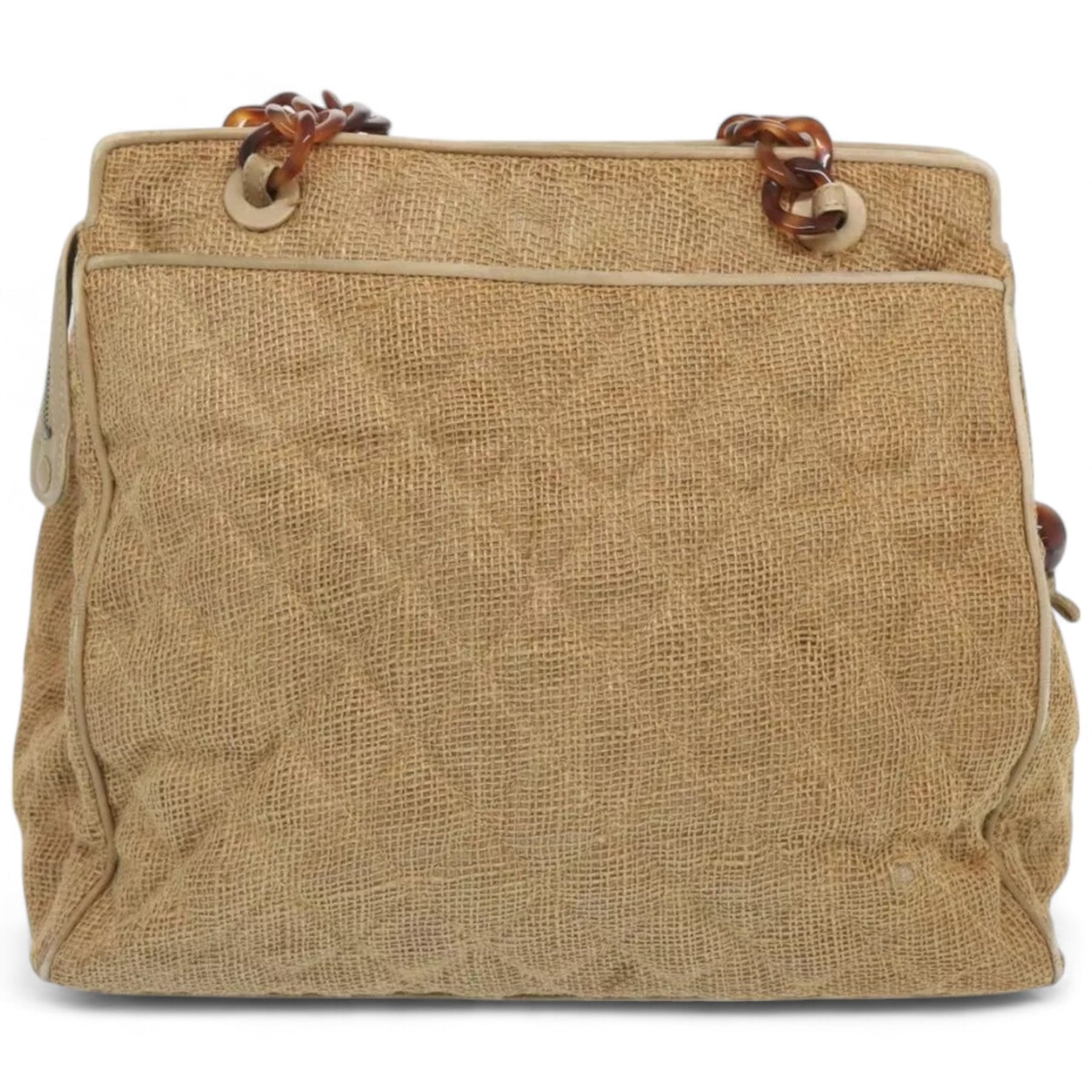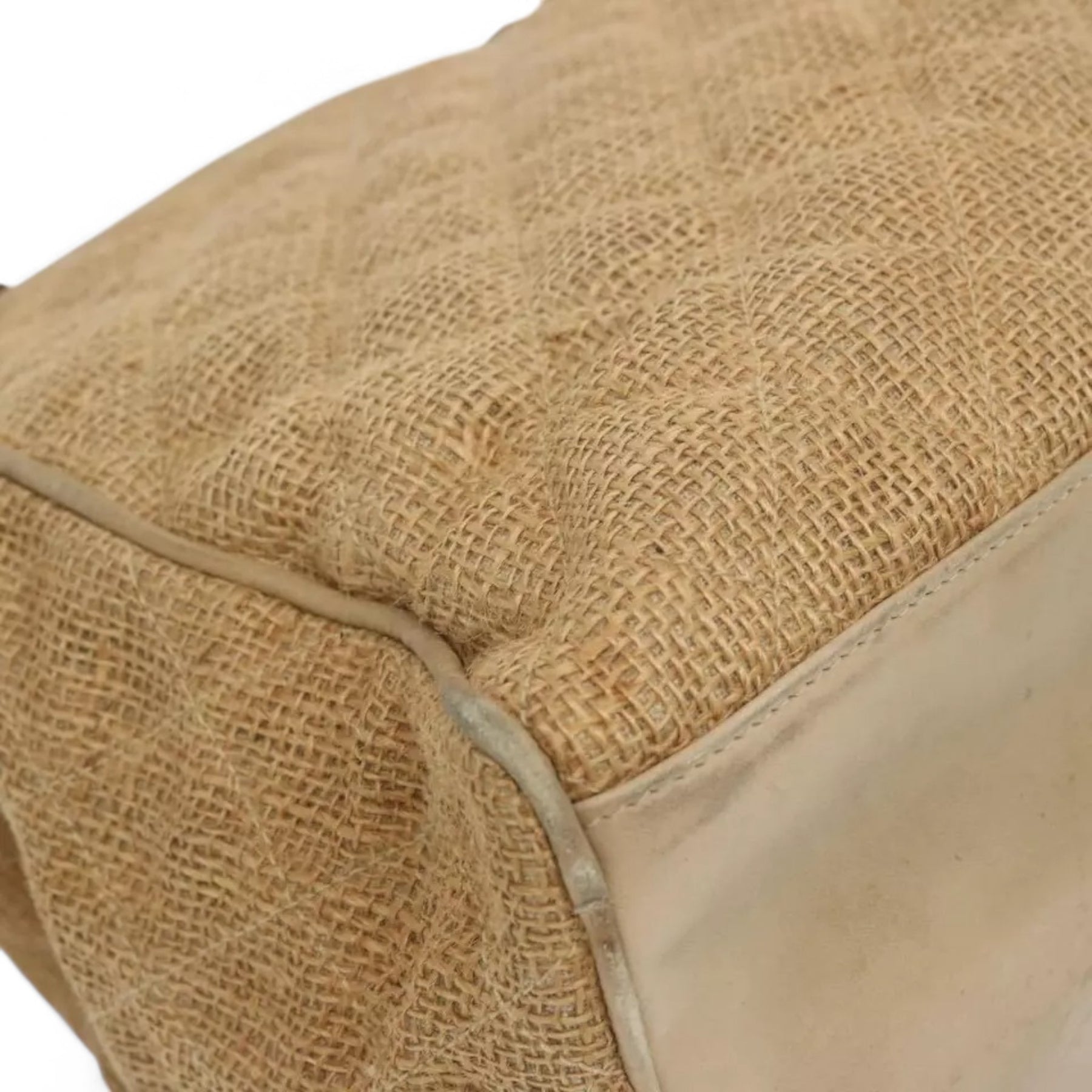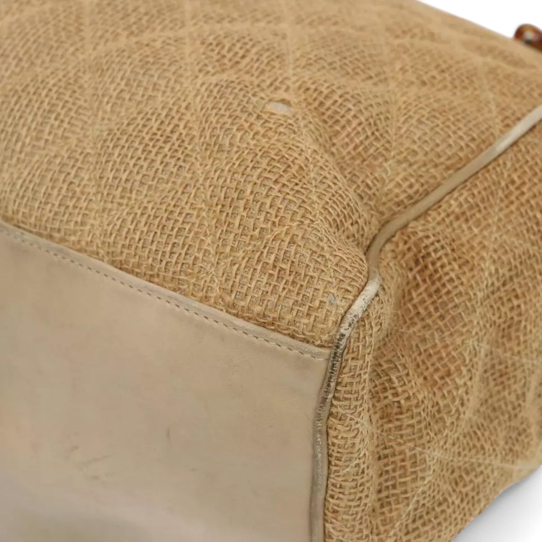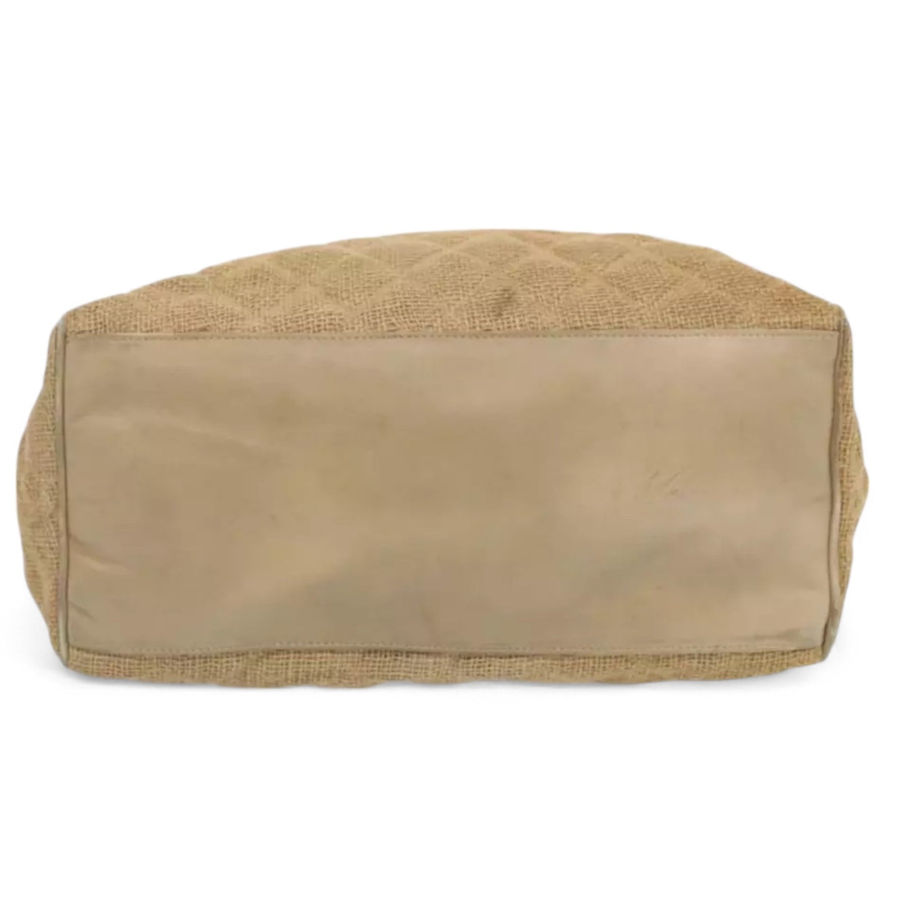 Chanel Matelasse Tote Bag Straw Brown CC Auth Quilted Chain Strap