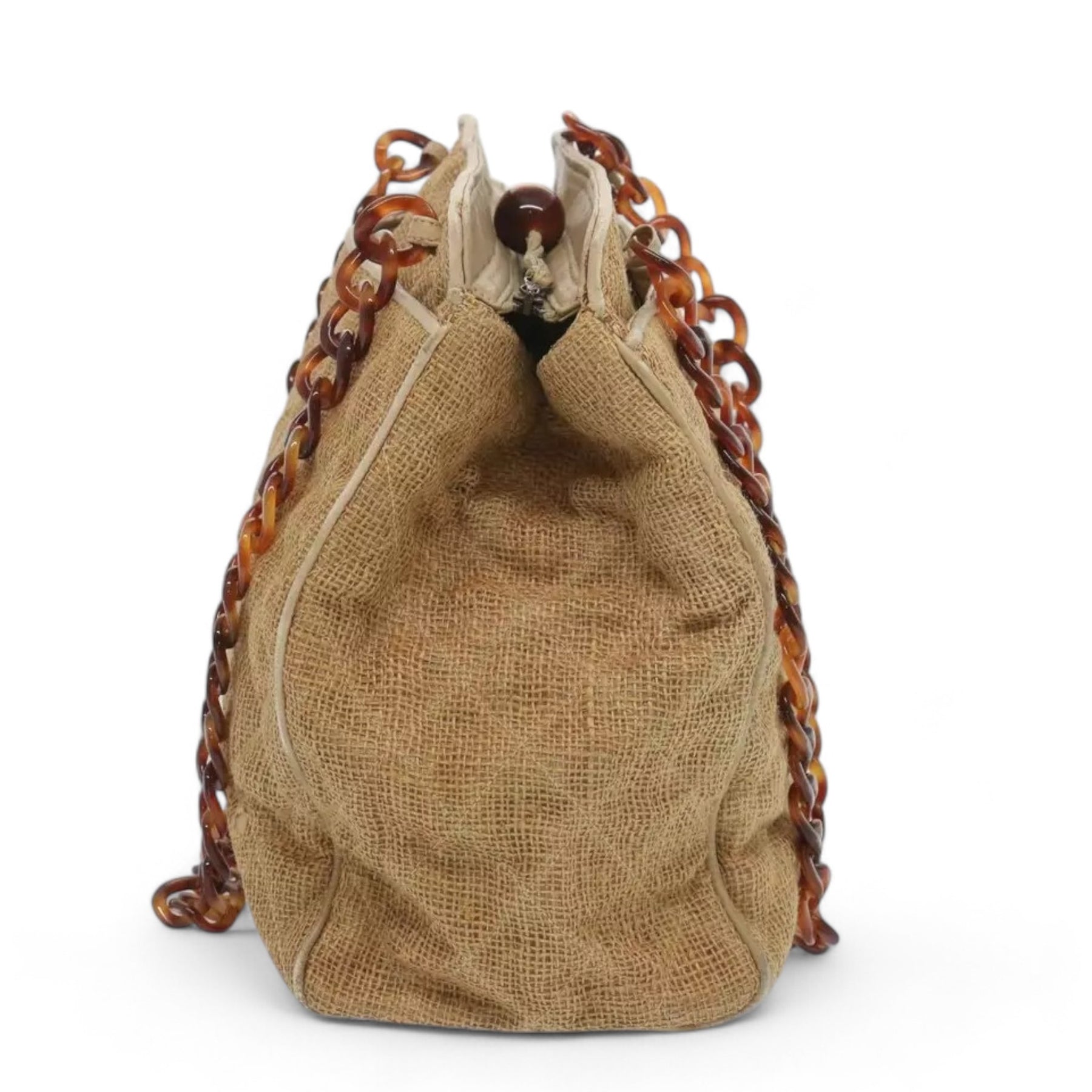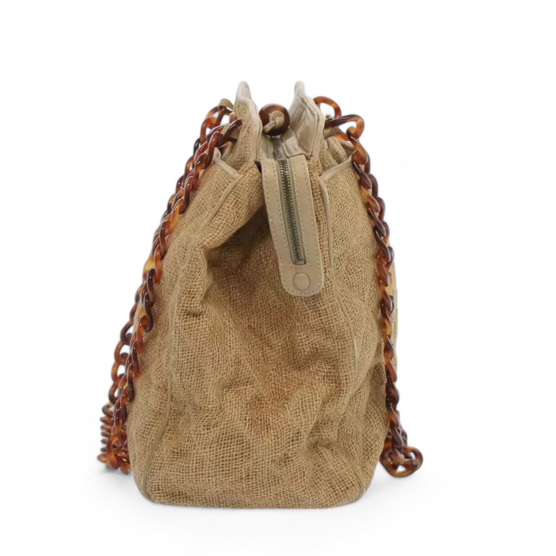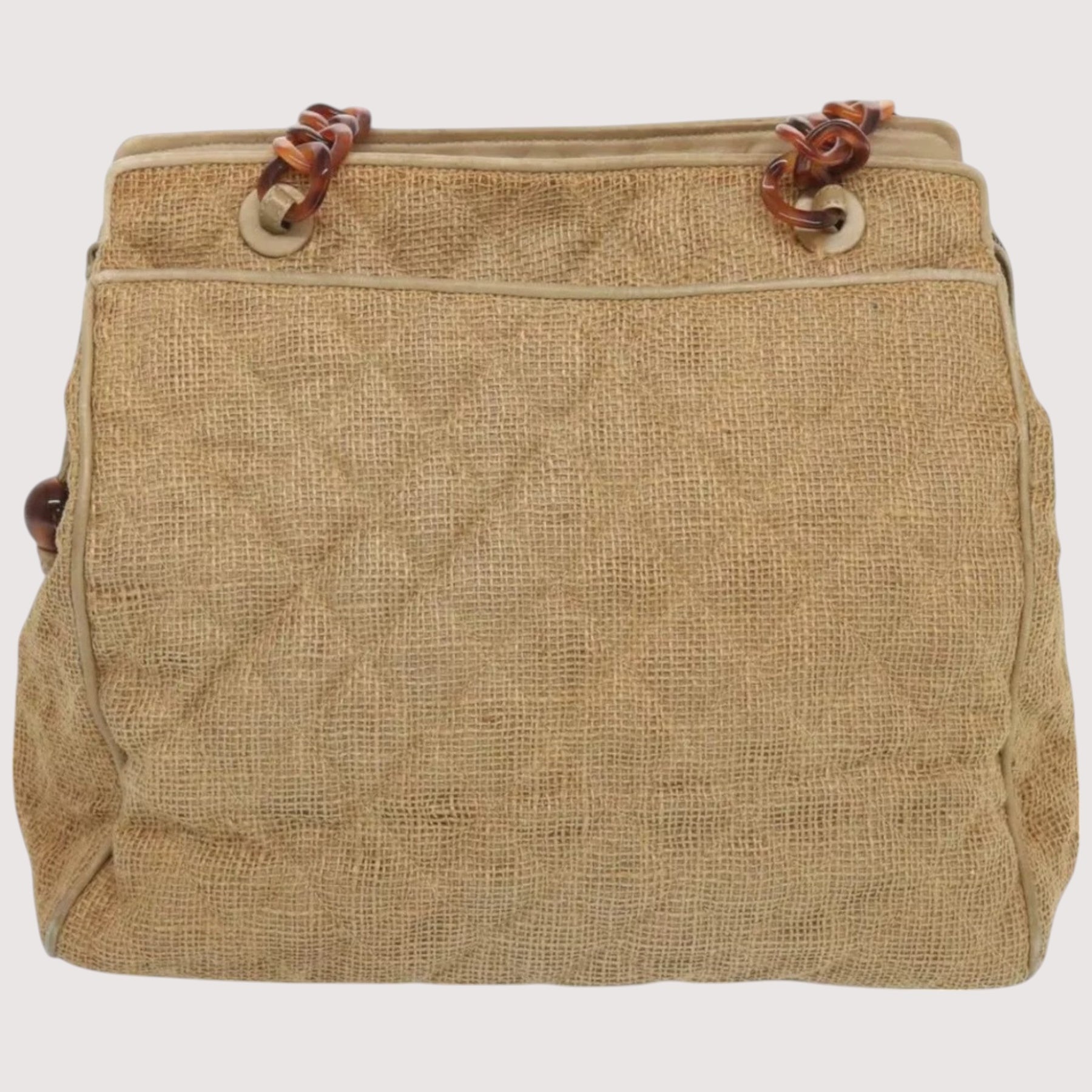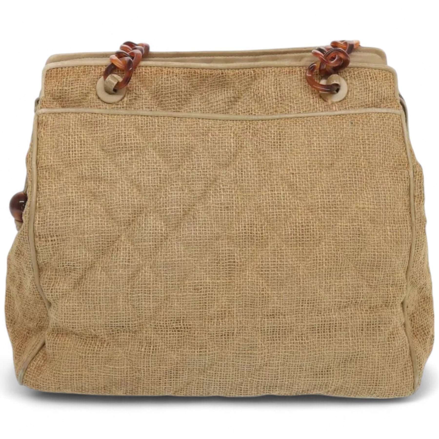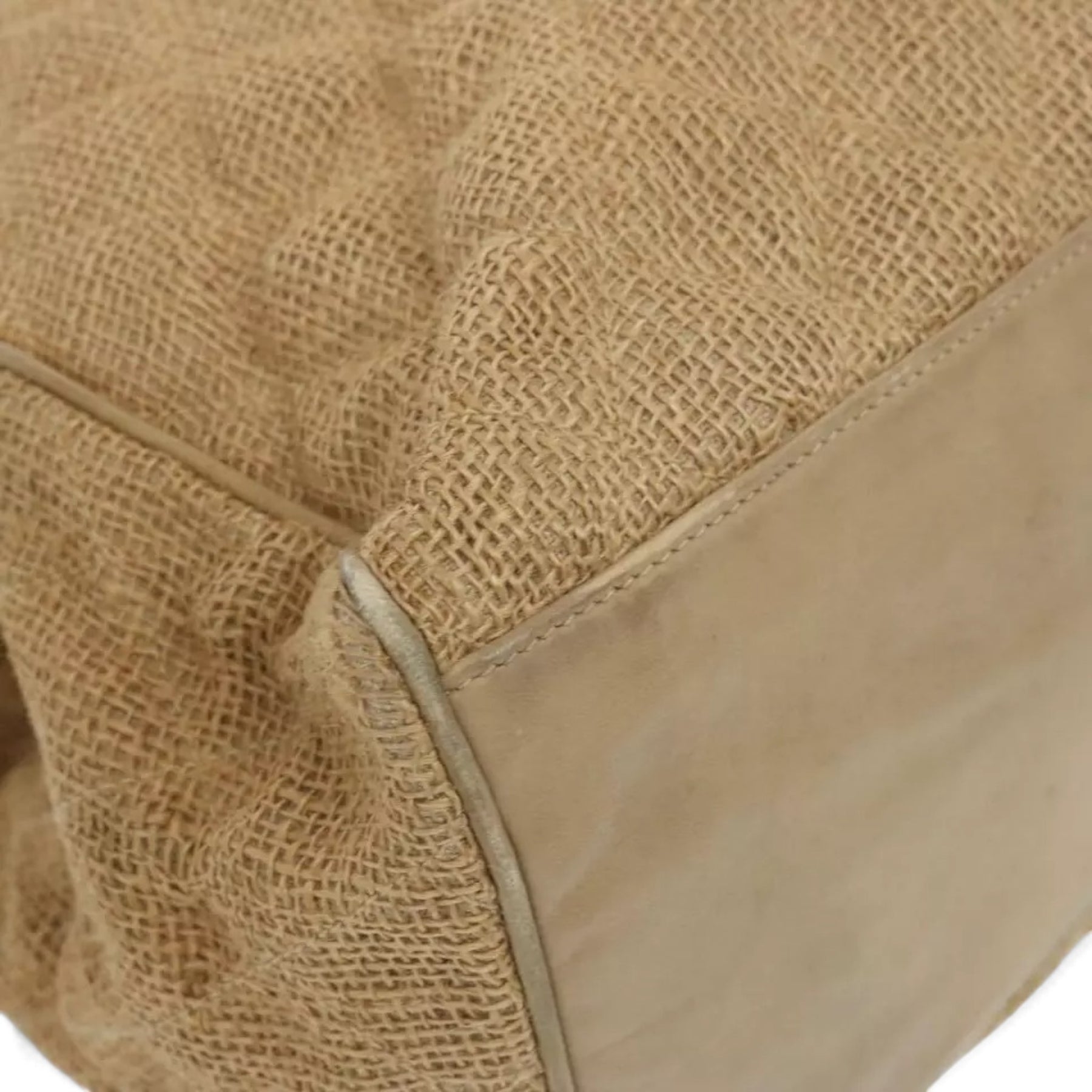 Chanel Matelasse Tote Bag Straw Brown CC Auth Quilted Chain Strap