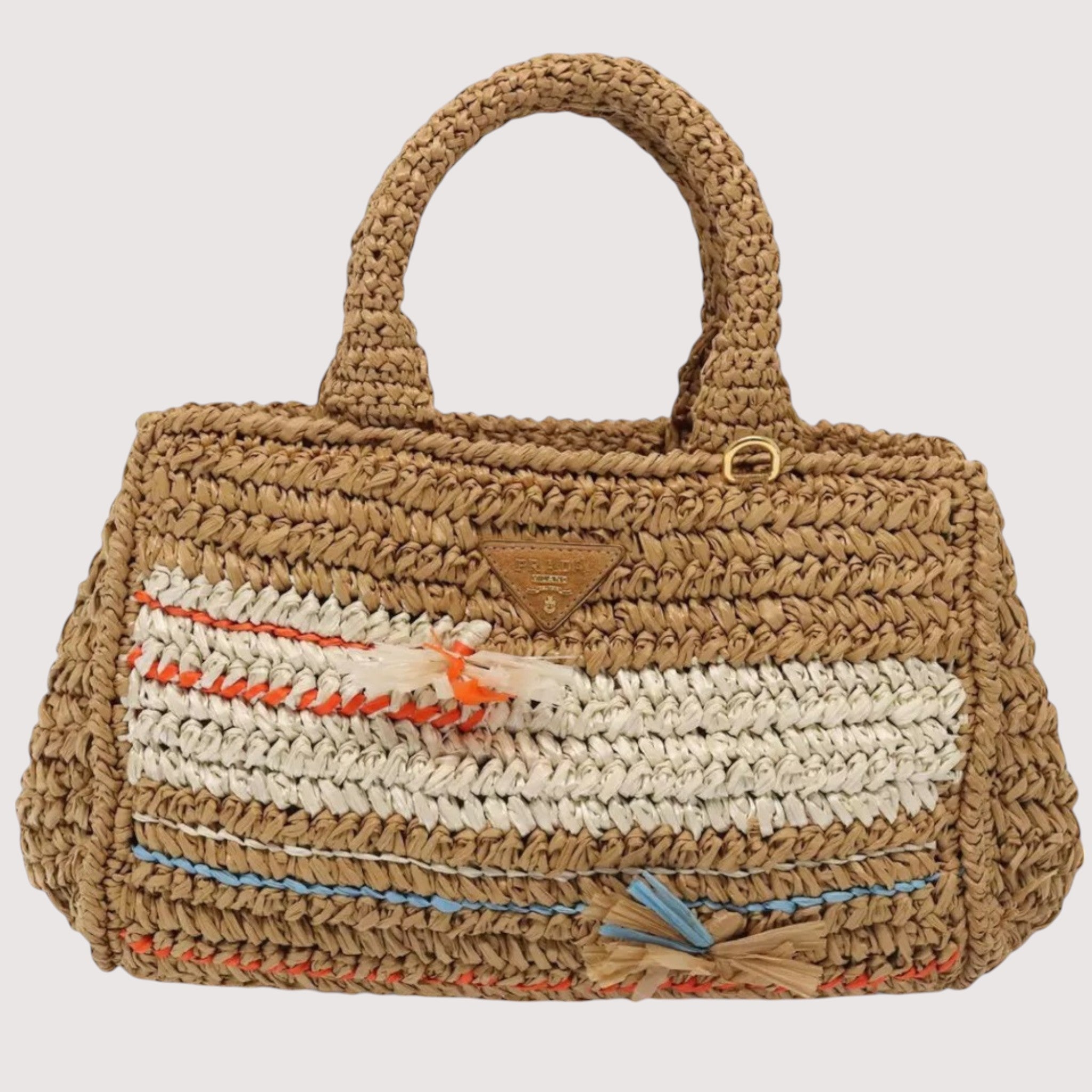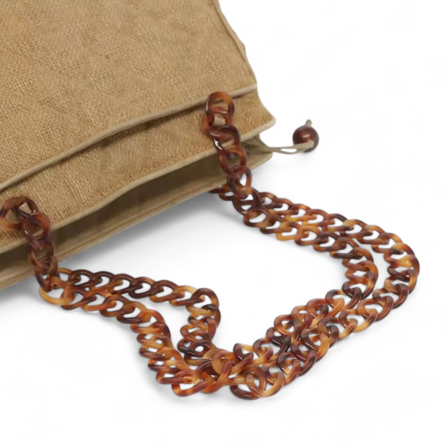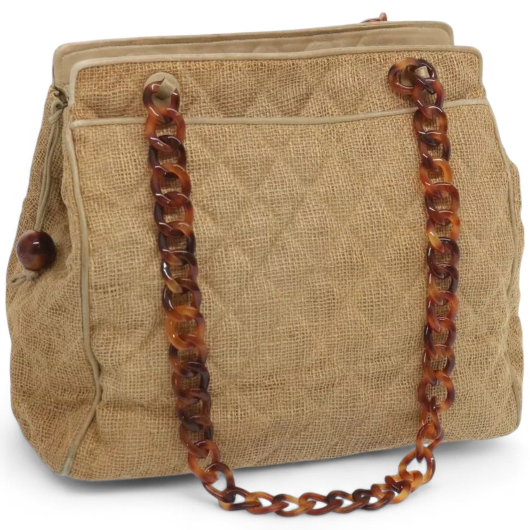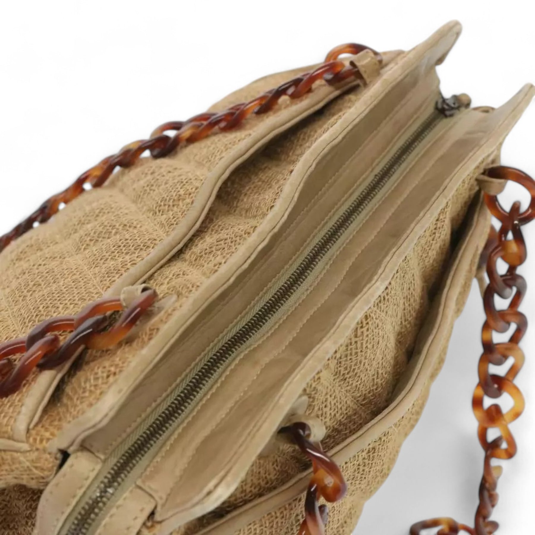 Chanel Matelasse Tote Bag Straw Brown CC Auth Quilted Chain Strap