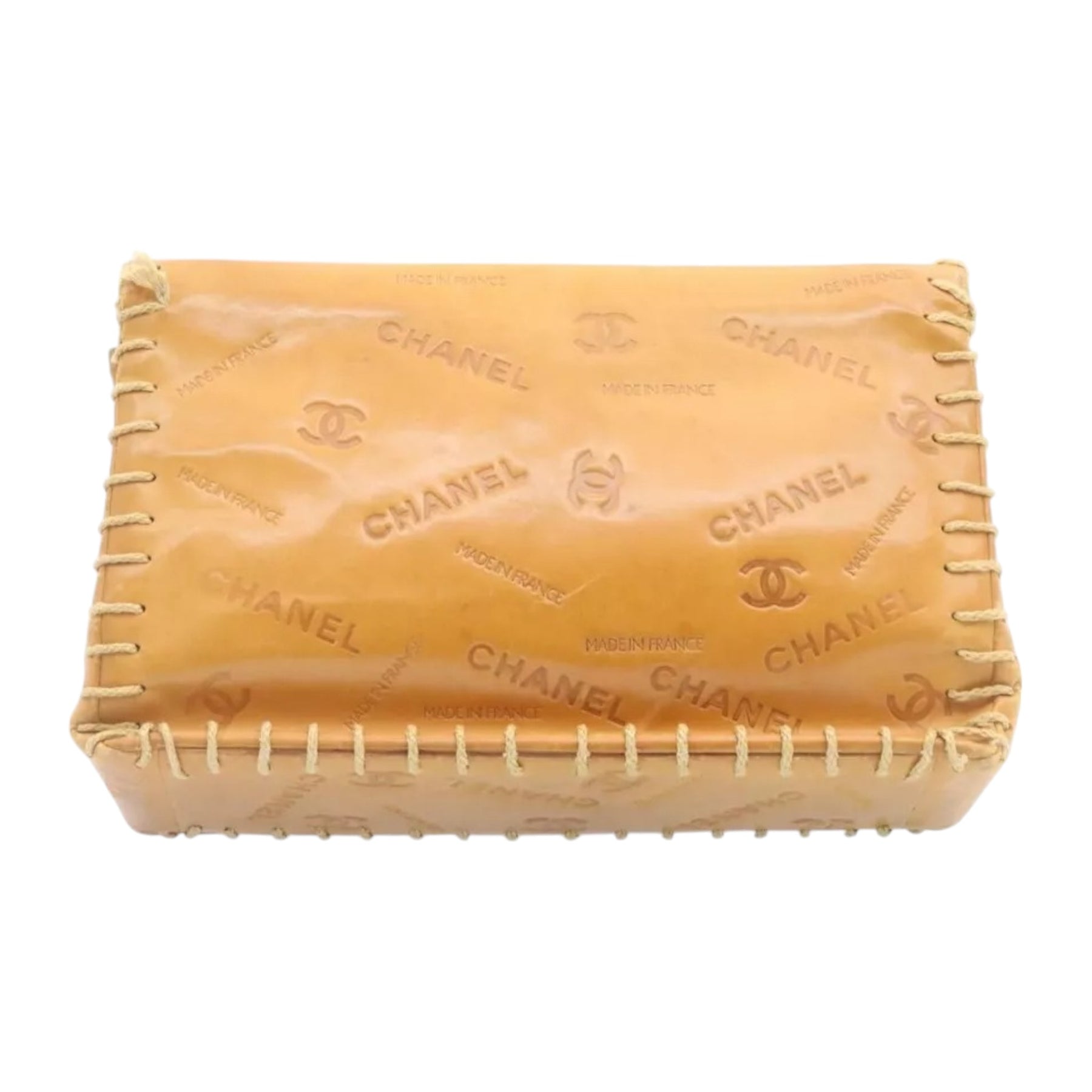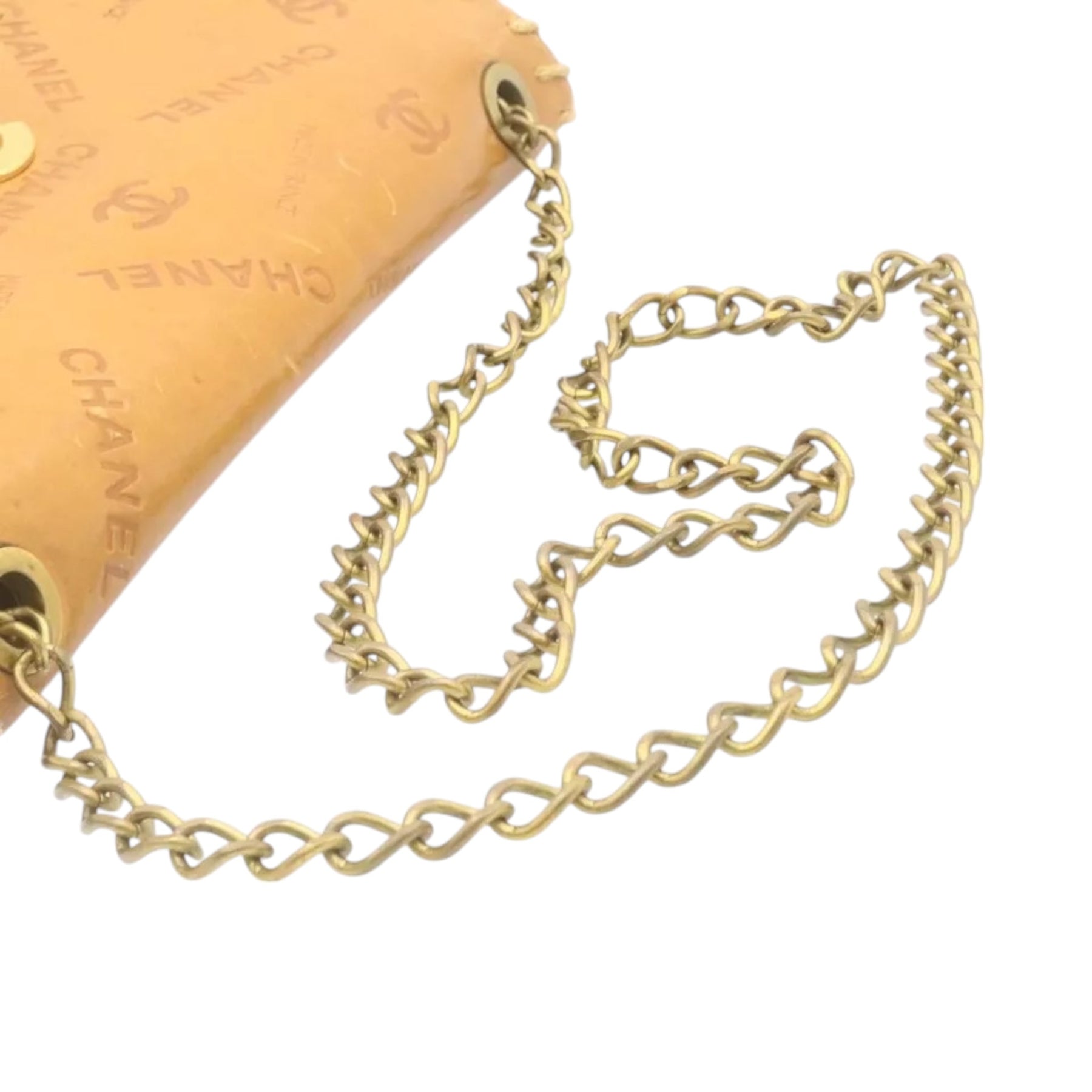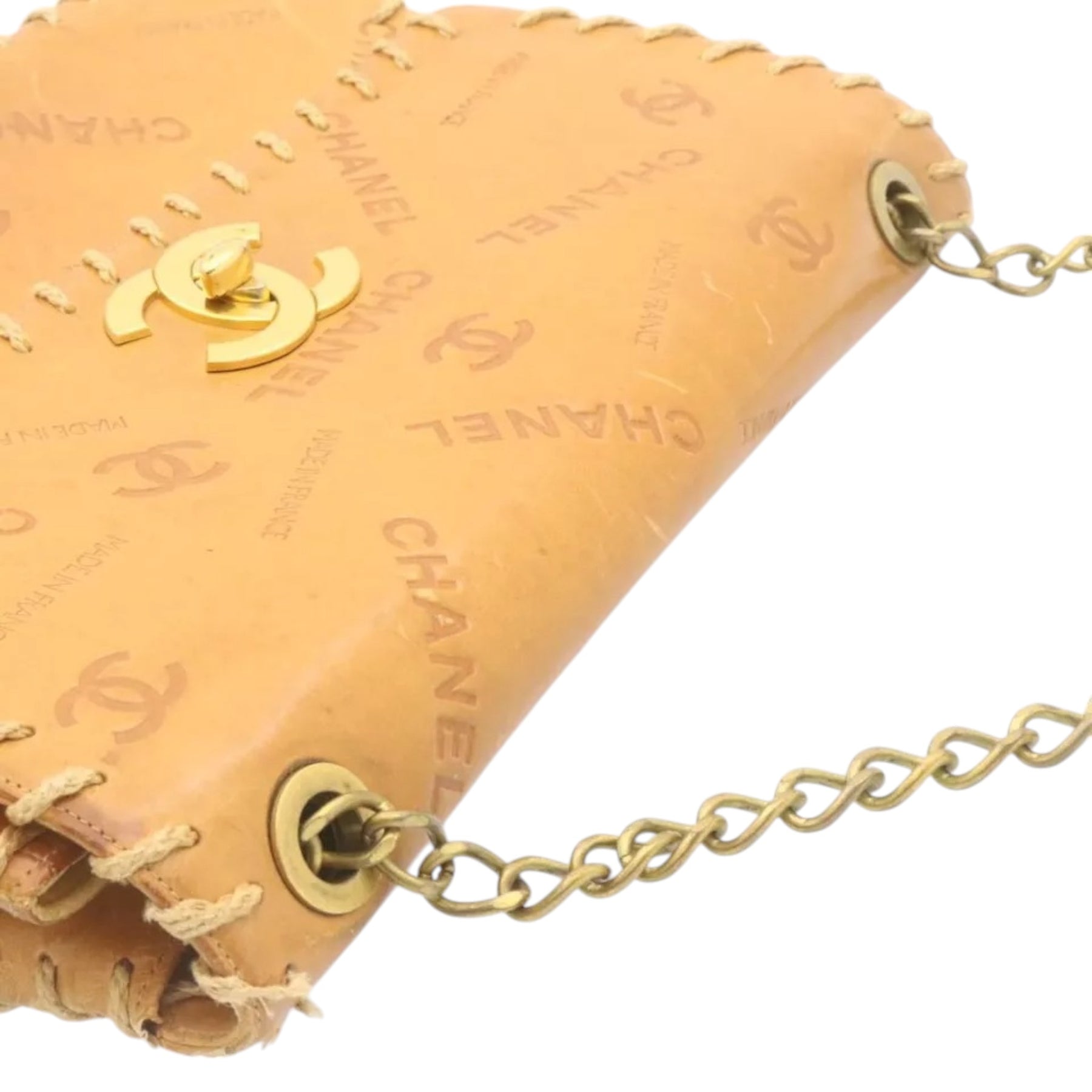 Chanel Raffia Chain Flap Shoulder Bag Beige Leather