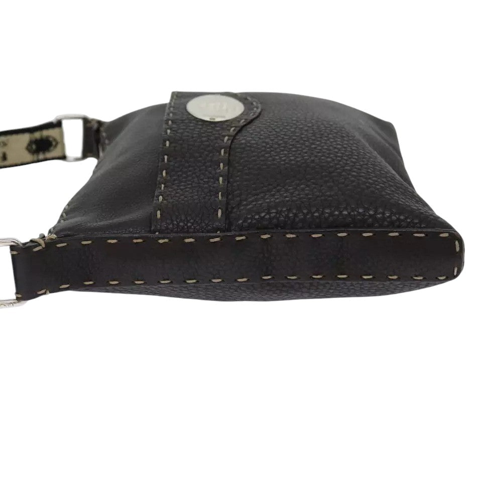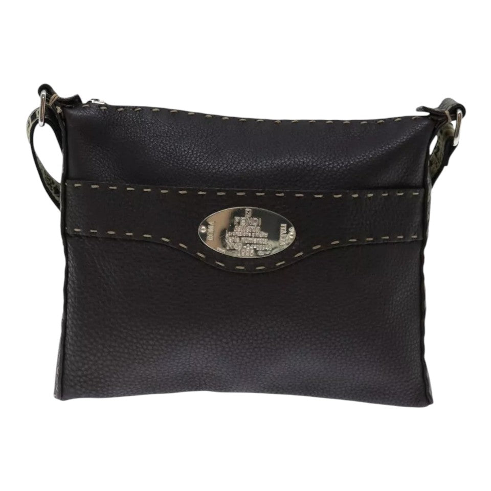 Fendi Selleria Vintage Shoulder Crossbody Bag Leather Brown Women Made in Italy