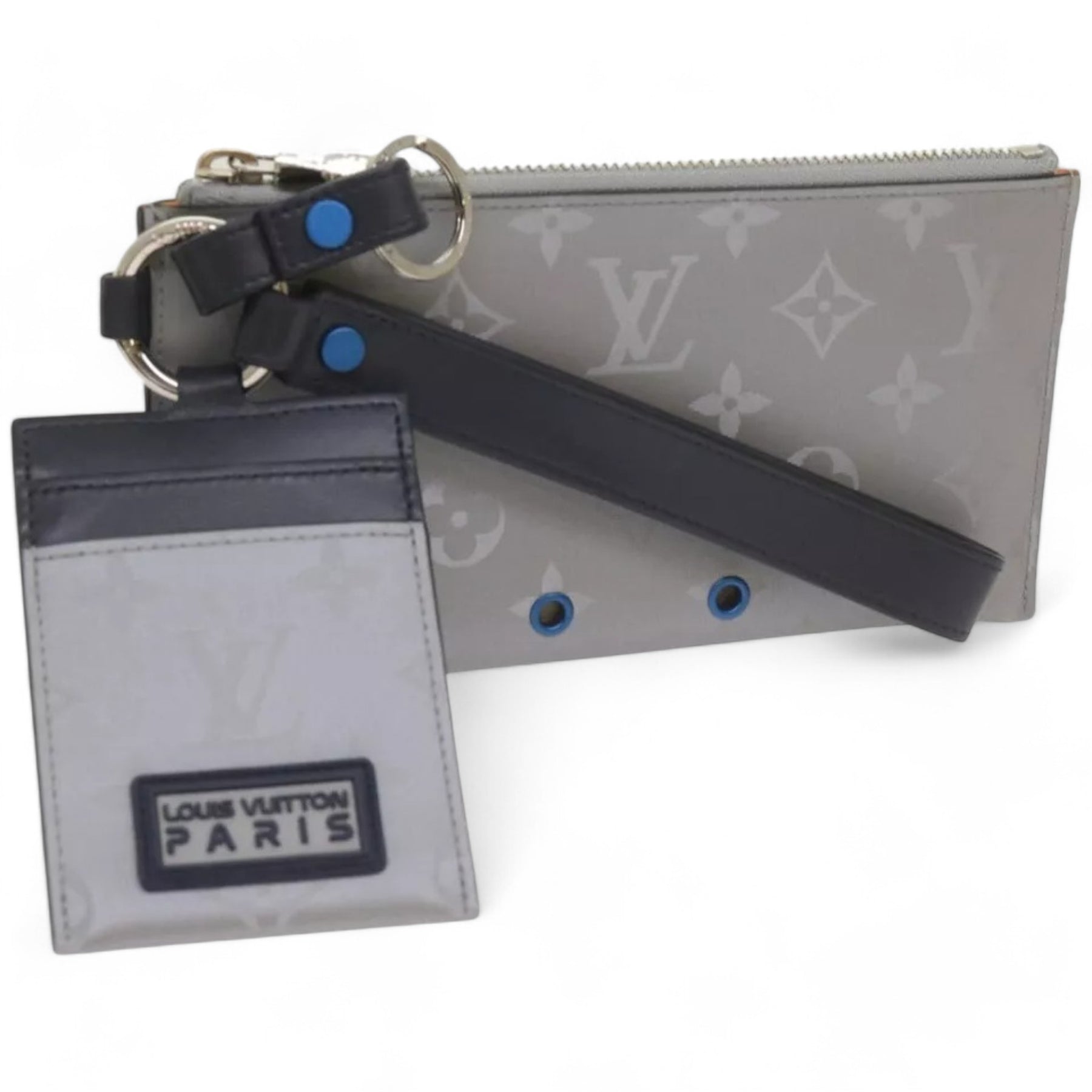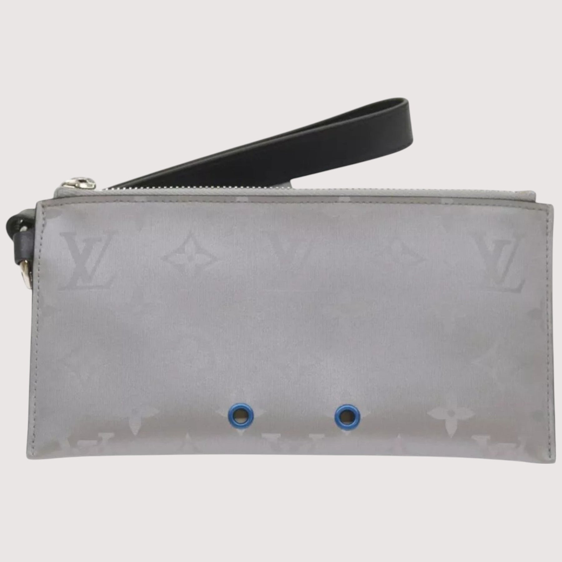 Louis Vuitton Monogram Satellite Alpha Pouch Silver Unisex Handbag with Card Holder