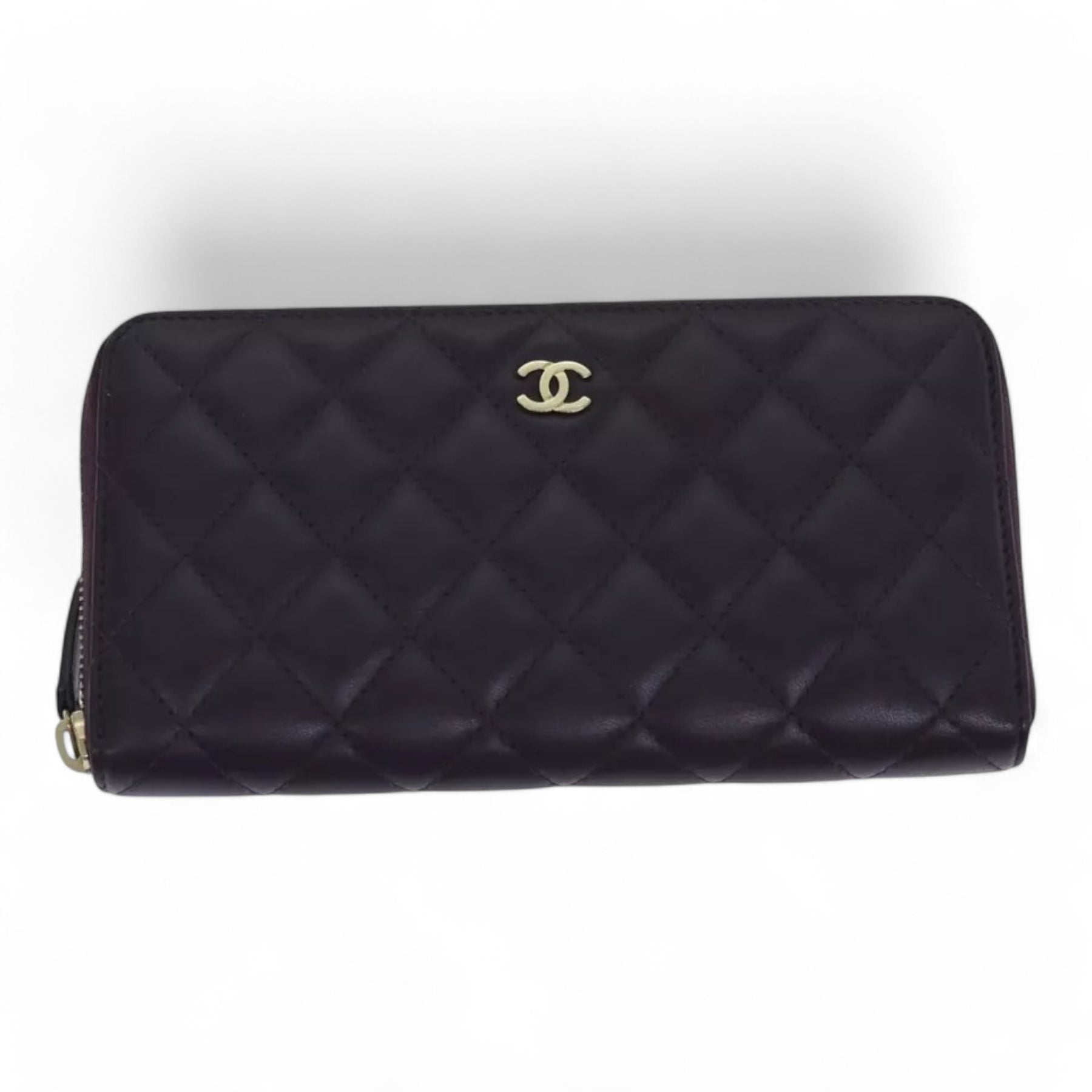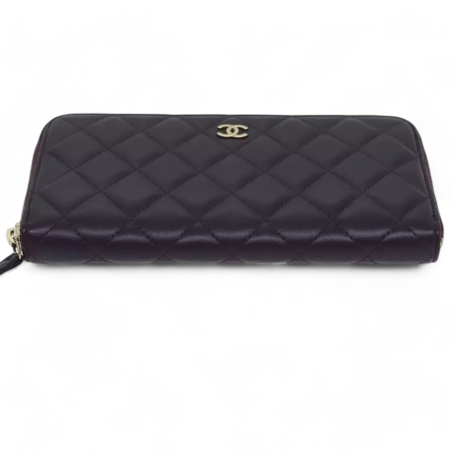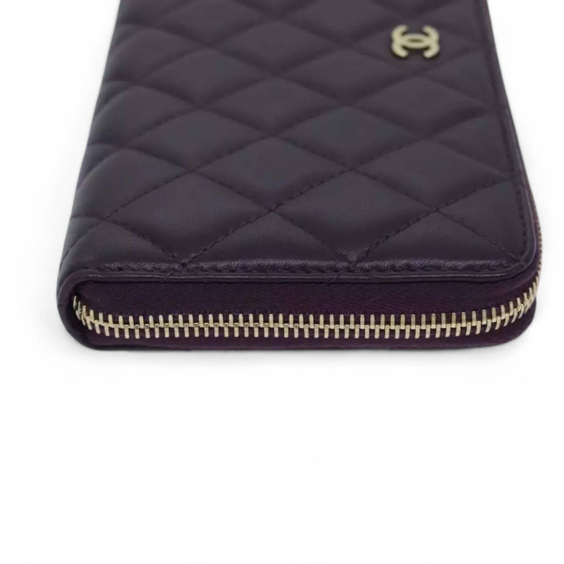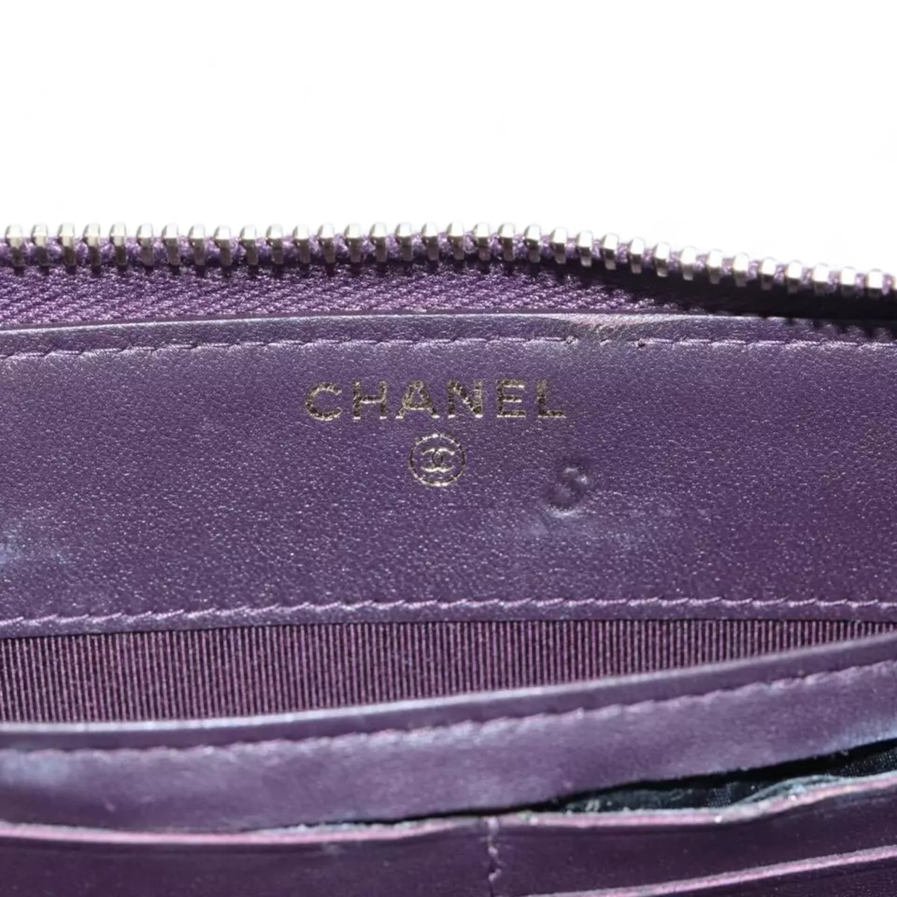 Chanel Matelasse Long Wallet Lamb Skin Purple Gold CC Womens Wallet