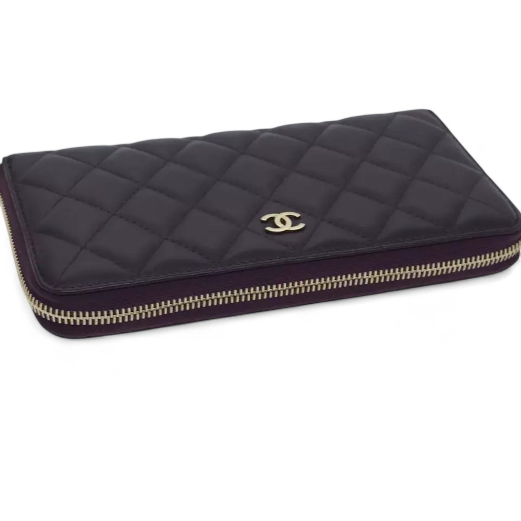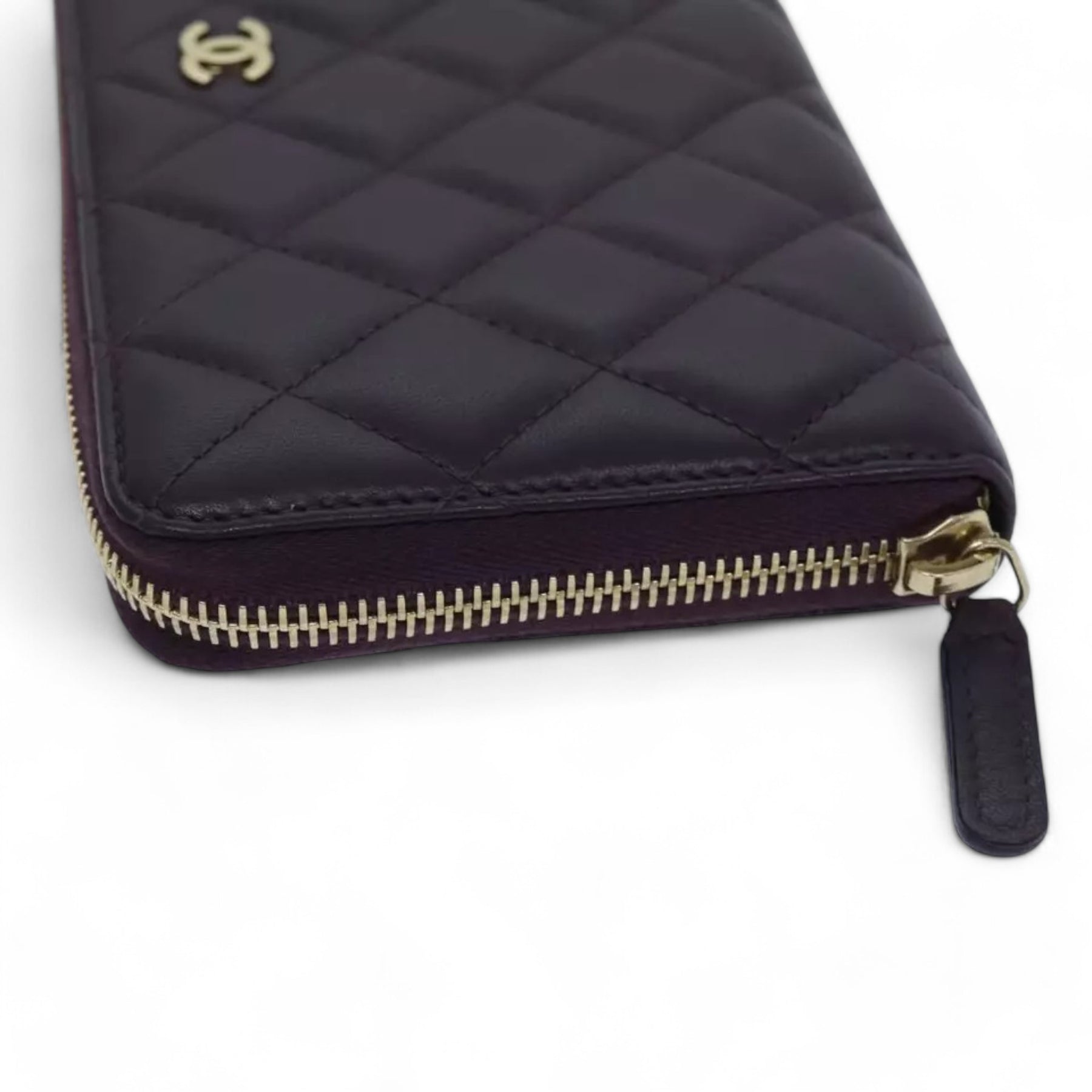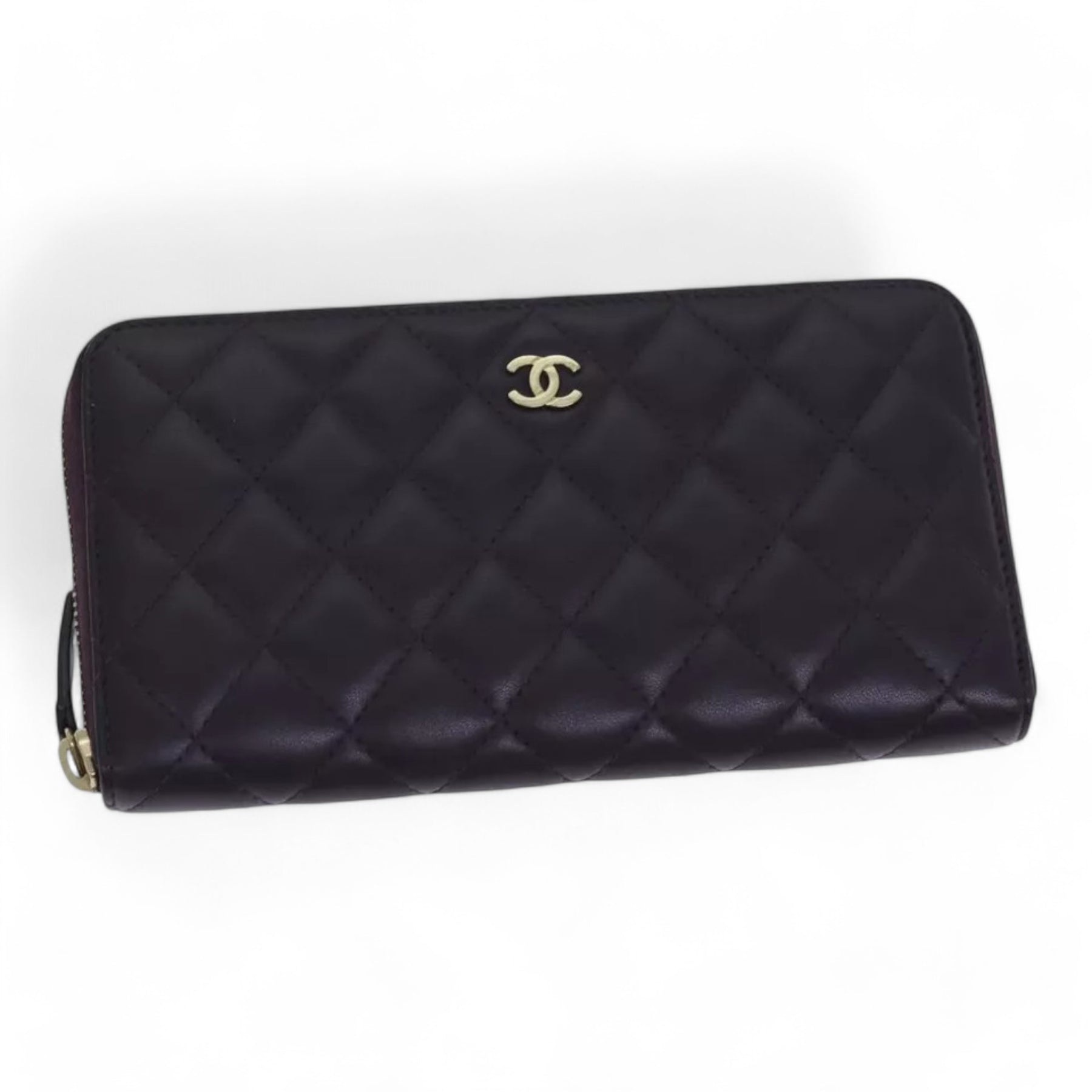 Chanel Matelasse Long Wallet Lamb Skin Purple Gold CC Womens Wallet