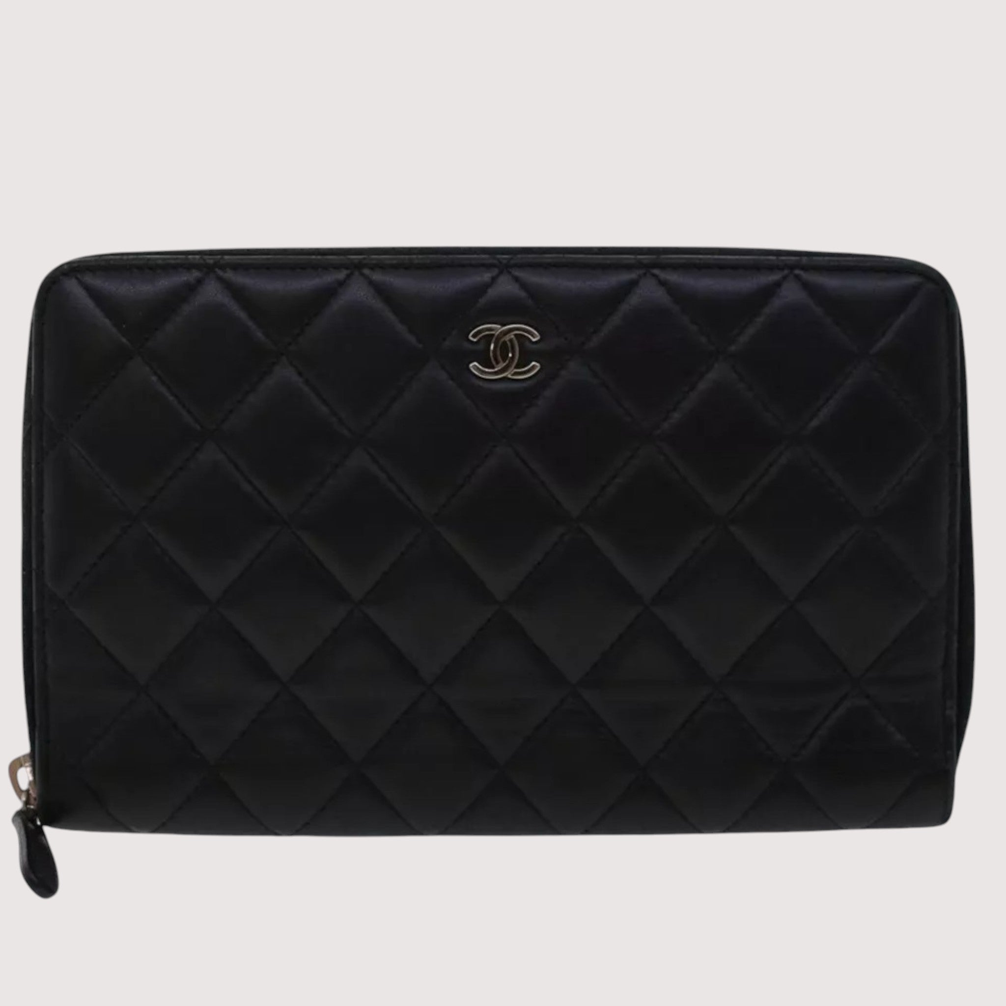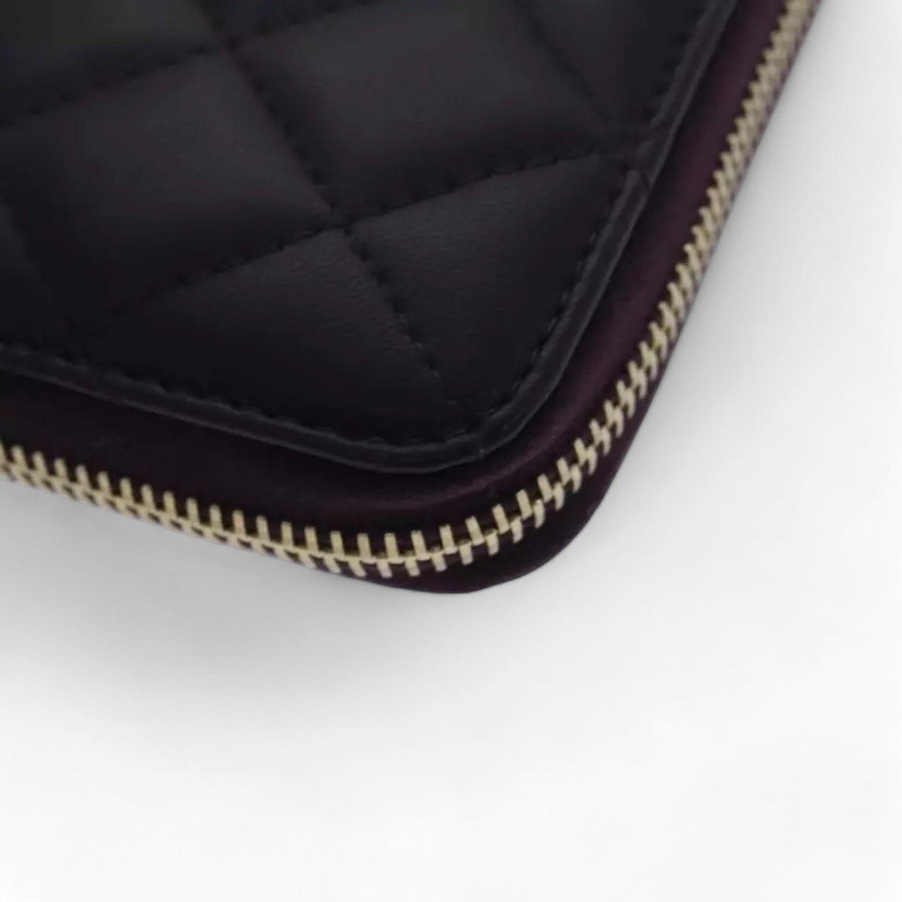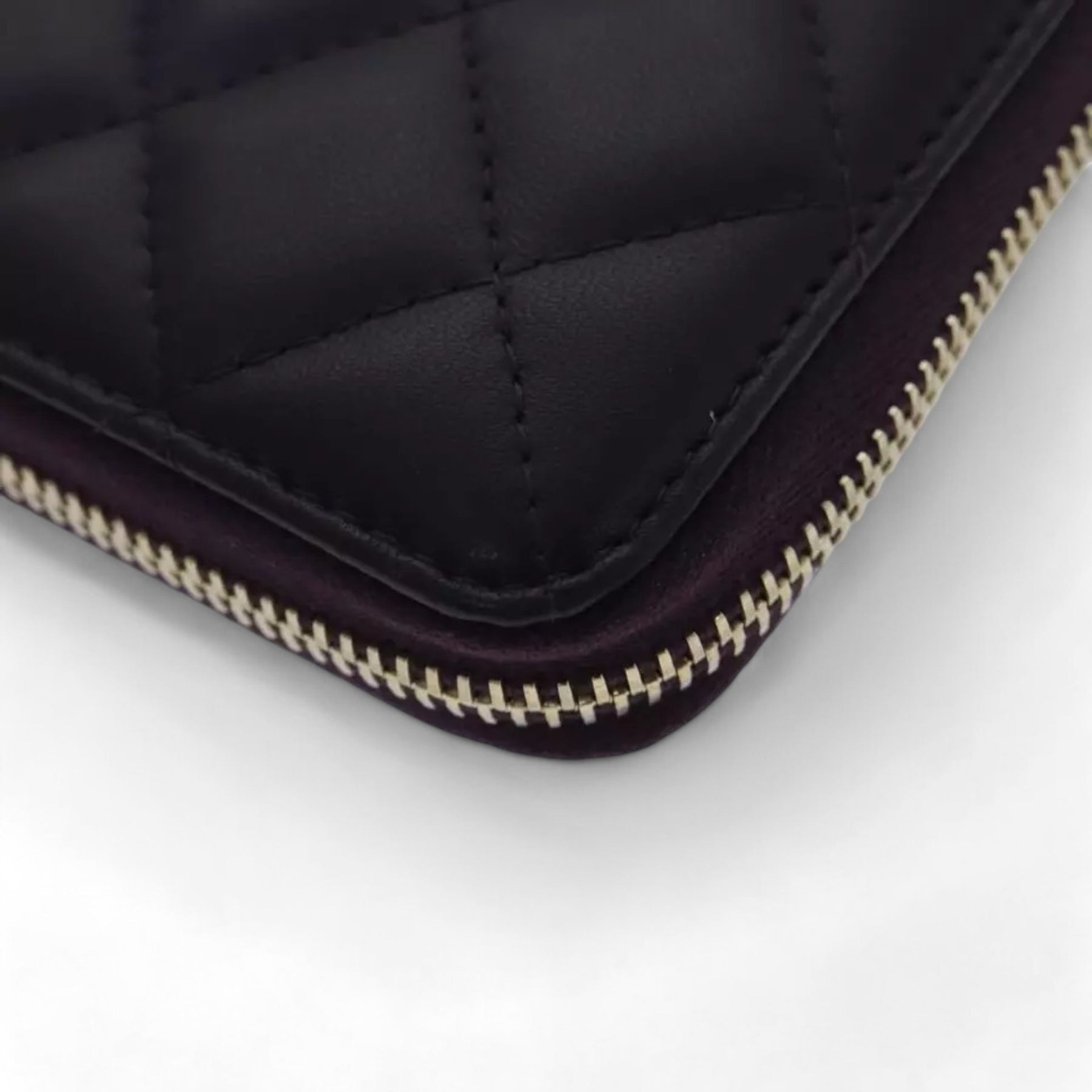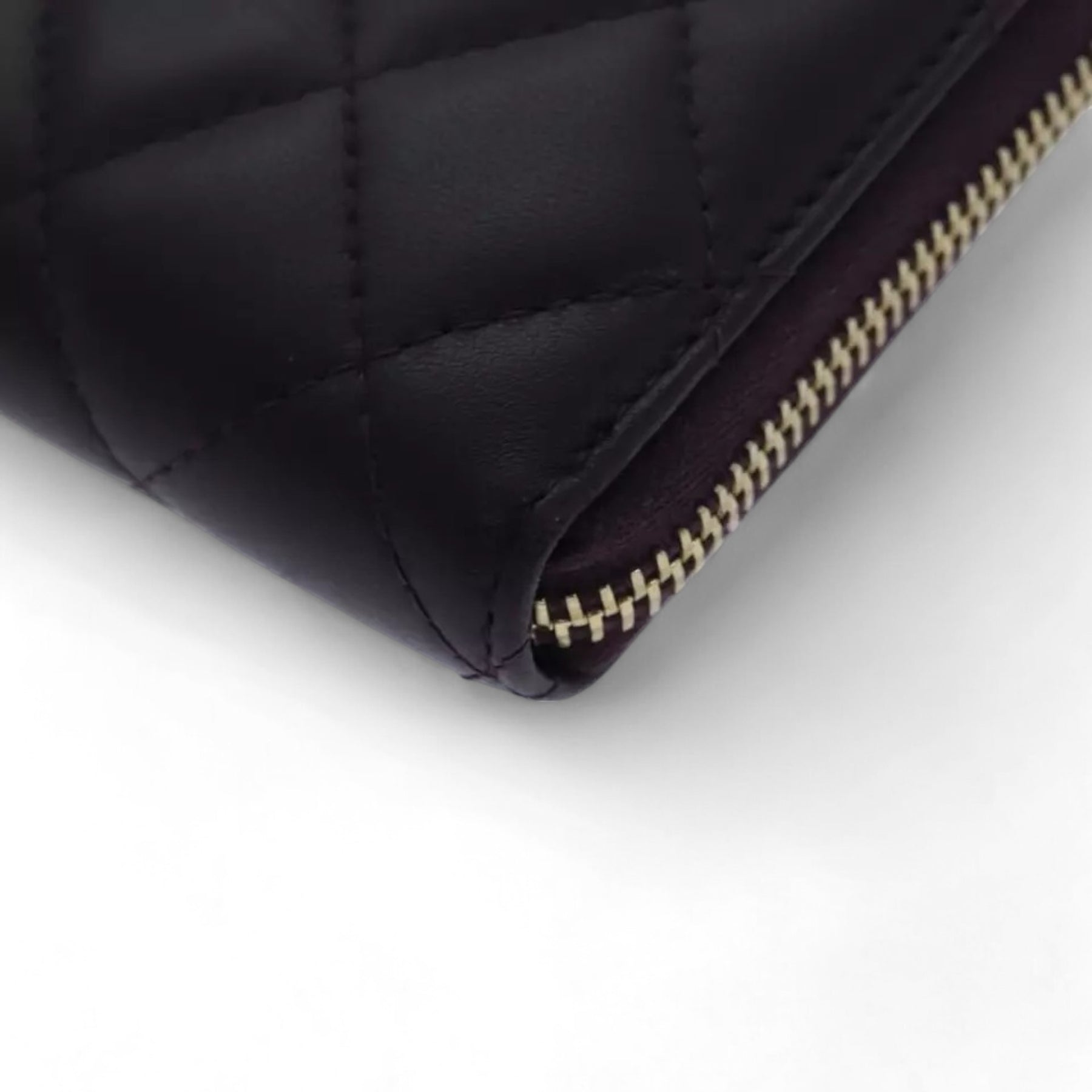 Chanel Matelasse Long Wallet Lamb Skin Purple Gold CC Womens Wallet