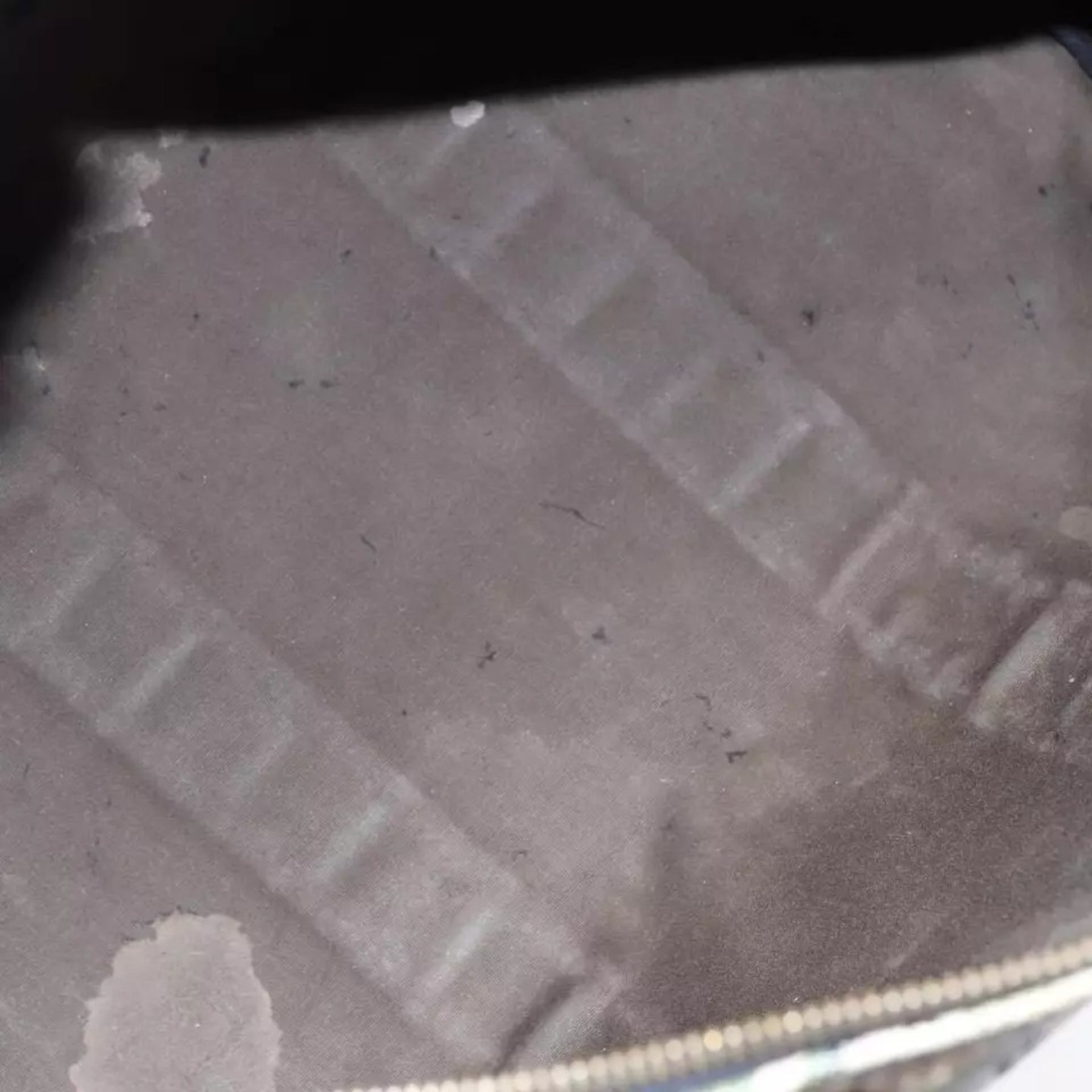 Condition - Rubbing, slight deformation, stain, and scratches on surface. Leather sun burn, rubbing, and stain. Handle sun burn, rubbing, and stain. Metal fittings scratches and painting off. Inside and pocket rubbing and slight stain. Corner rubbing. Storage smell.