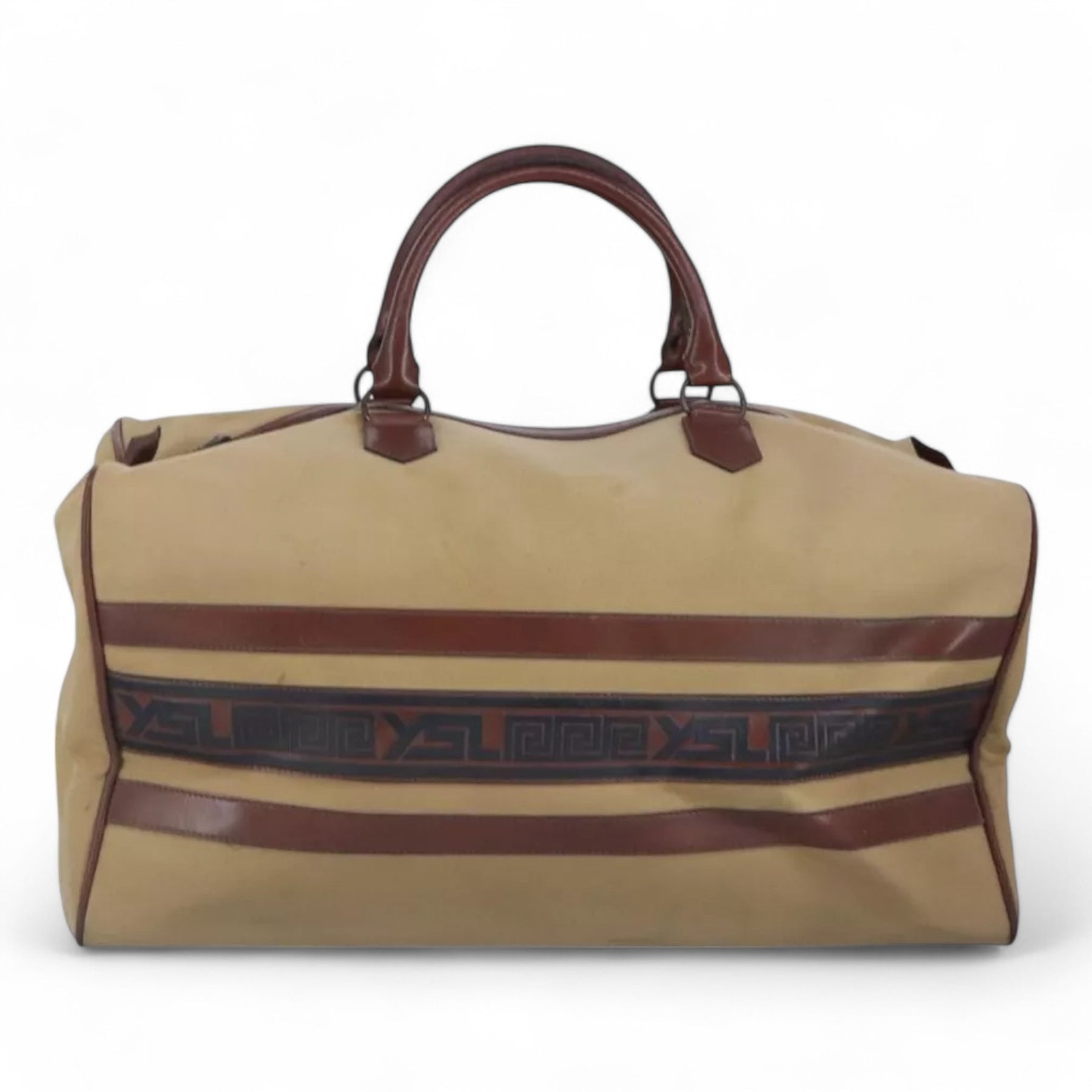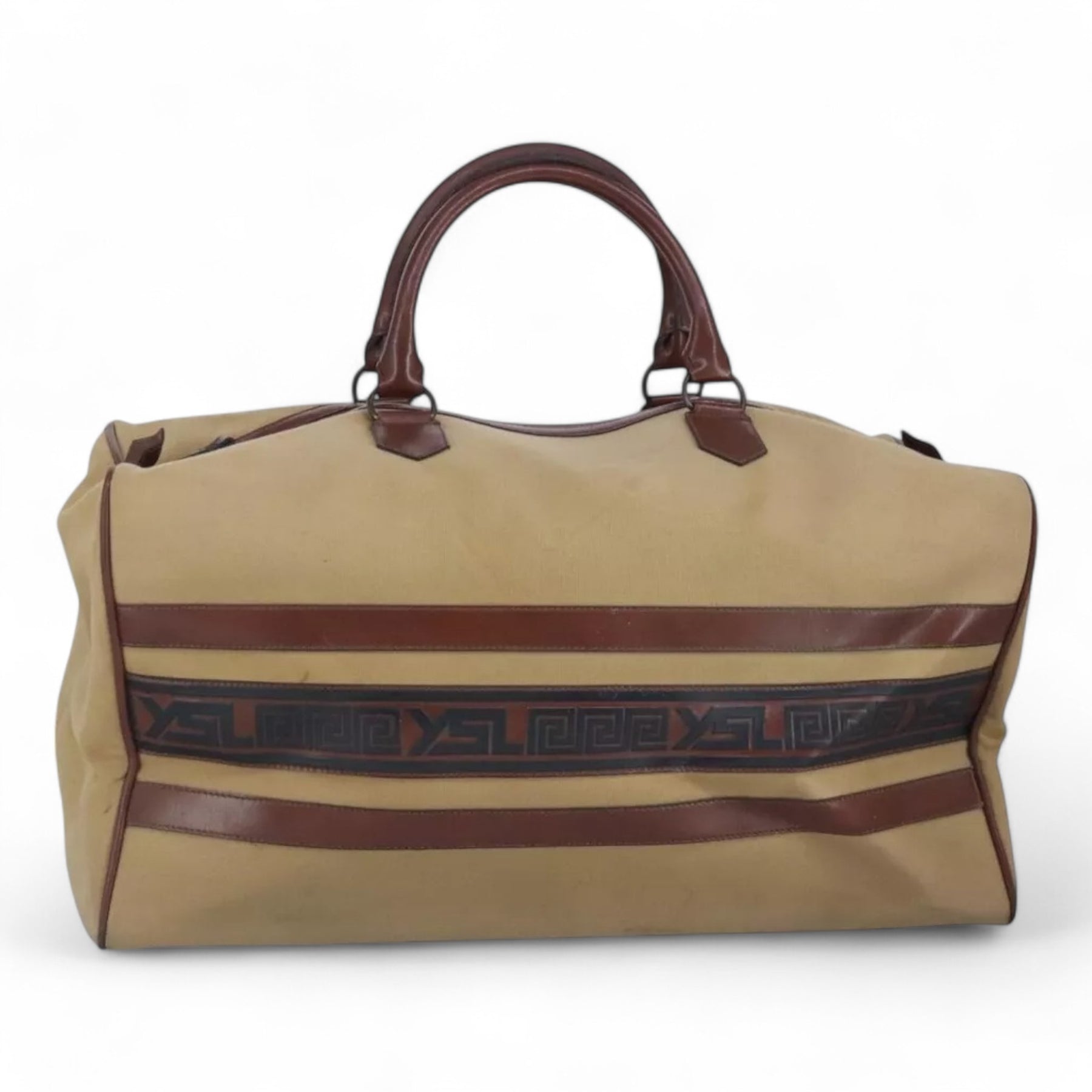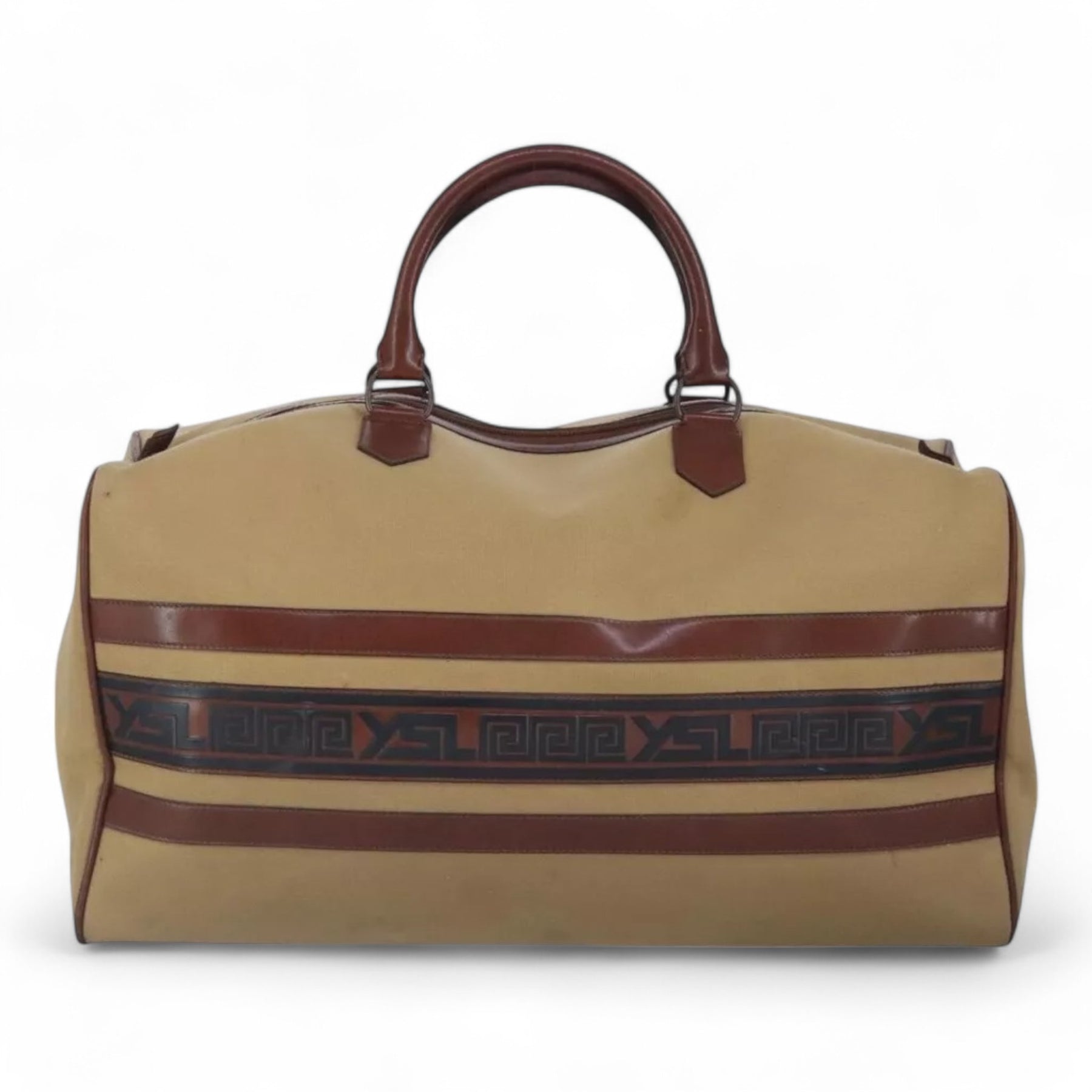 Saint Laurent Boston Duffle Bag Canvas Leather Brown Vintage YSL