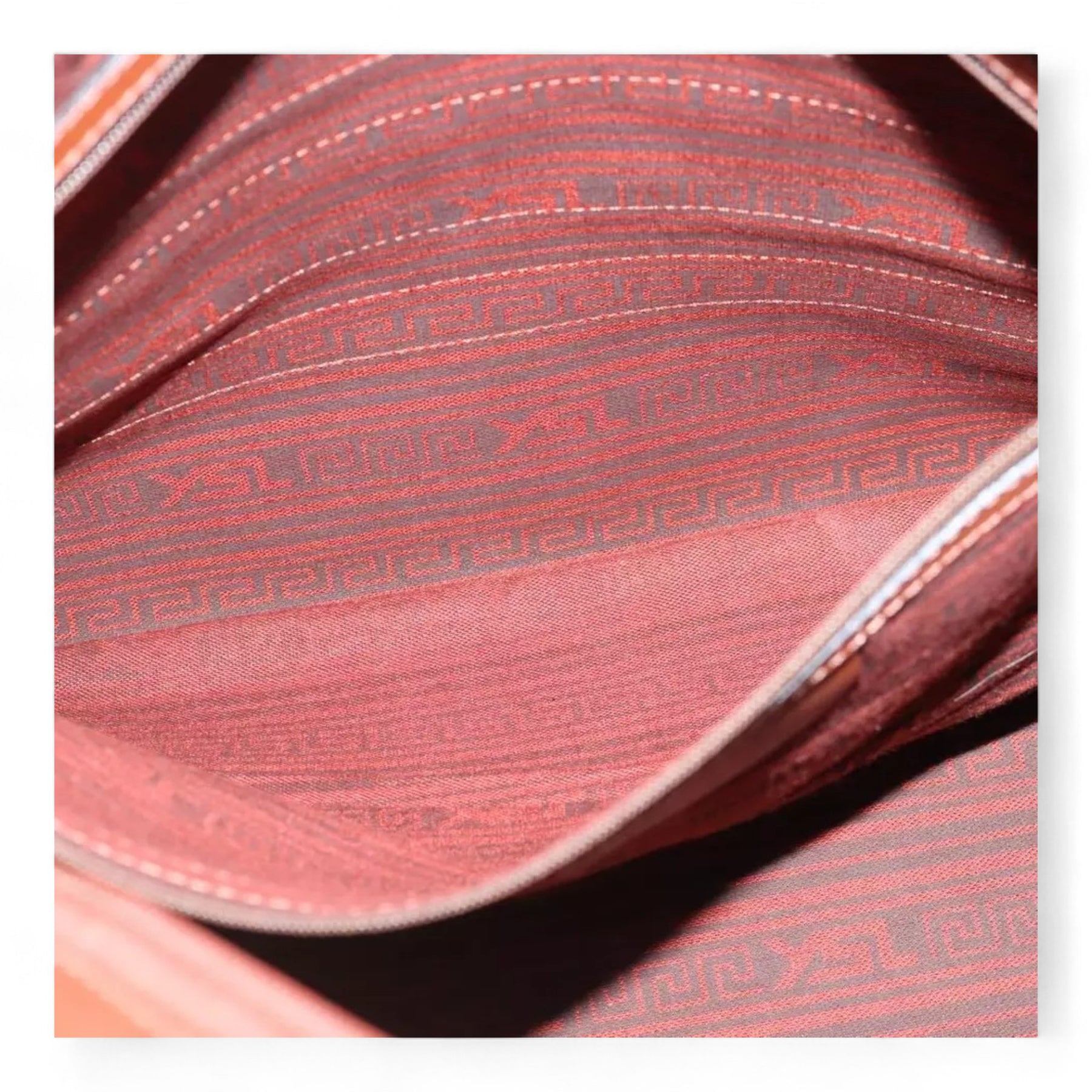 Condition - Out of shape, rubbing, stains, scratches, slight fluff, thread fray, dirt on handle, metal fittings with scratches and rust, storage smell, signs of repair on corners.
