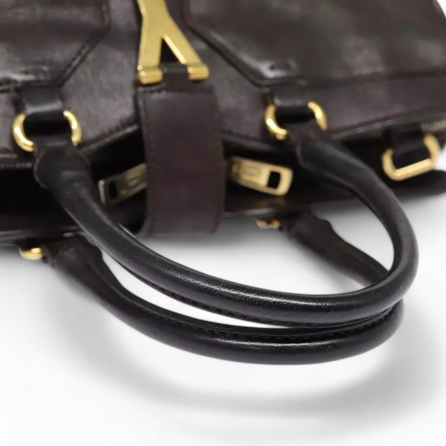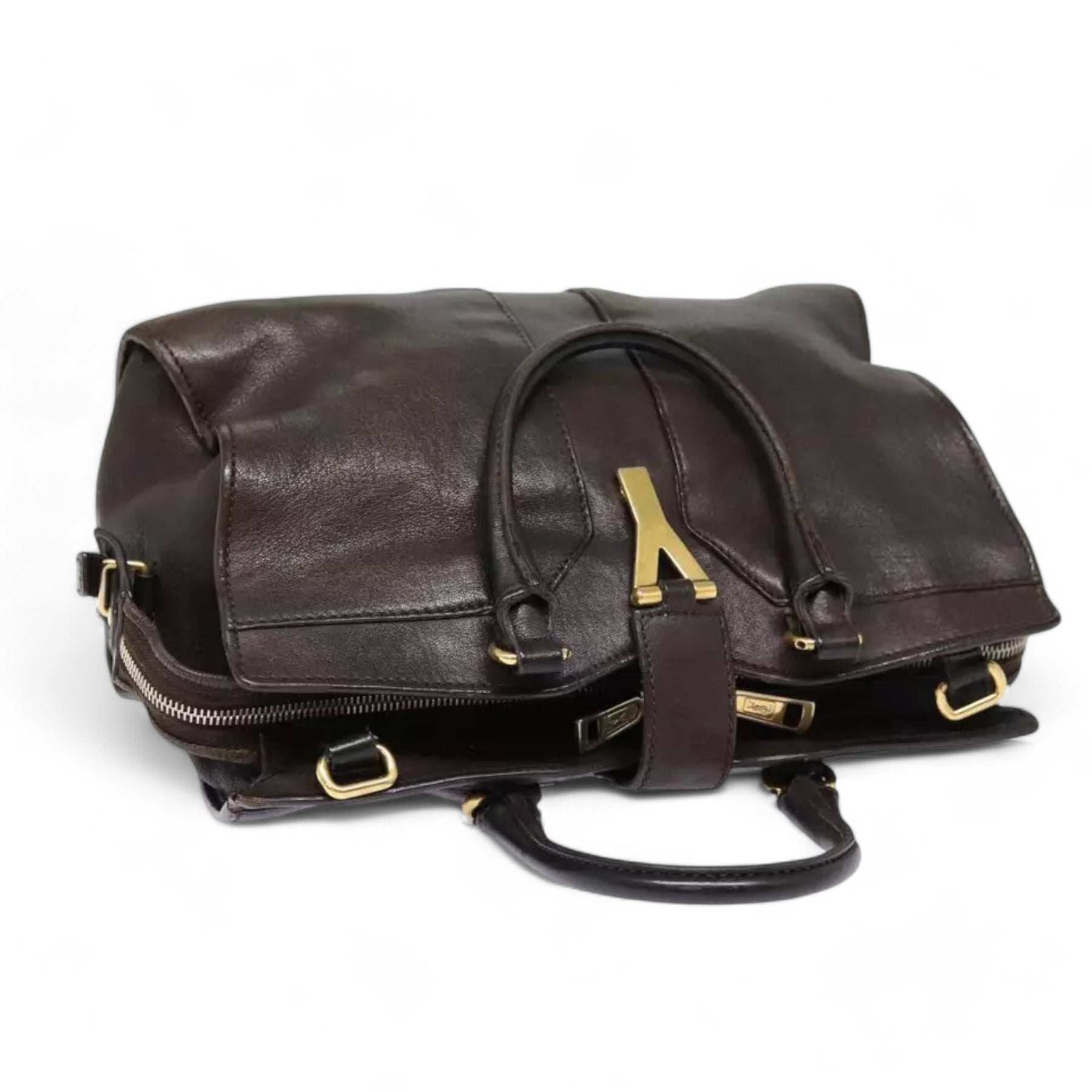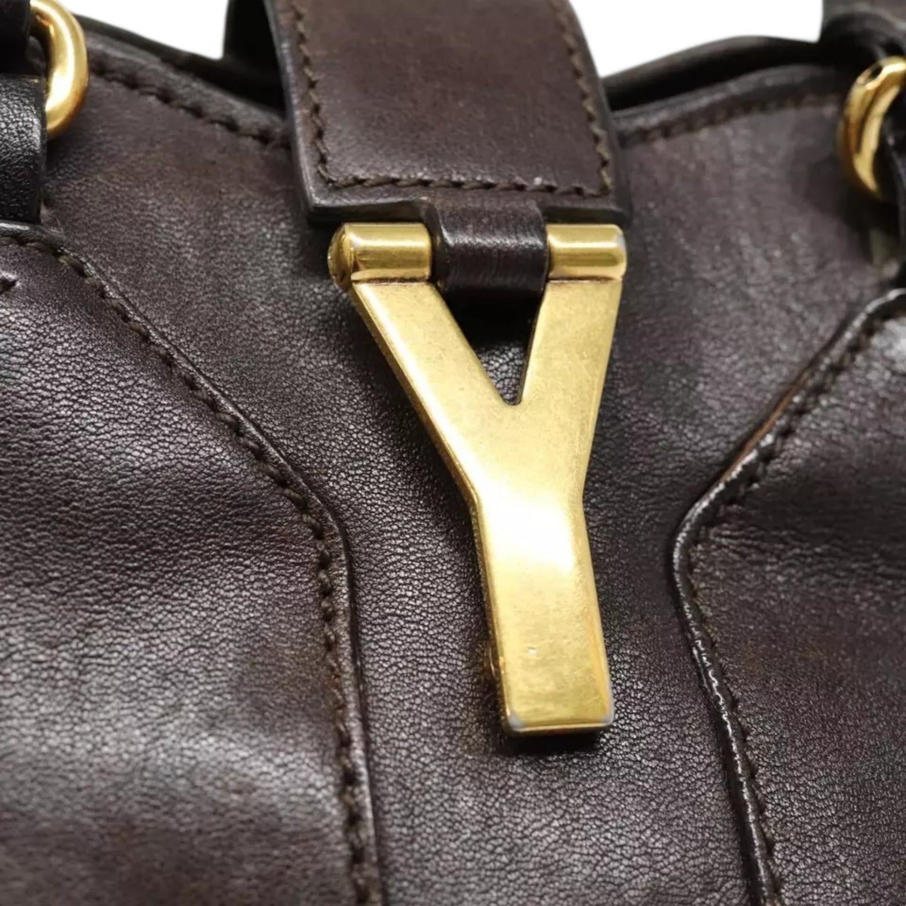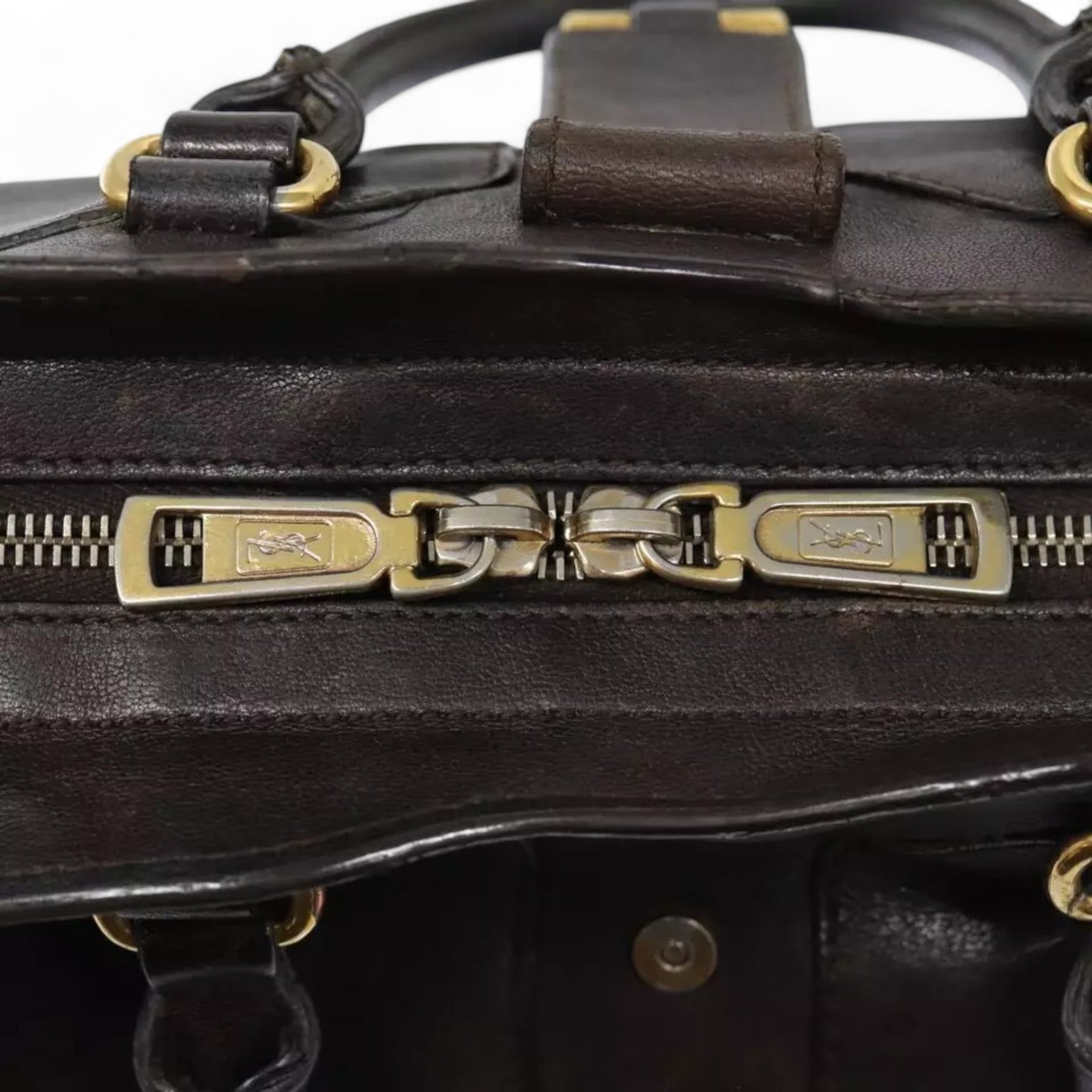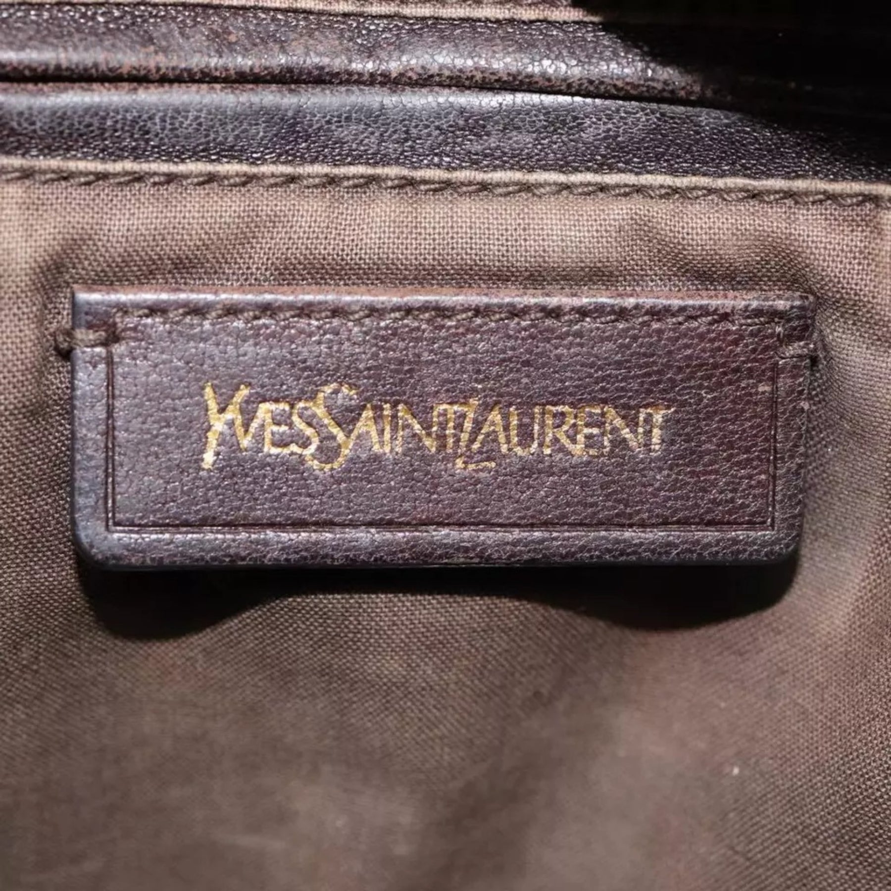 Saint Laurent YSL Leather Handbag 2way Brown Gold Women's