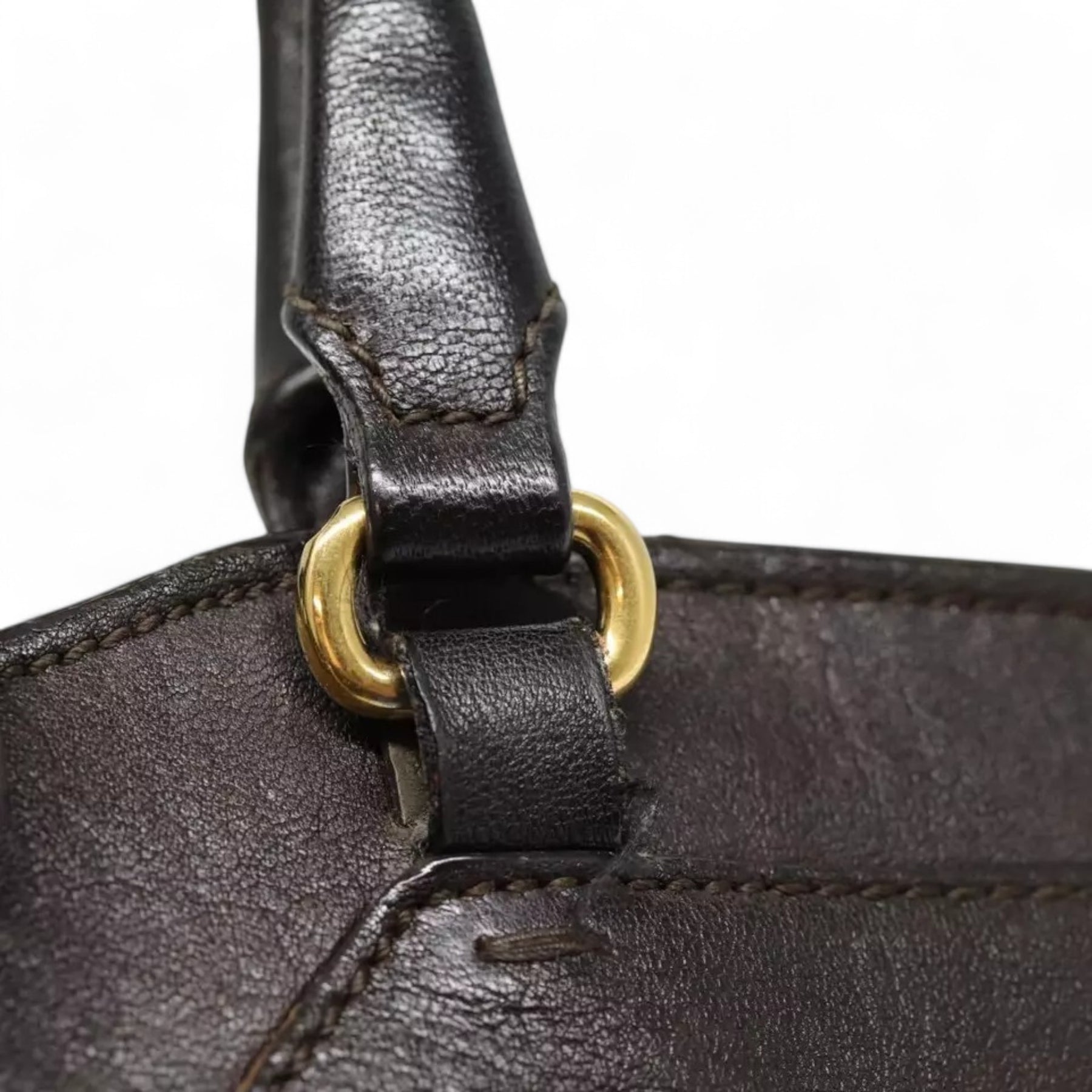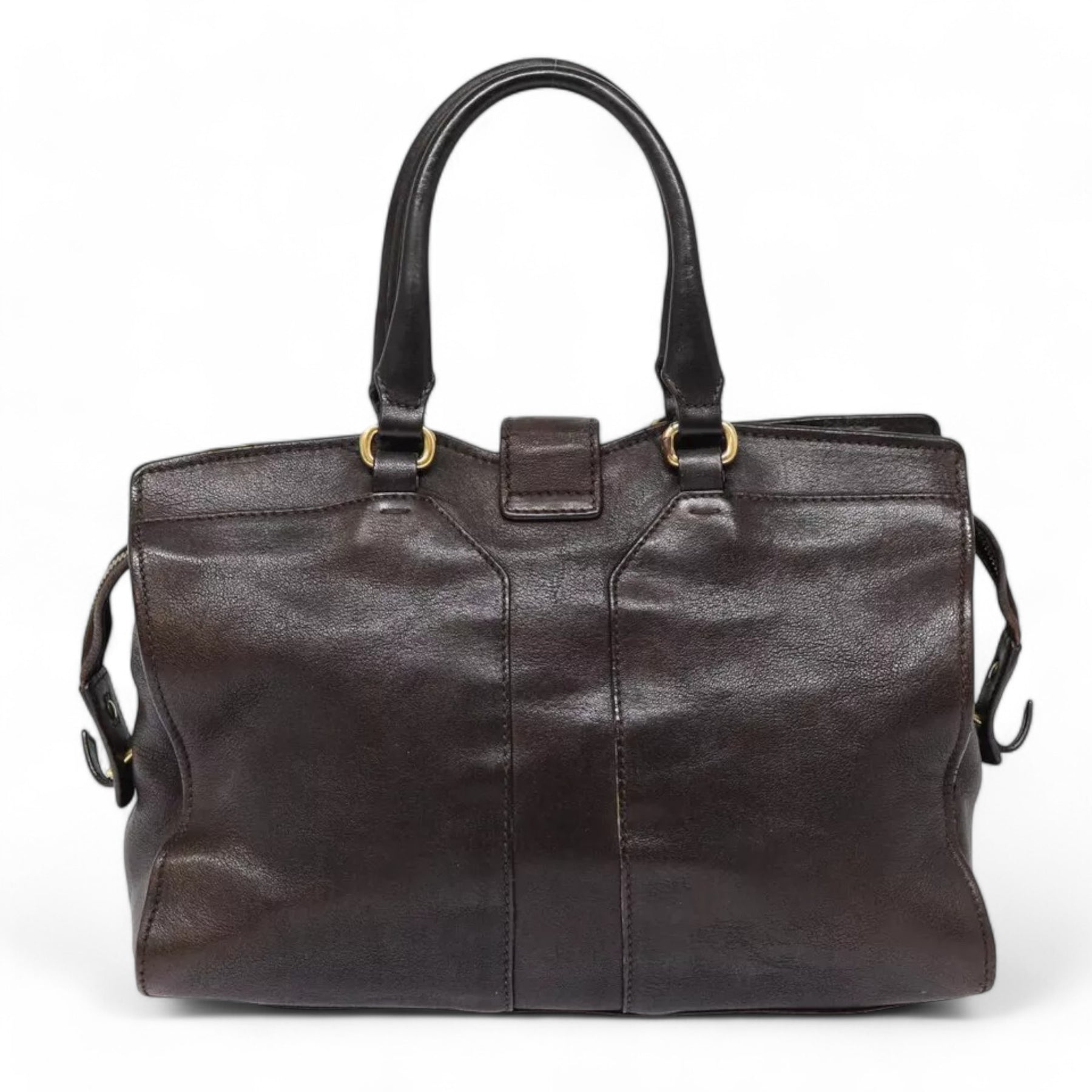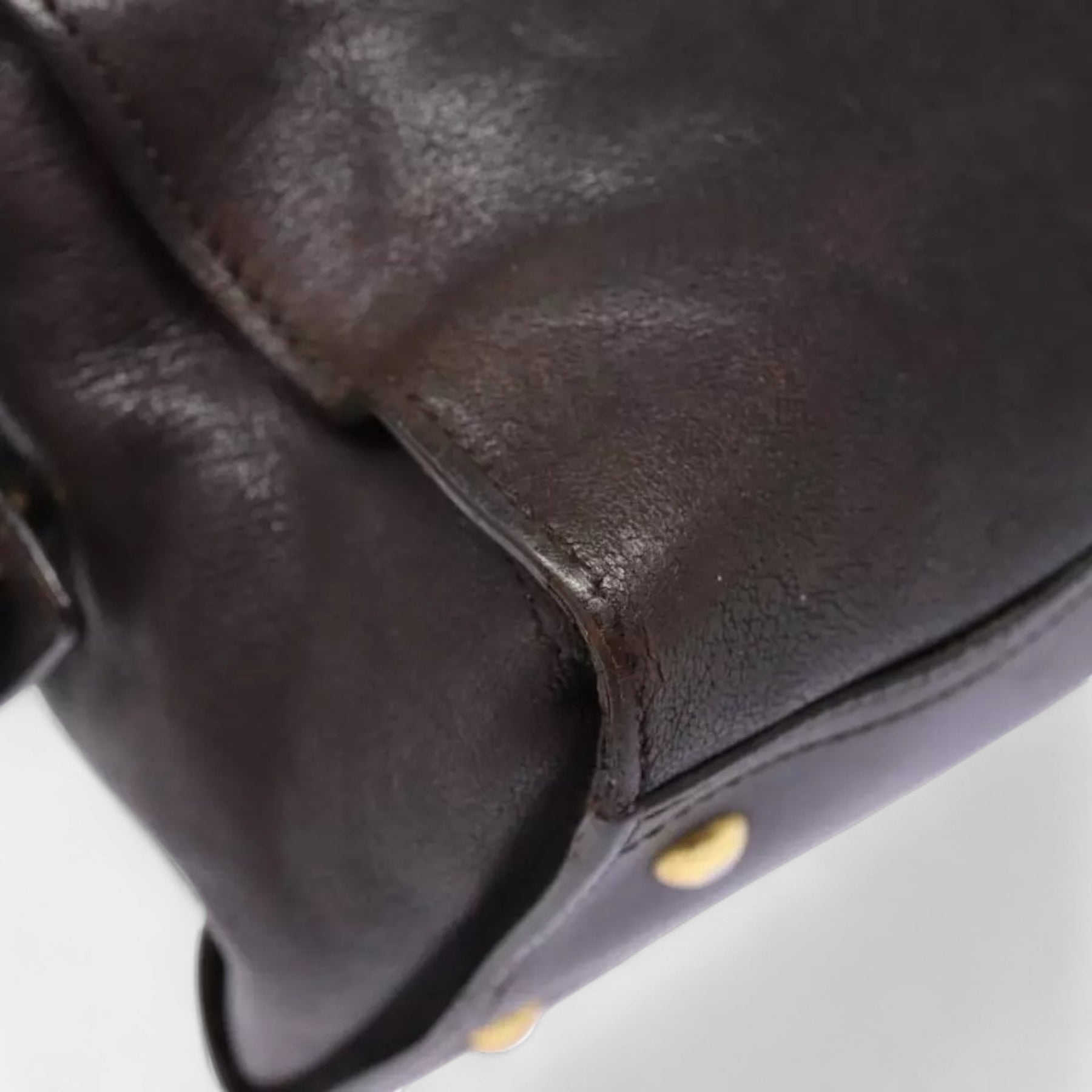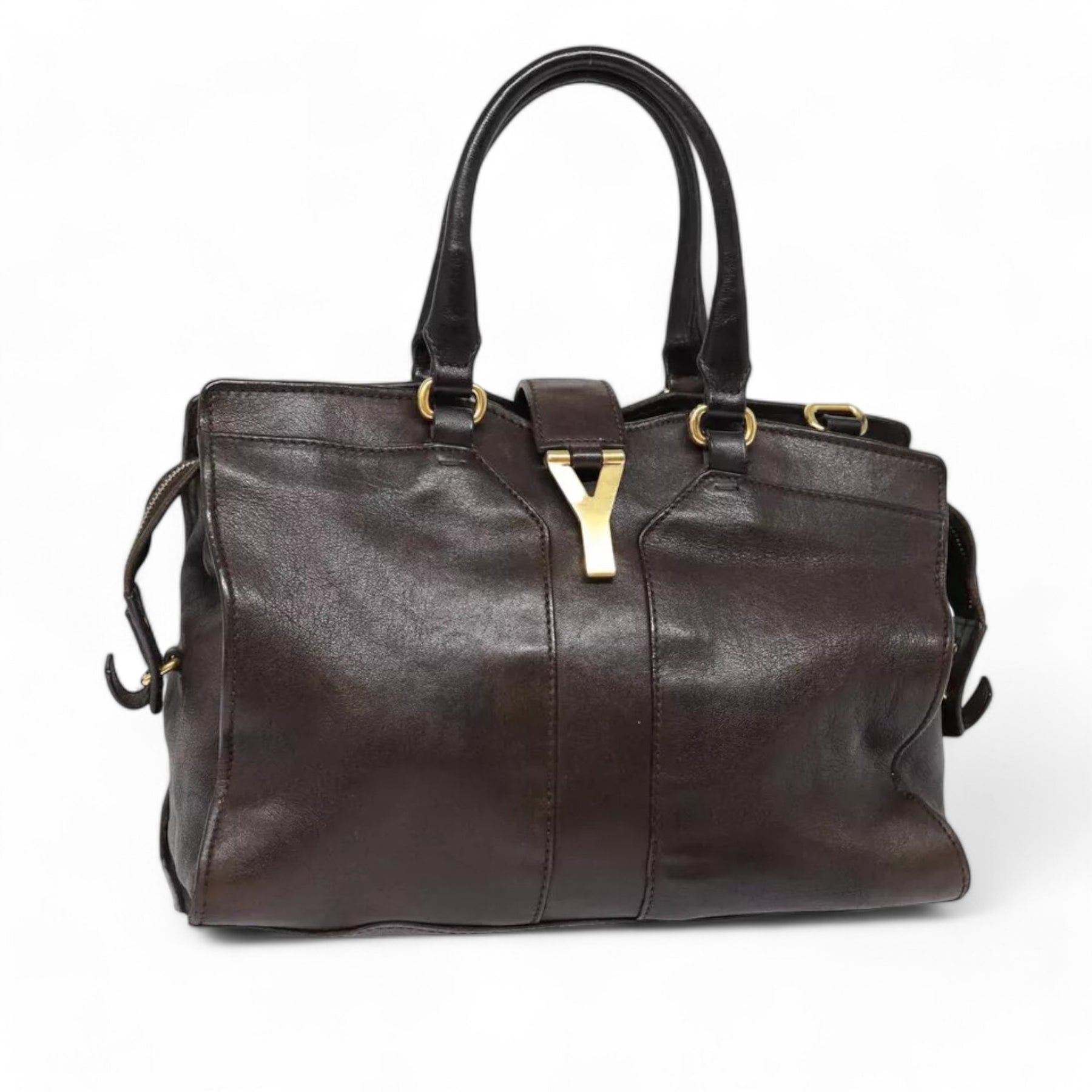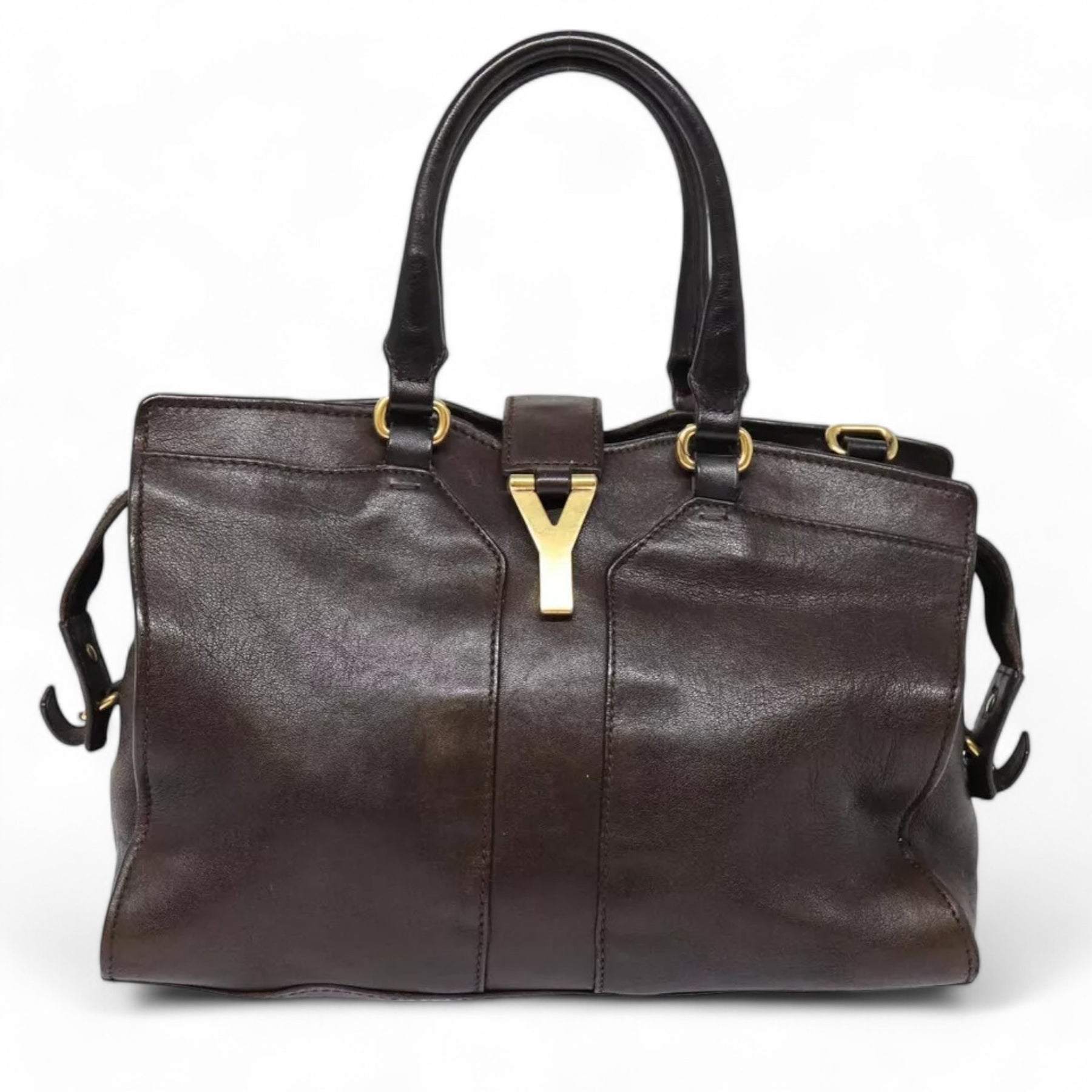Saint Laurent YSL Leather Handbag 2way Brown Gold Women's