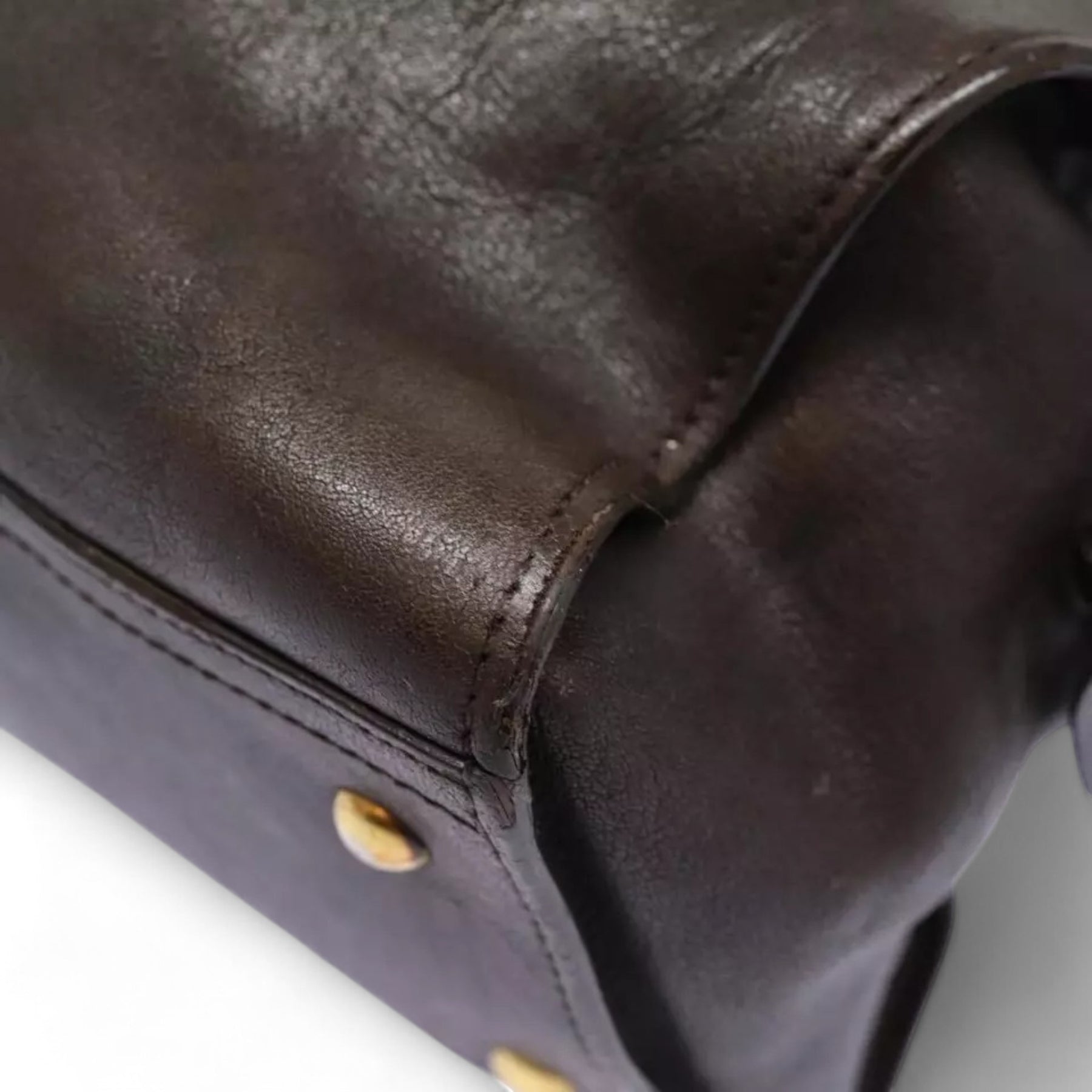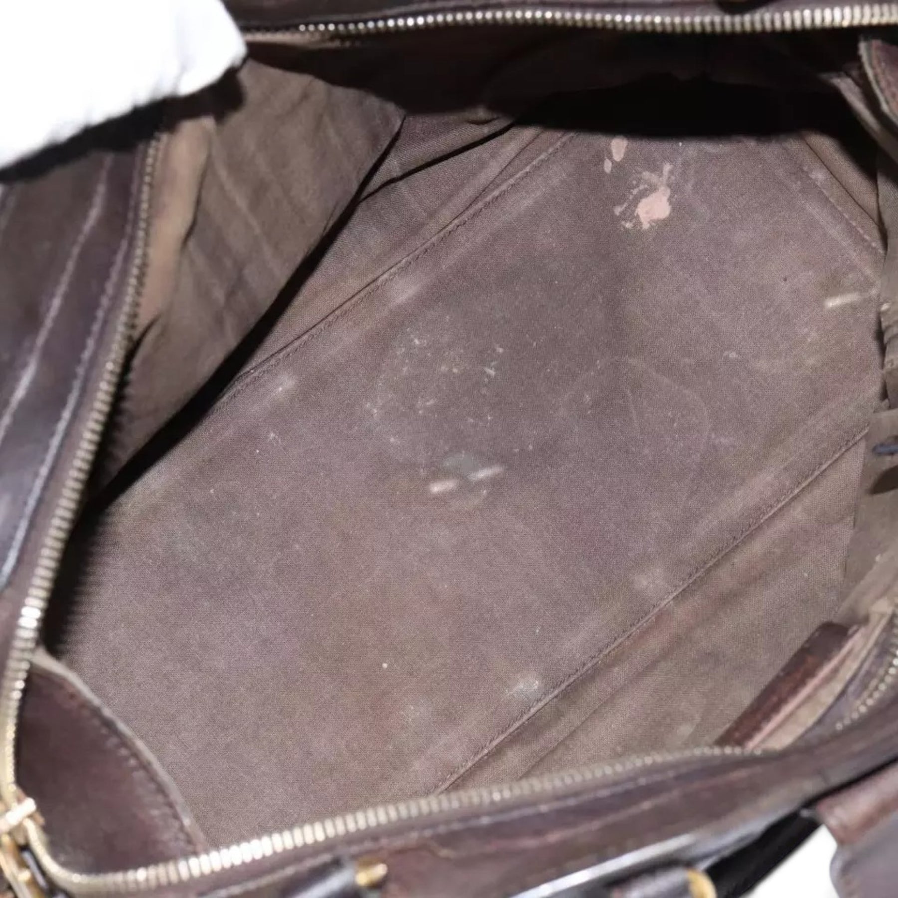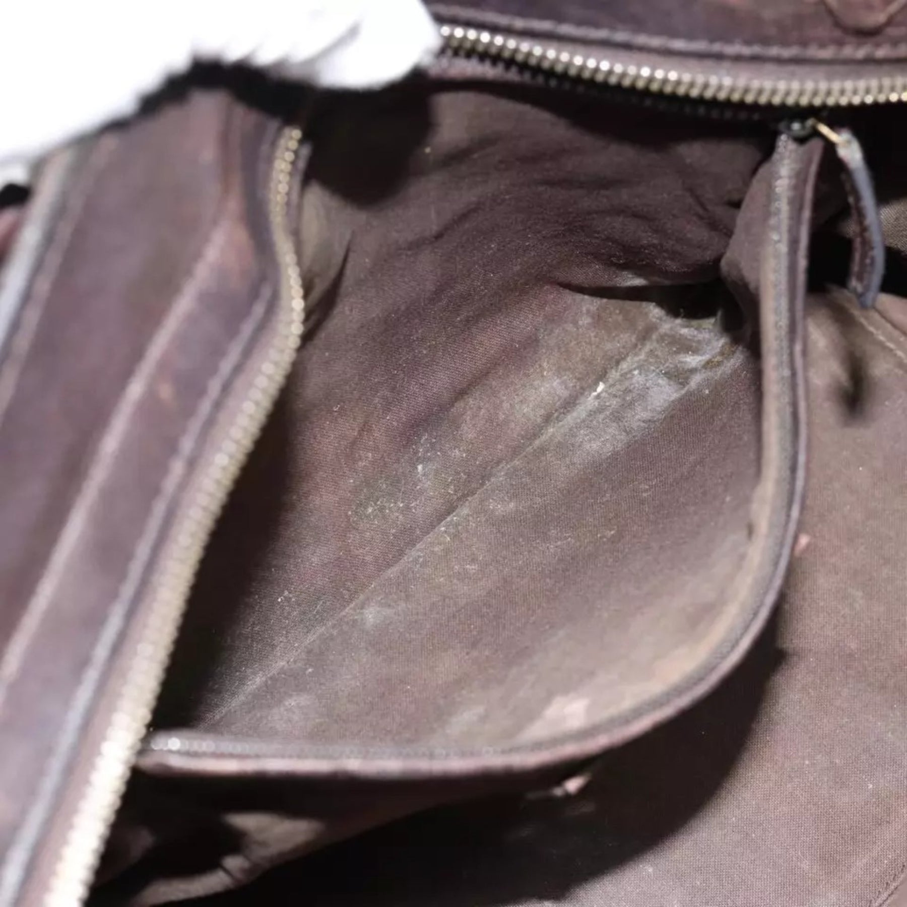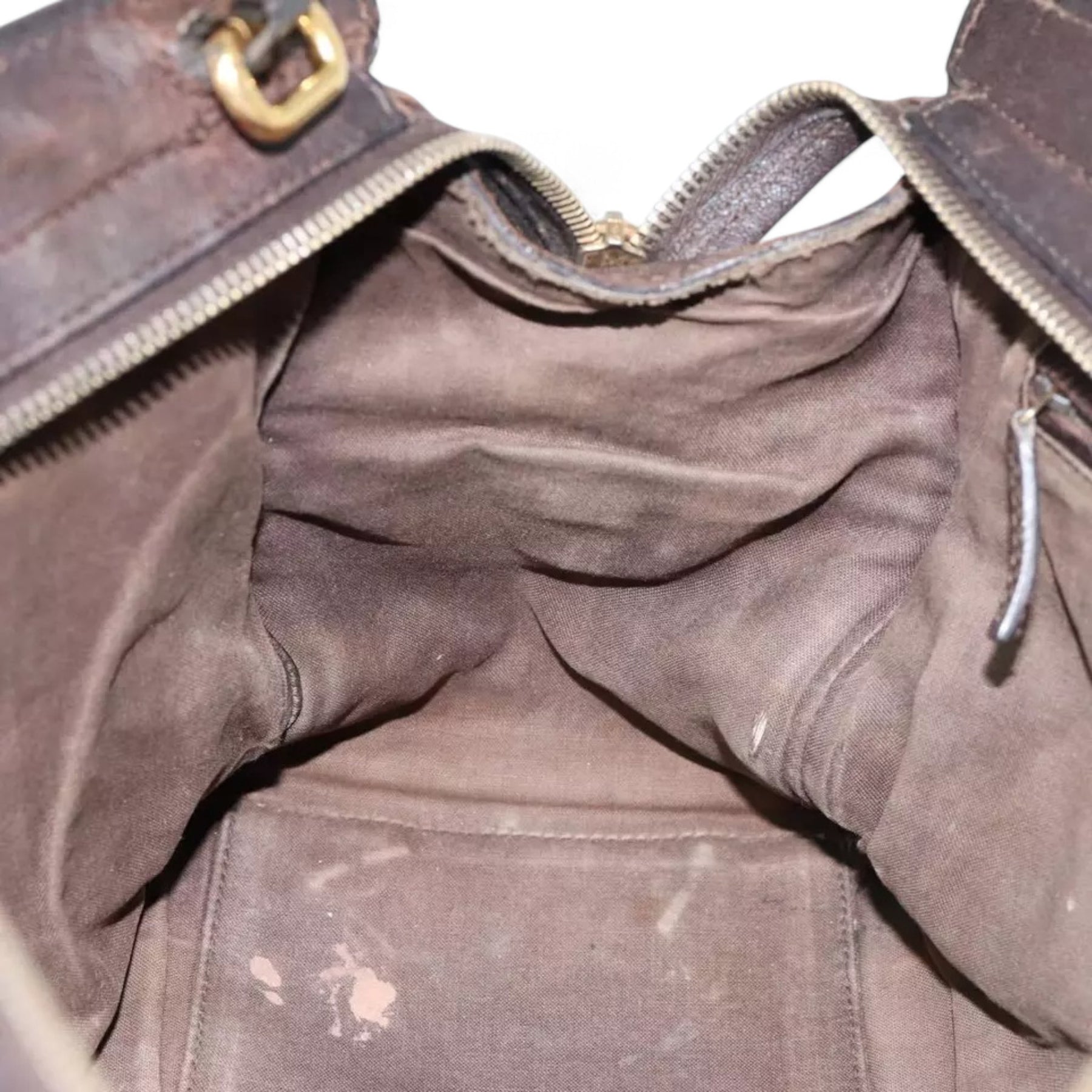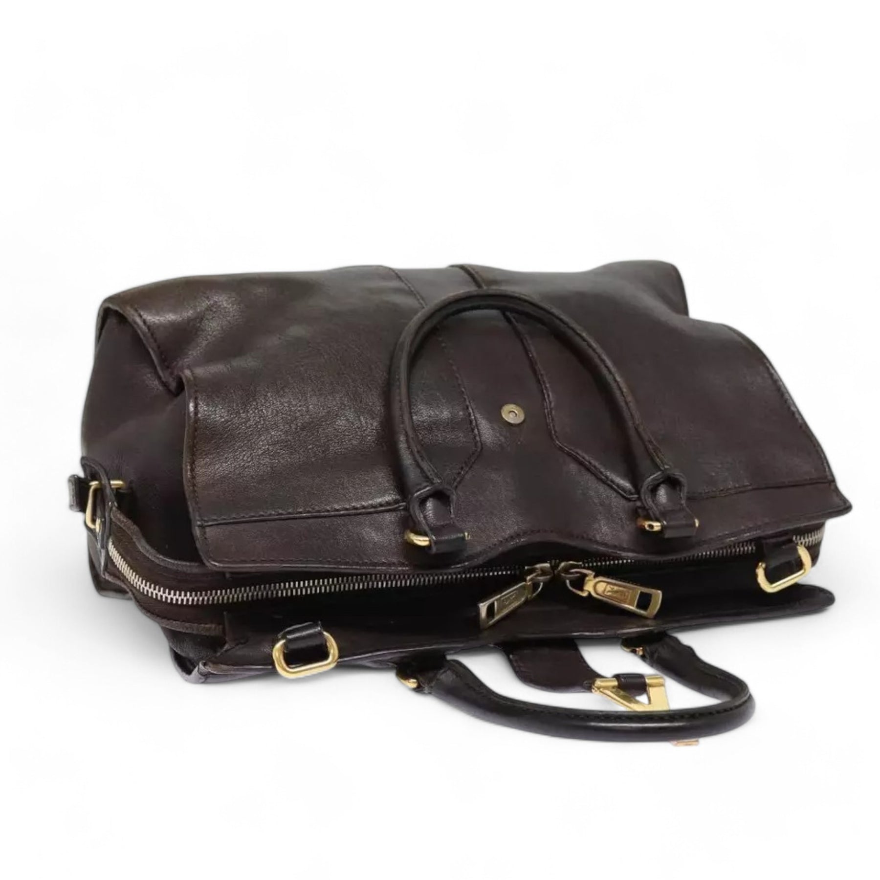 Saint Laurent YSL Leather Handbag 2way Brown Gold Women's