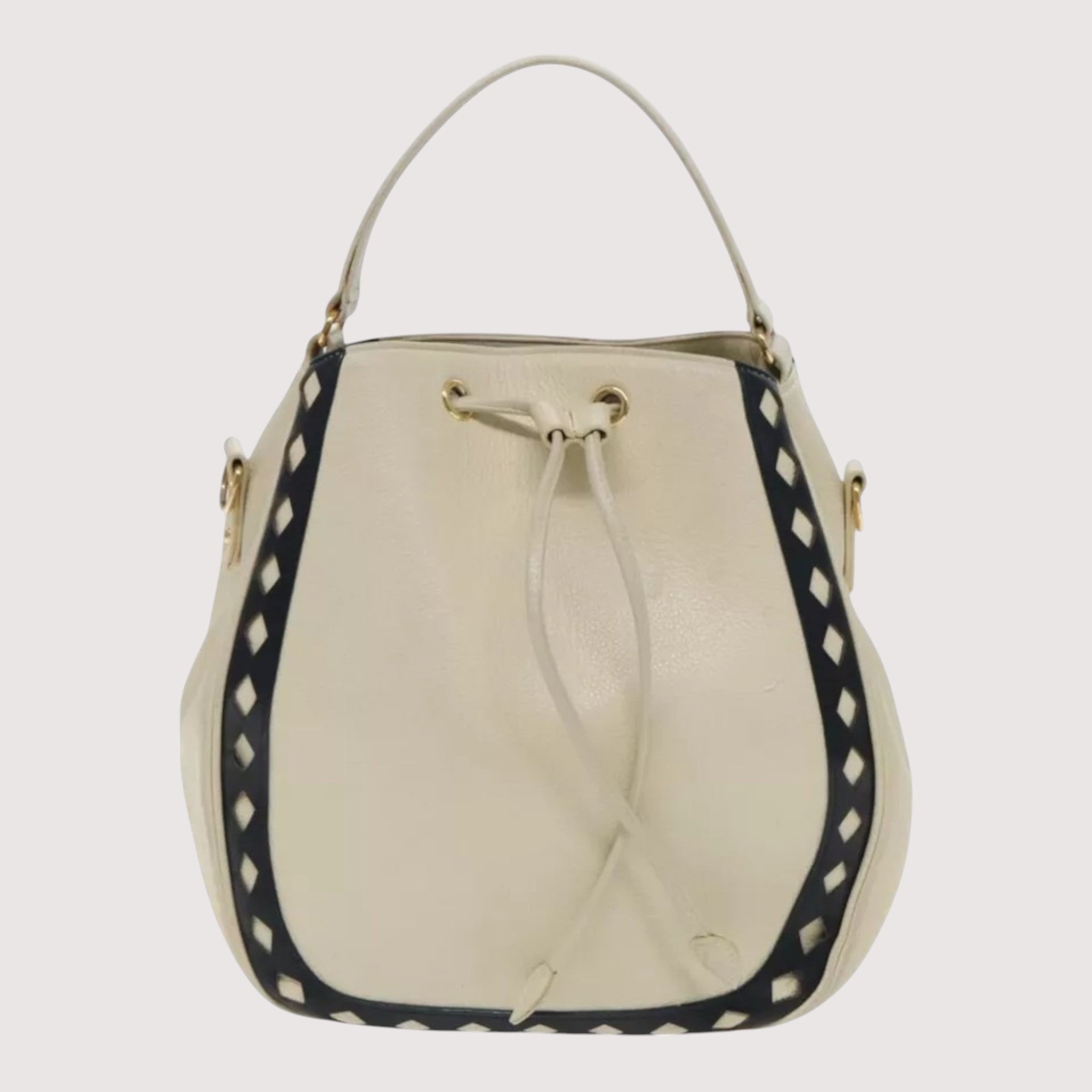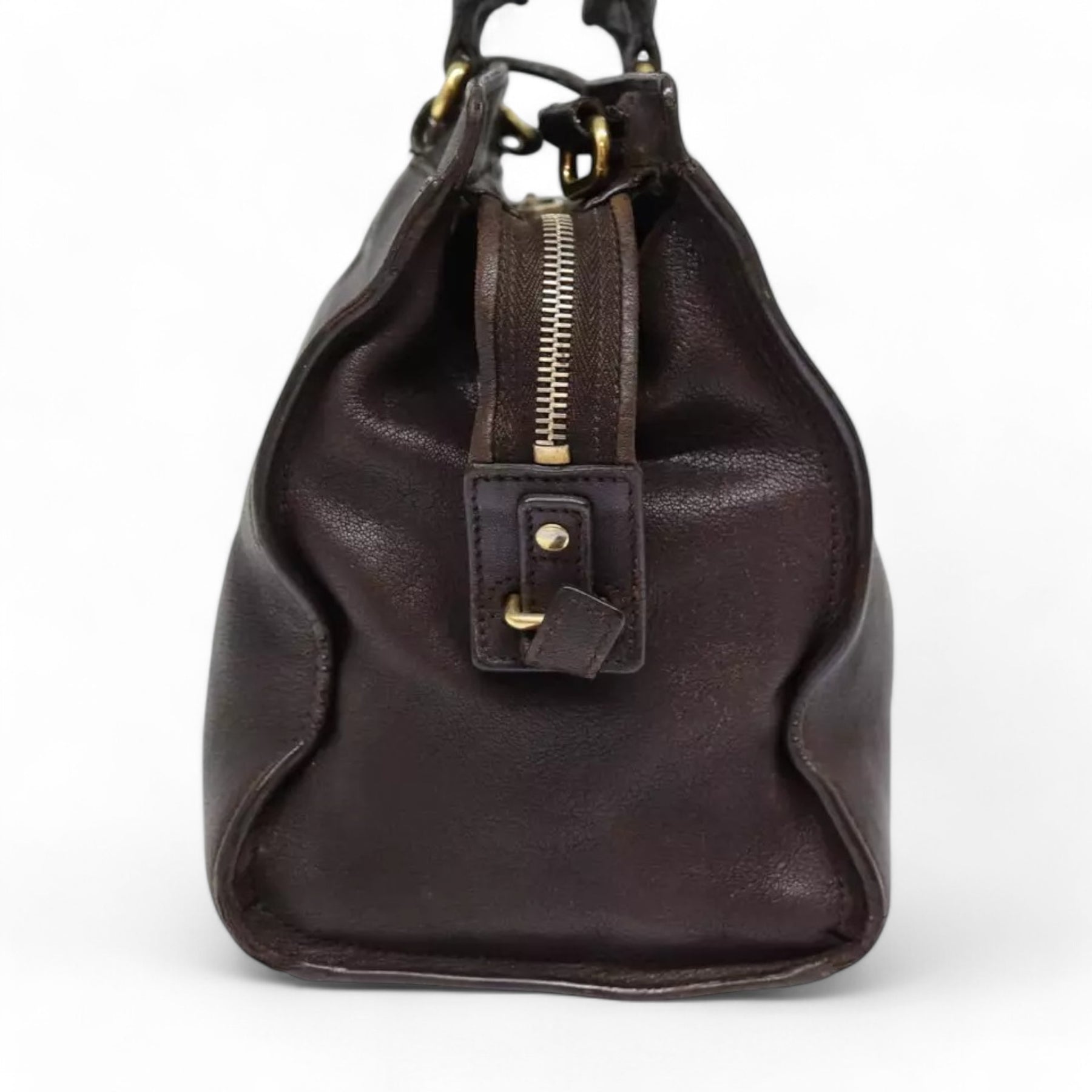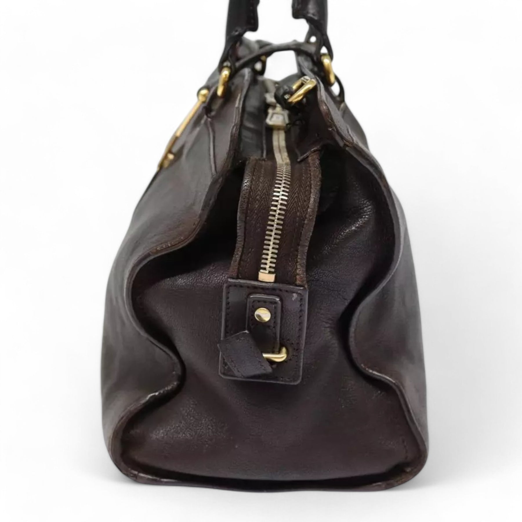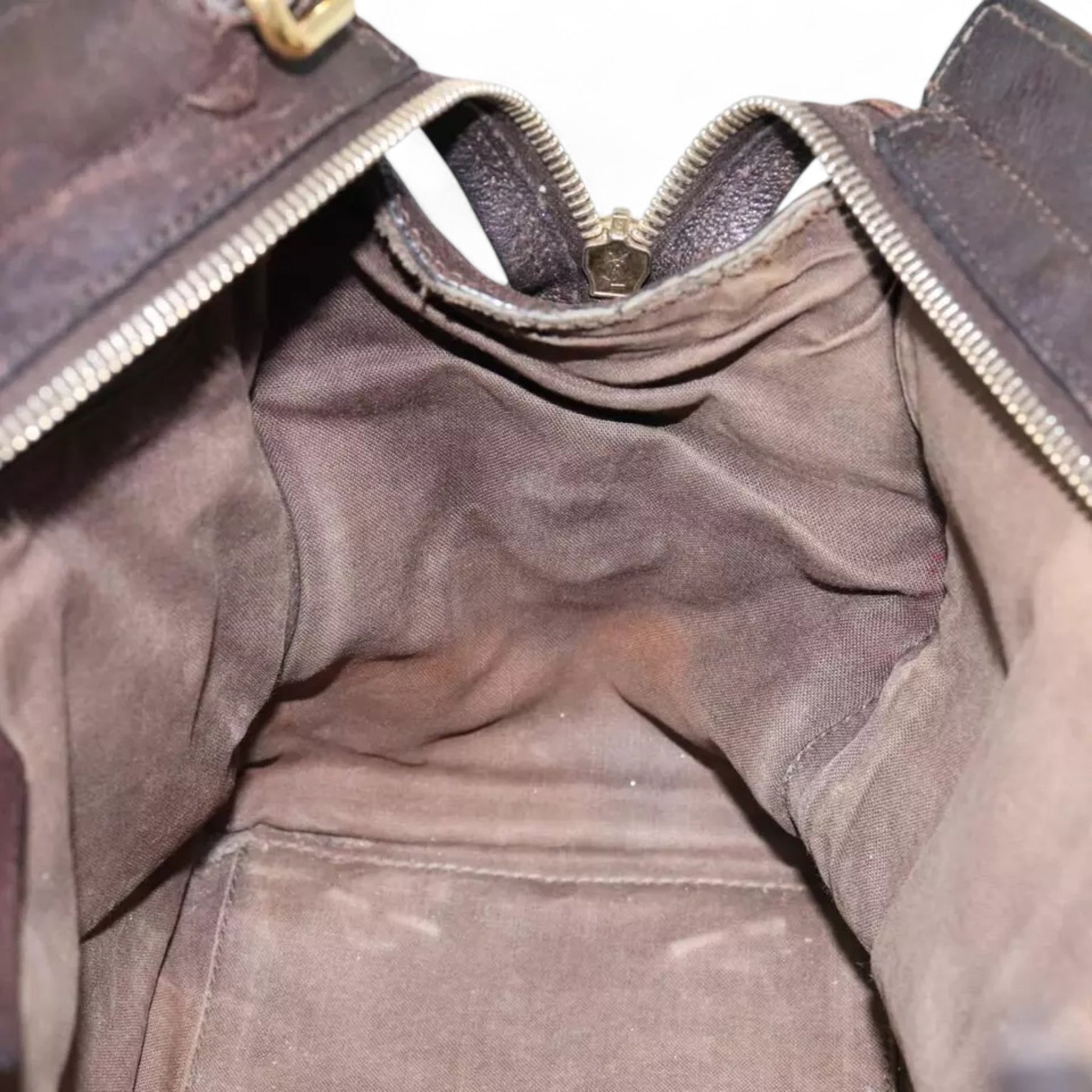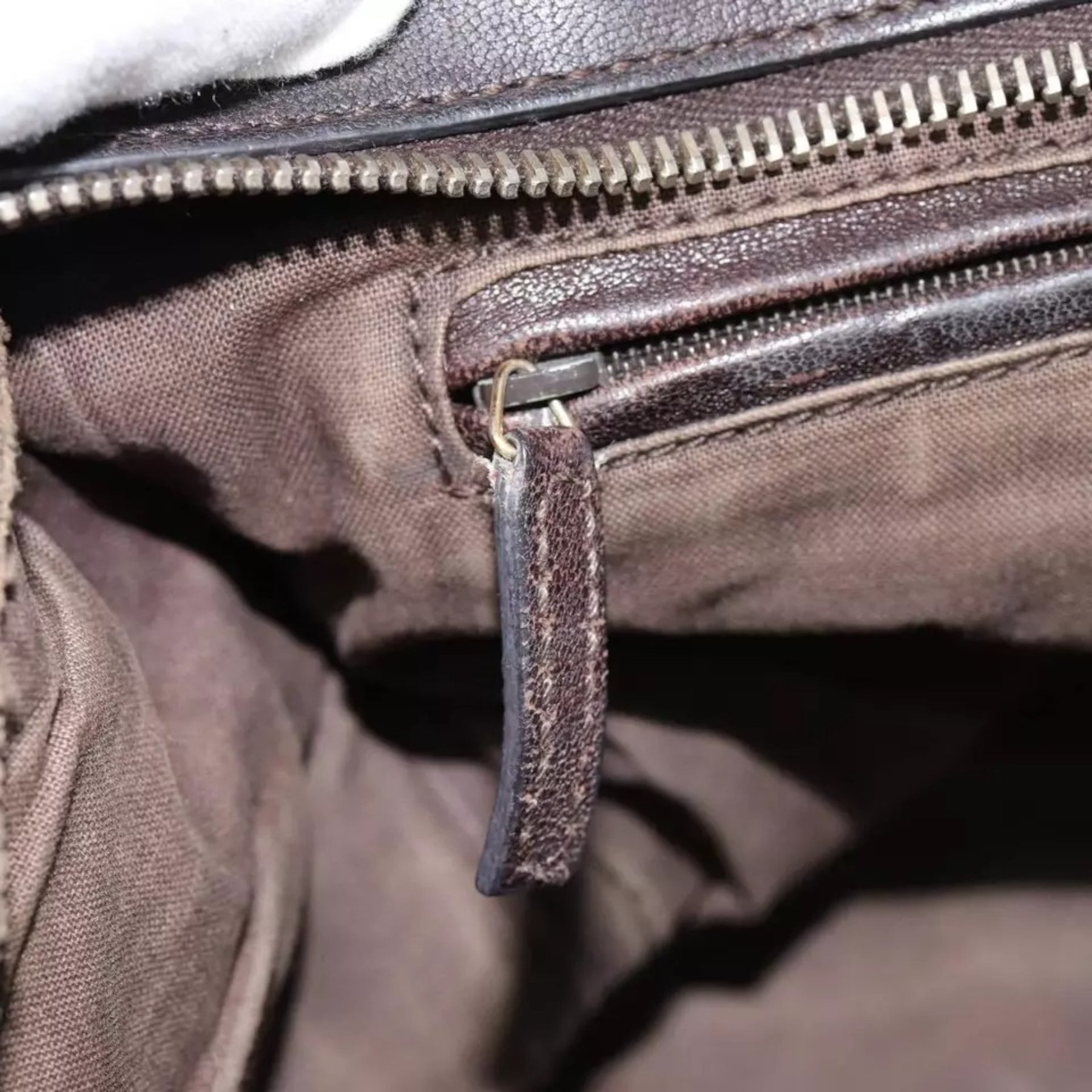 Saint Laurent YSL Leather Handbag 2way Brown Gold Women's