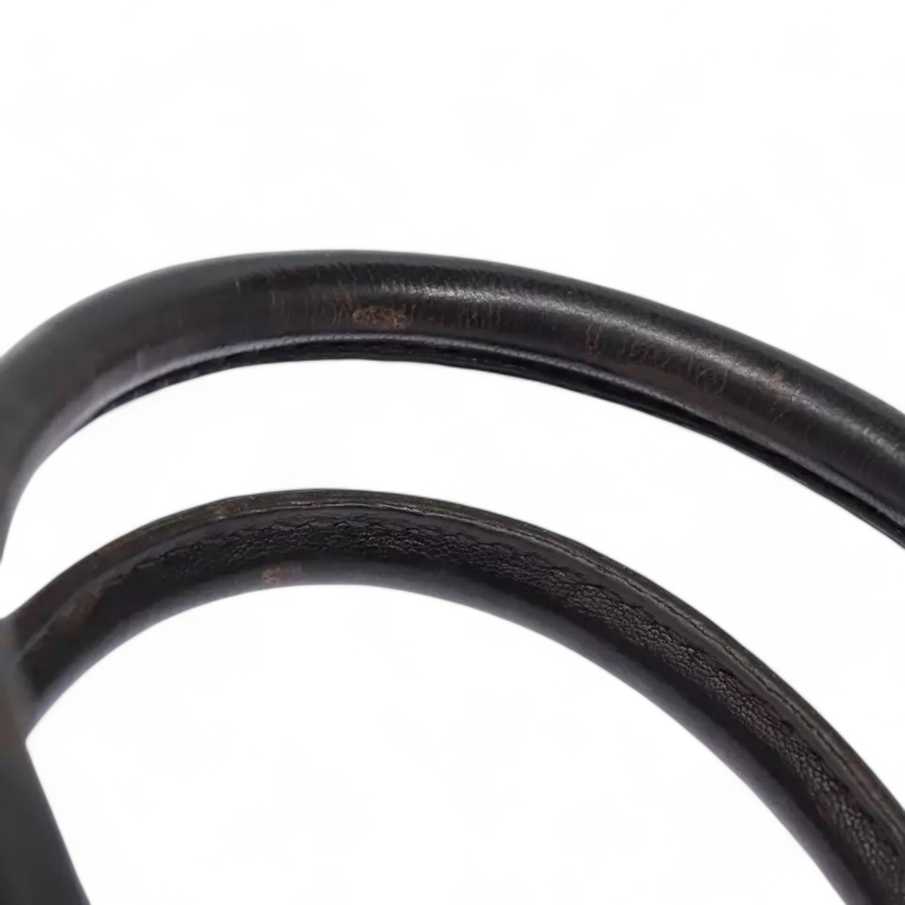 Condition - Out of shape, rubbing, partly broken thread, slight stains, slight crack on shoulder strap, scratches on metal fittings, slight painting off, storage smell.
