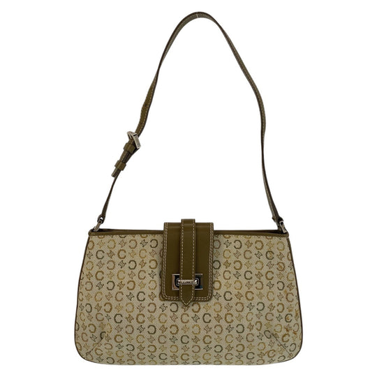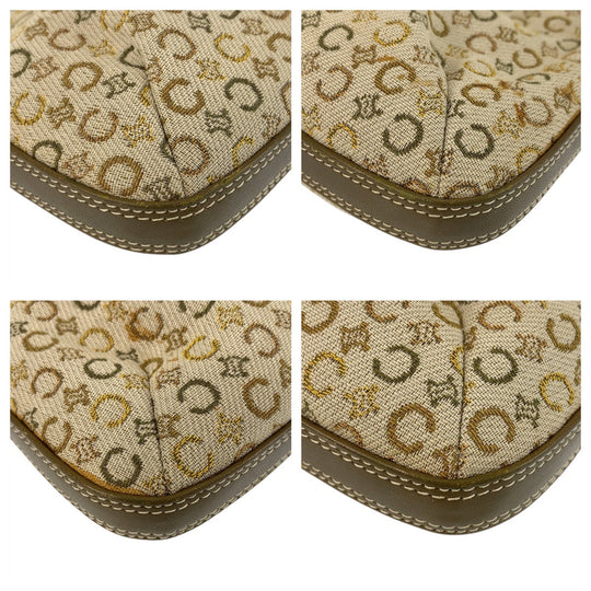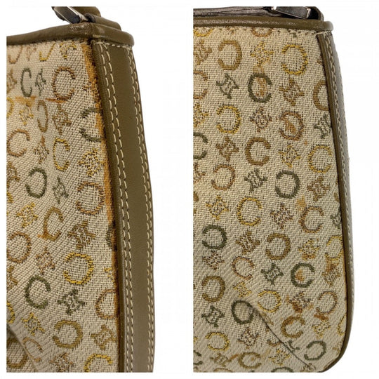 CELINE Shoulder Bag Canvas, Leather Beige Khaki SilverMetal Shoulder Bag accessory pouch C Macadam Women Used Authentic