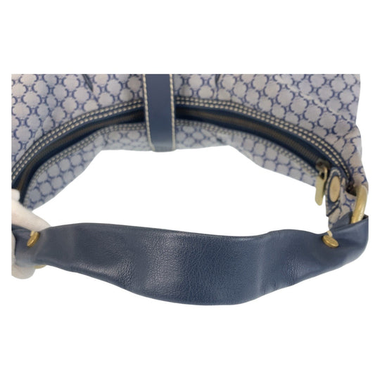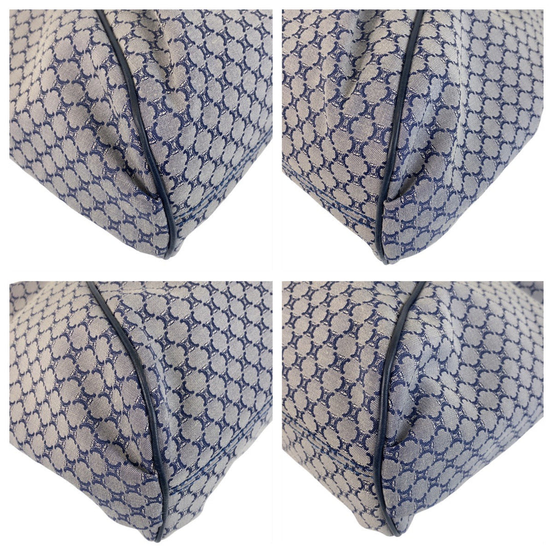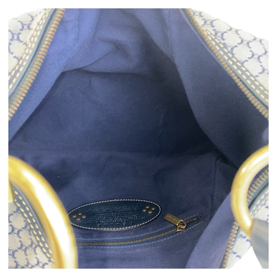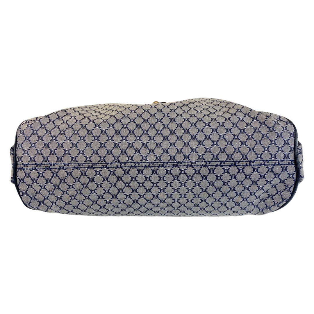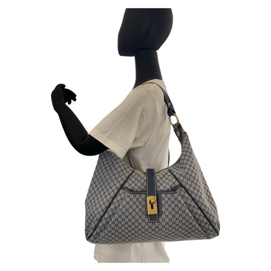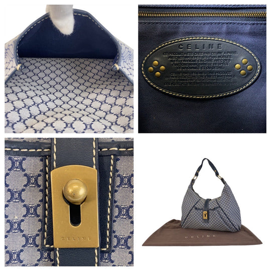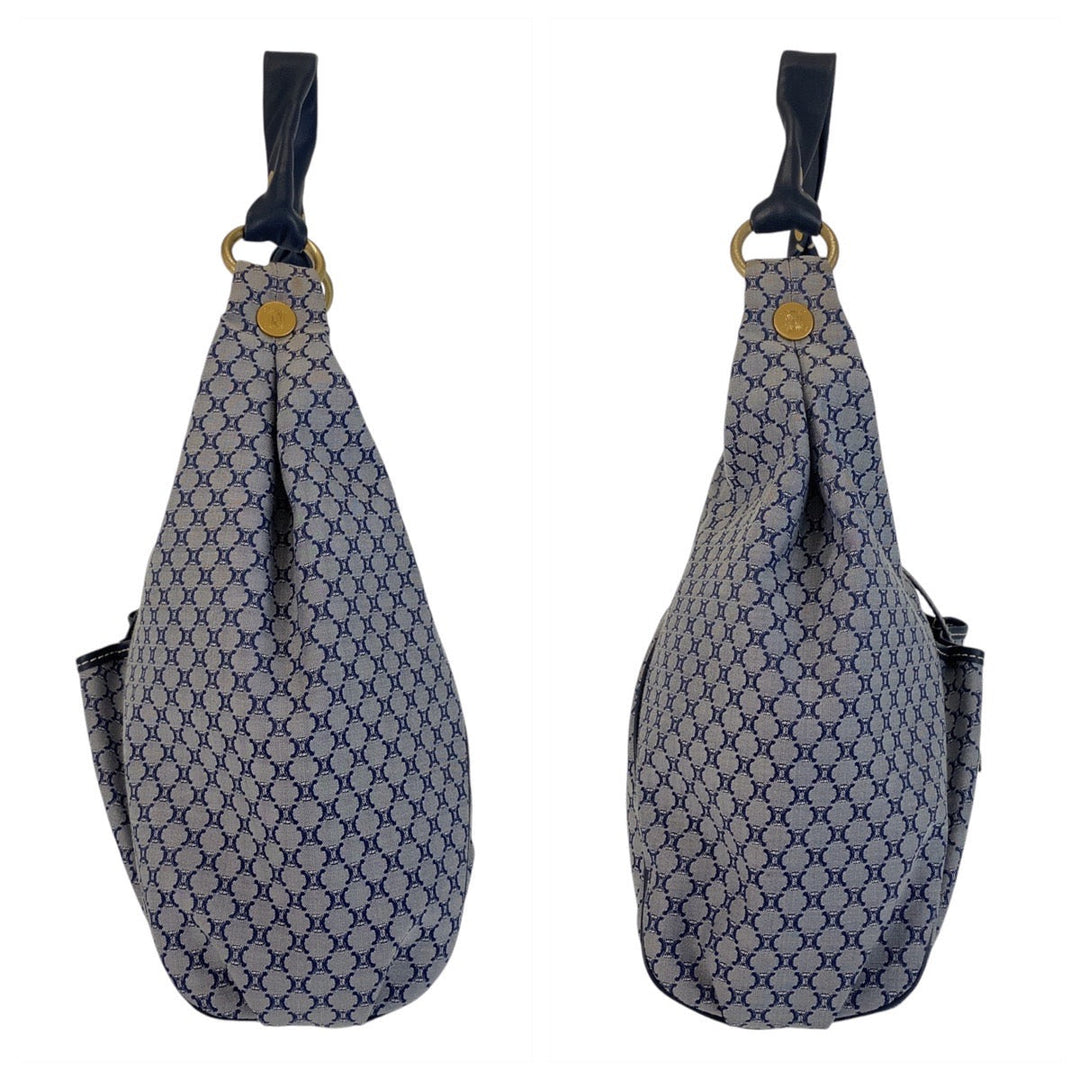 CELINE Shoulder Bag Canvas, Leather Gray Navy Gold Metal Hobo Shoulder Bag Macadam Women Used Authentic