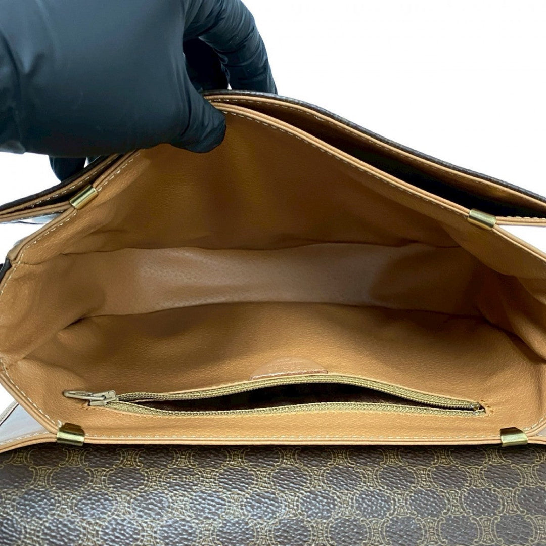 CELINE Shoulder Bag leather Brown logo Macadam Blason TriomphePattern