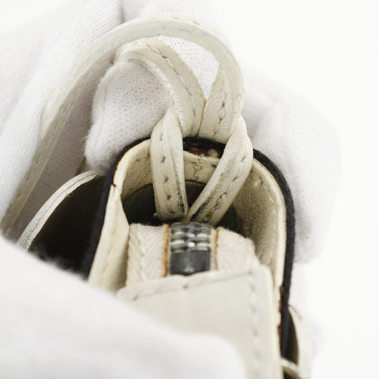 CELINE Shoulder Bag Leather, Canvas Off White/Black flour Women Used Authentic