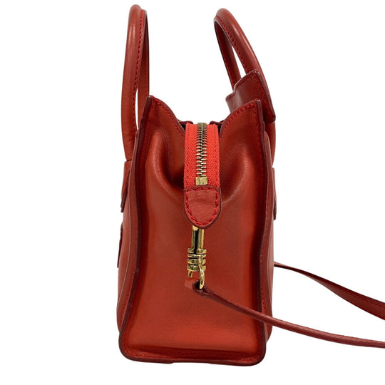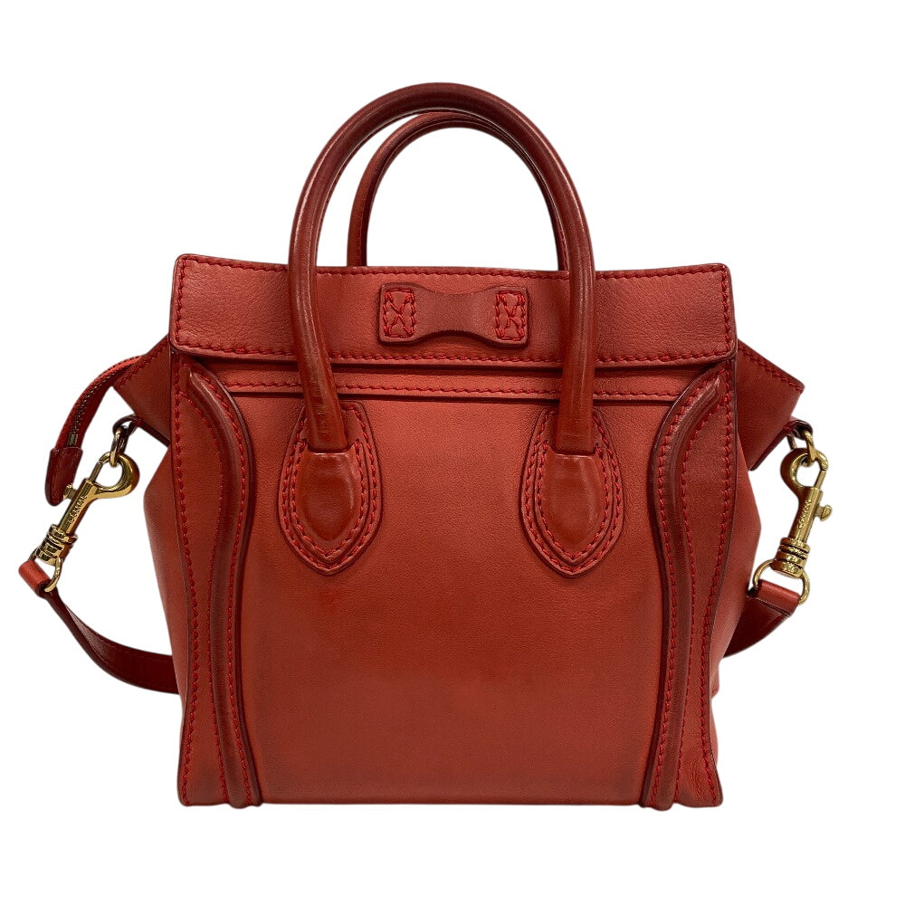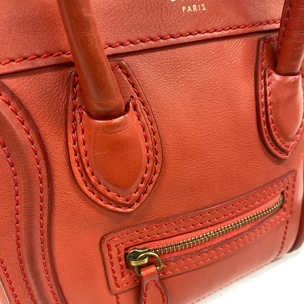 CELINE Shoulder Bag leather Red 2way handbag Luggage Nano Shopper Women Used Authentic
