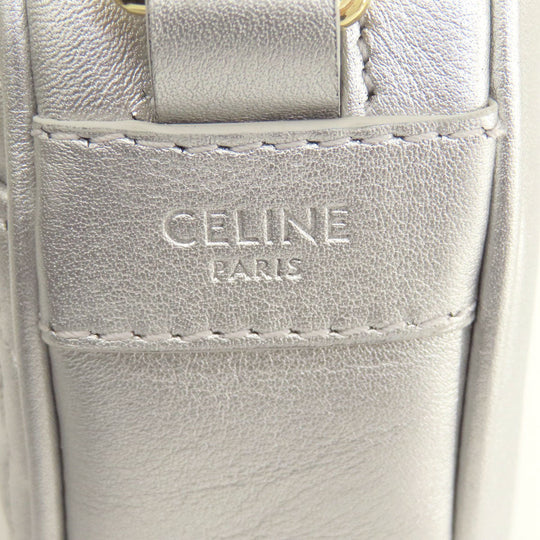 CELINE Shoulder Bag leather Silver Long shoulder Women Used Authentic