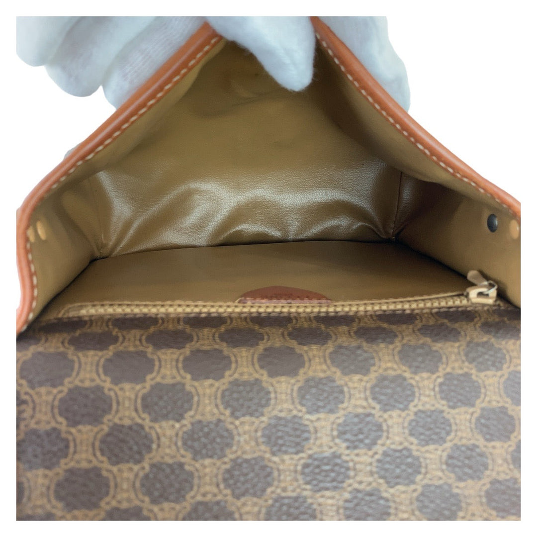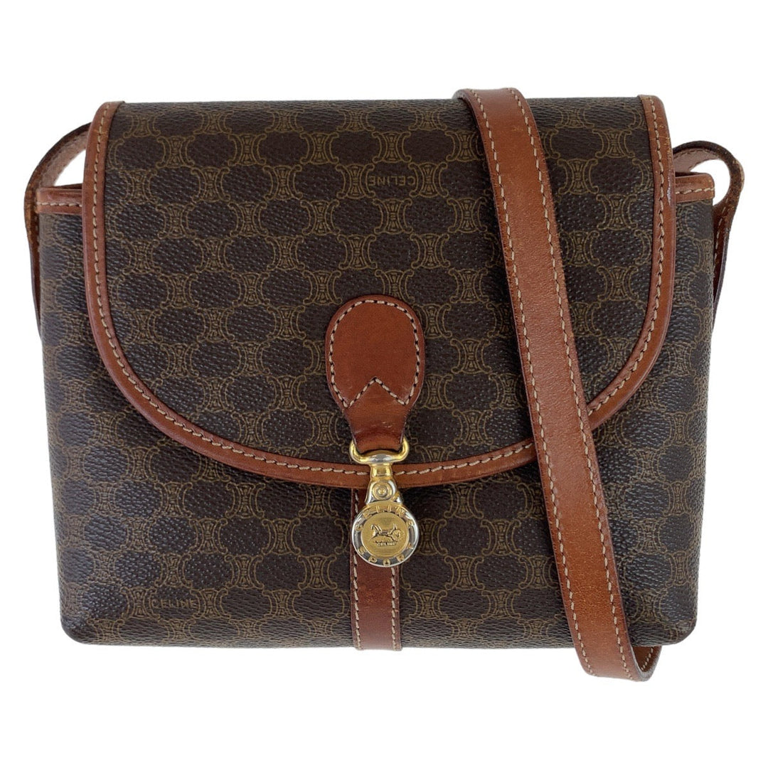 CELINE Shoulder Bag PVC, Leather Brown Gold Metal Crossbody Shoulder Bag Pochette Macadam Women Used Authentic