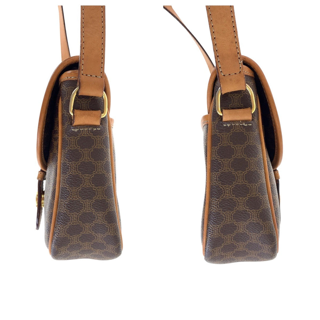 CELINE Shoulder Bag PVC, Leather Brown Gold Metal Shoulder Bag pochette Macadam Medal Women Used Authentic