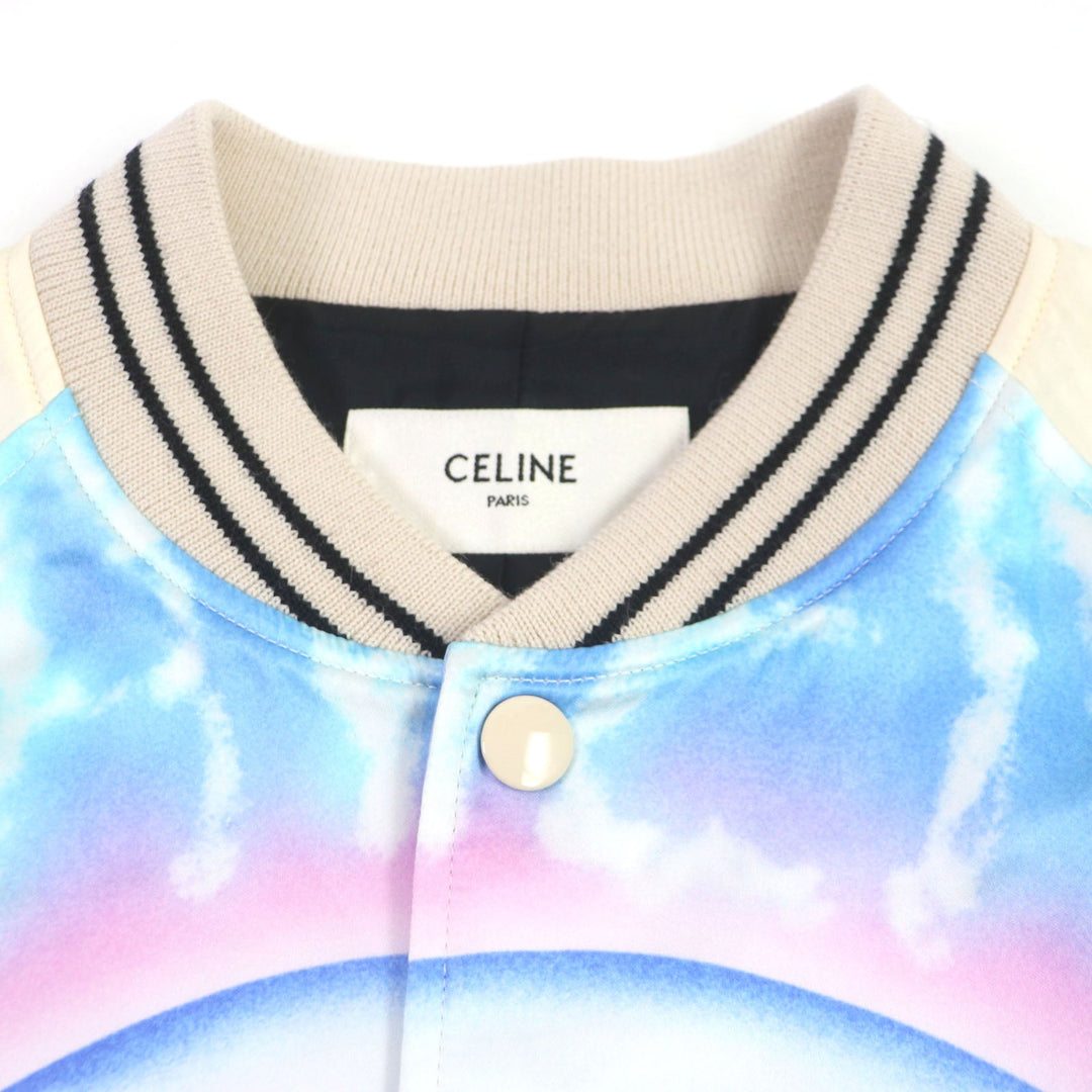 CELINE Stajan 2V28H353Q Outer: 100% rayon, Lining: 100% acetate Ivory Multi Teddy Jacket With Satin Artist Print mens 50 Used Authentic
