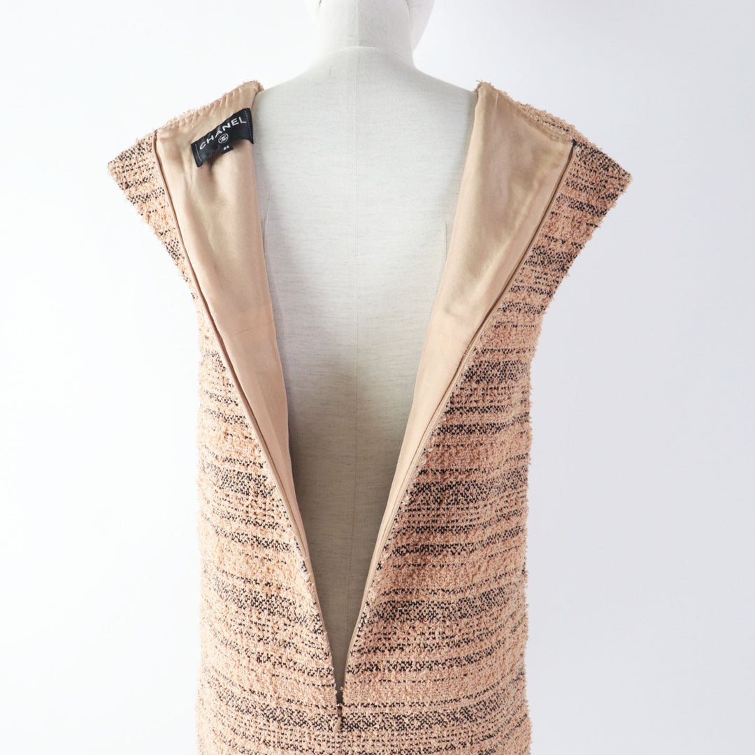 CHANEL one piece P57978 Outer: 89% cotton, Outer: 11% polyester, Lining: 100% silk Beige black Women 34 Used Authentic