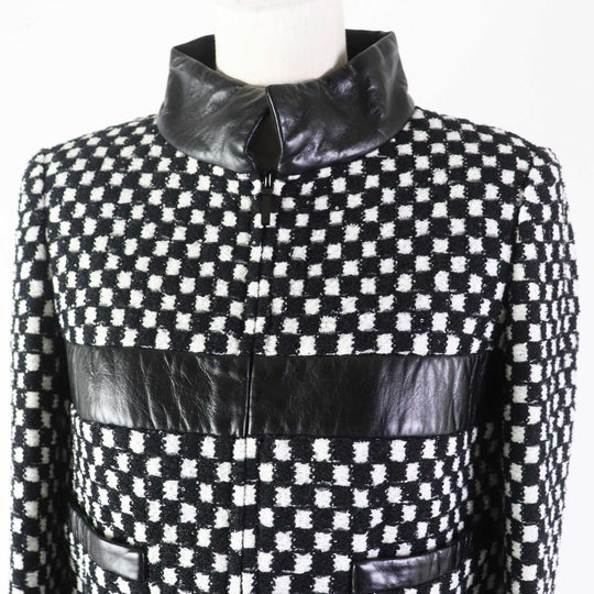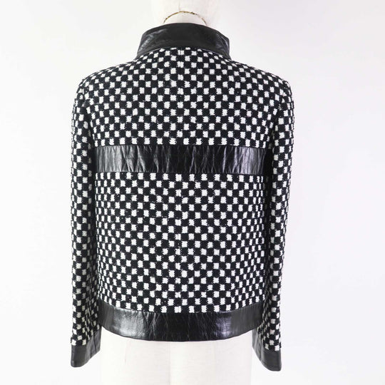 CHANEL Other outerwear P57185 Outer: 59% nylon, Outer: 41% polyester, Lining: 100% silk, Other: 100% lambskin Other: 100% cotton Black White Tweed jacket Women 34 Used Authentic