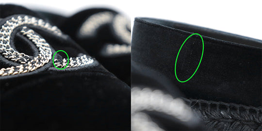 There is a slight feeling of use overall, such as creases on the heel and rubbed stain on the insole. There is a slight thread-like rubbed thread on the left inner and a thread-hook on the COCO Mark on the right, but the outsole is also very slightly worn. As this is a used item, there may be signs of use (stains or small scratches, etc.) other than those described.