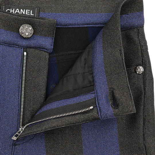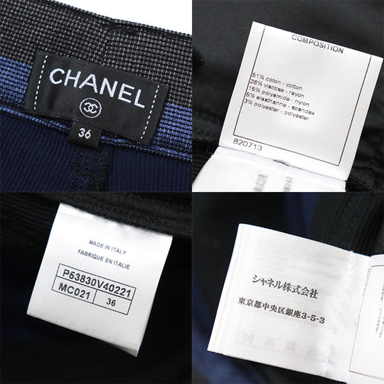 CHANEL Pants 51% cotton, 26% rayon Black, Blue P53830 Women 36 Used Authentic