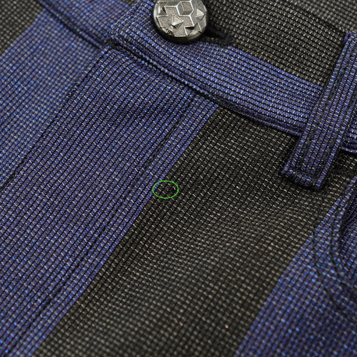 The stitching at the crotch is about 0.4" loose. There are hanger marks and several very small snags throughout, but there is no stain that would be noticeable when worn. As this is a used item, there may be signs of wear (stains or small scratches, etc.) other than those stated. Please feel free to contact us if you have any questions.