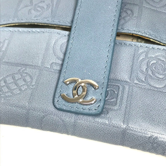 CHANEL Pouch leather blue CC Camellia Icon Pocket Tissue Cover