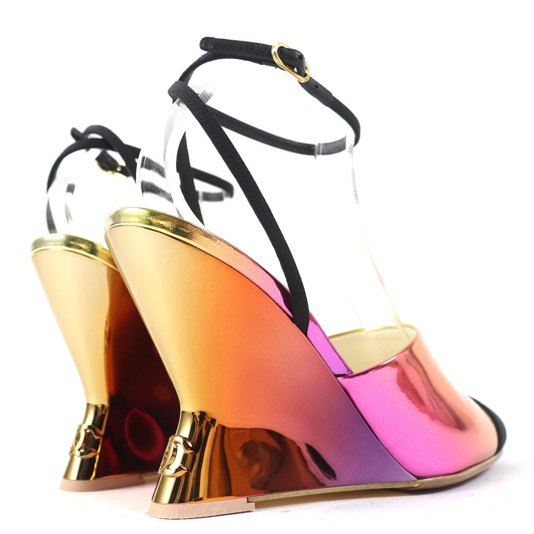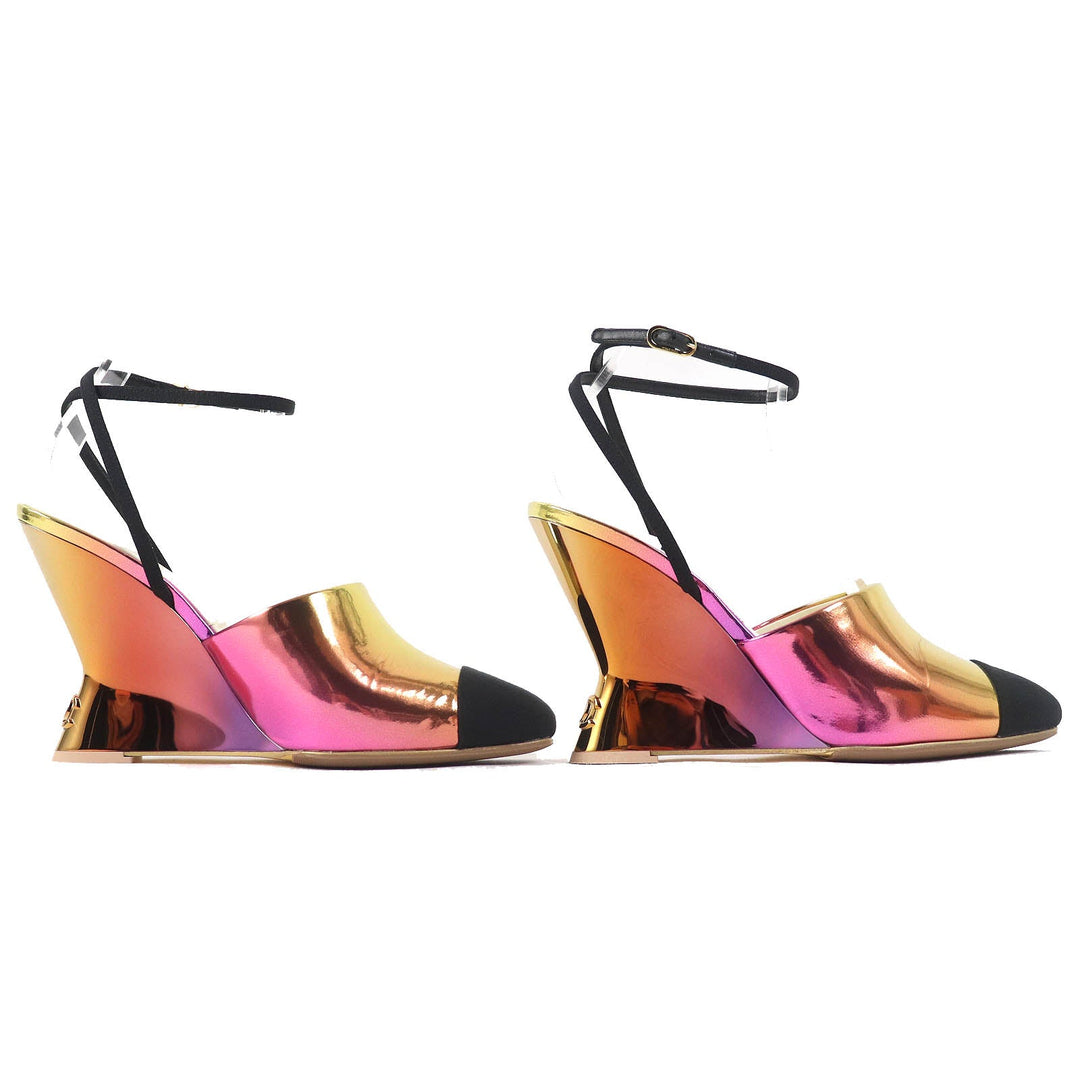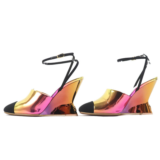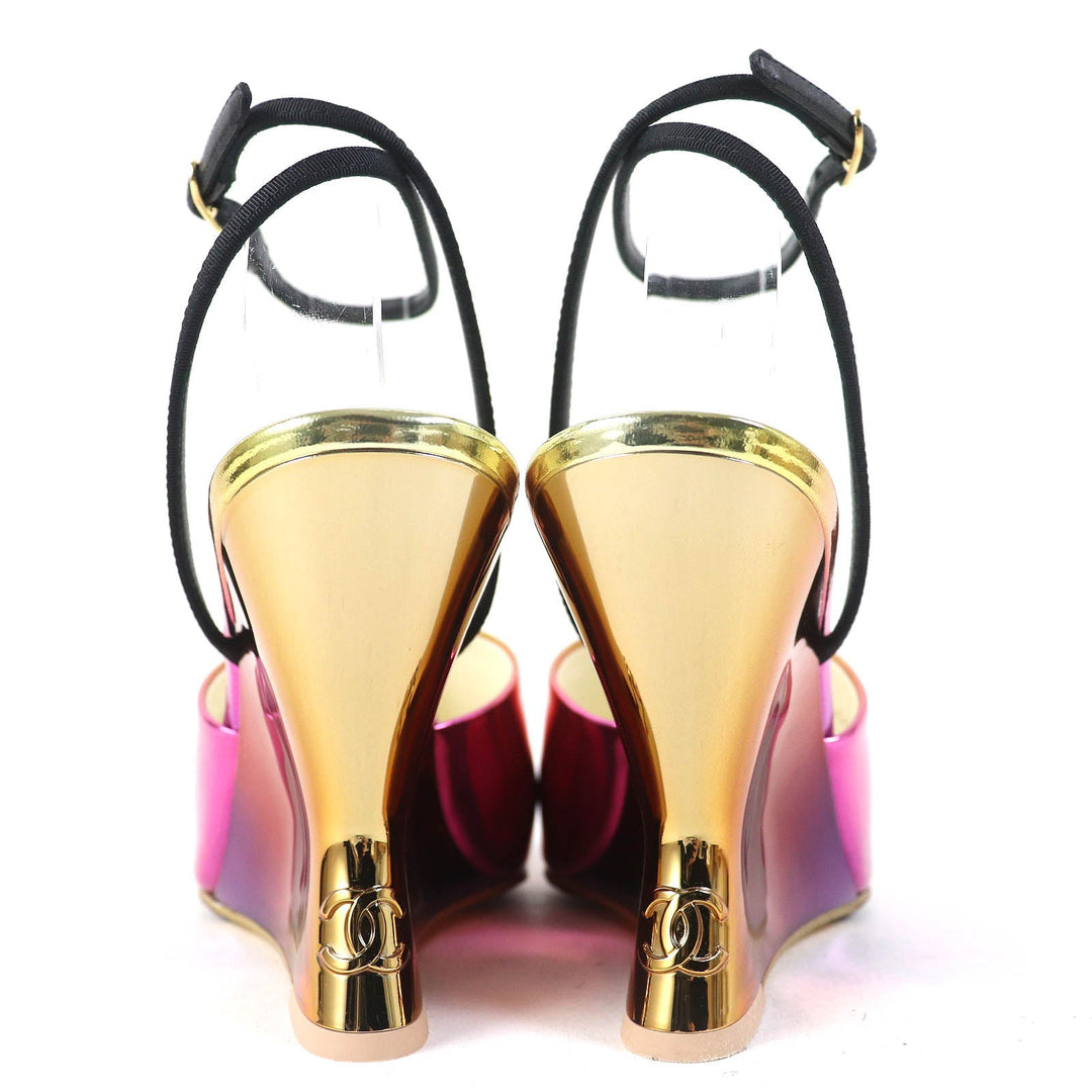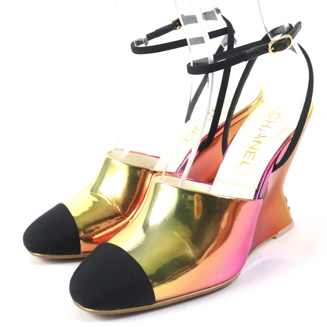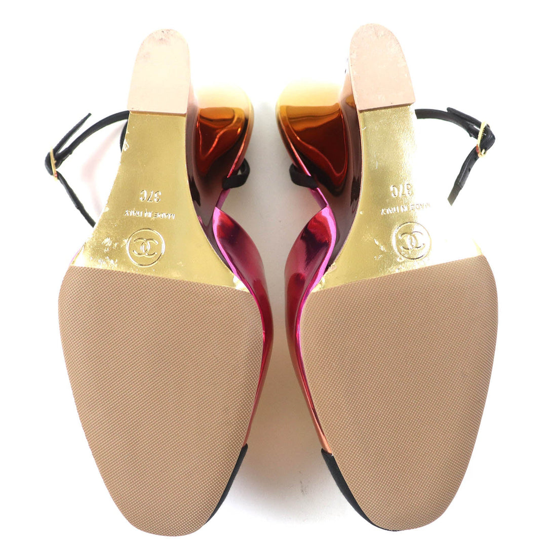 CHANEL pumps 24C G45434 Laminated calfskin x grosgrain Pink Gold Gradient Women 37 Used Authentic