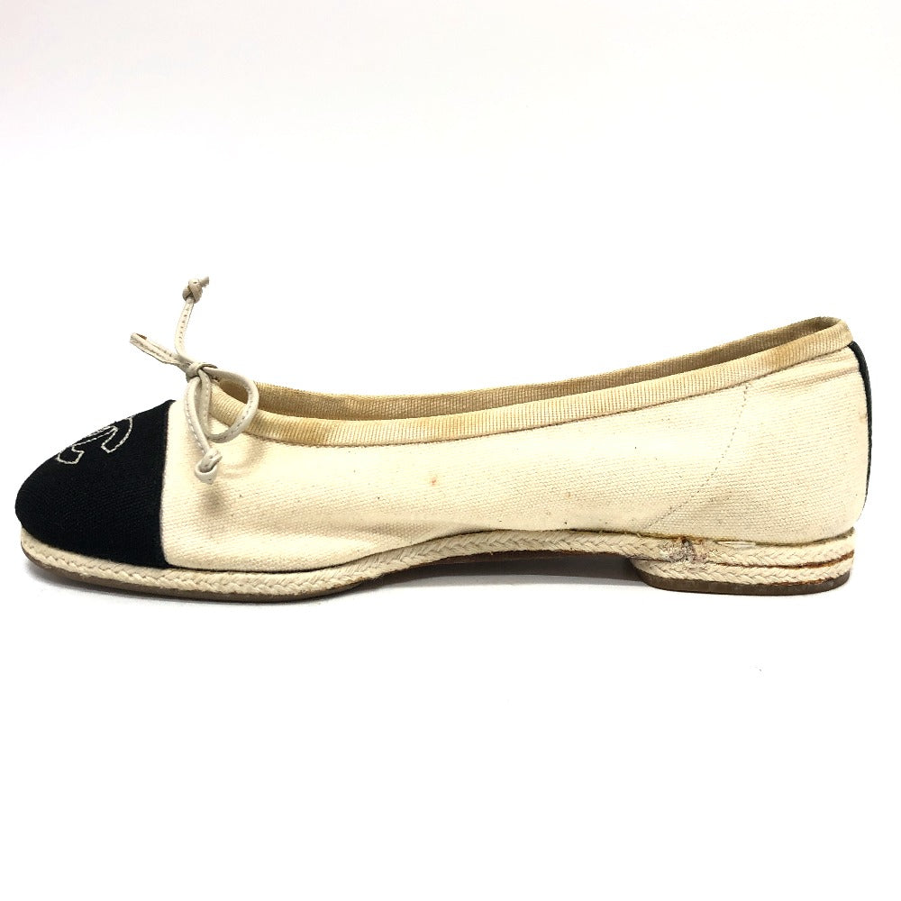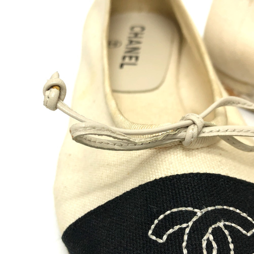 CHANEL pumps canvas white COCO Mark Espado Ribbon Women 35 Used Authentic
