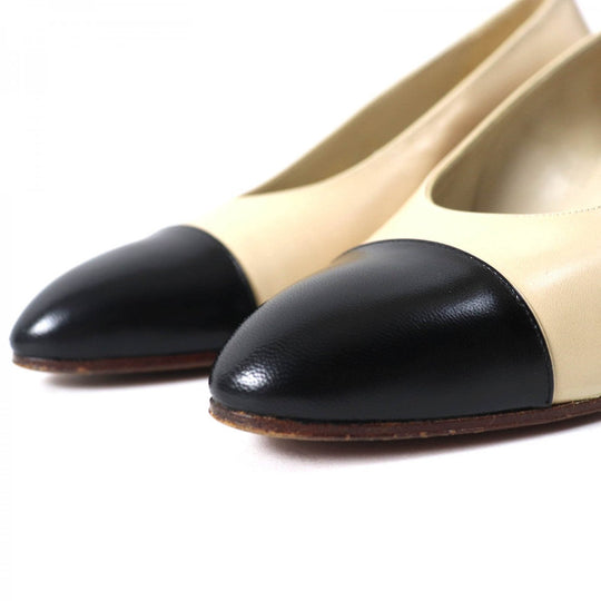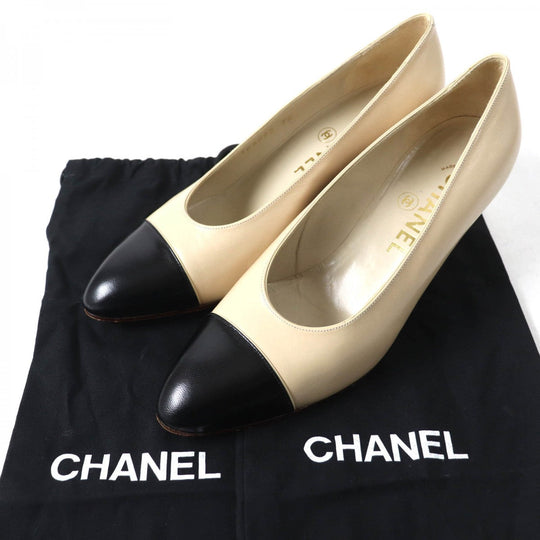 CHANEL pumps Main: Leather Beige black Women 36 Used Authentic